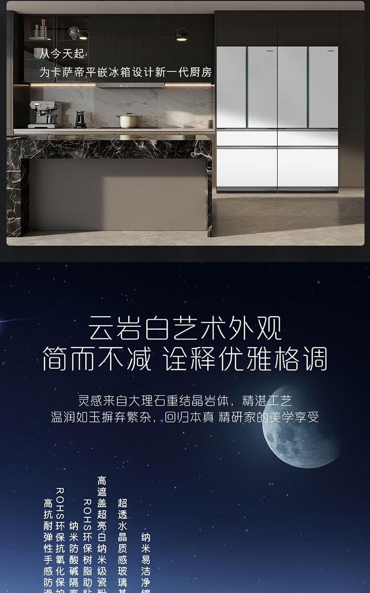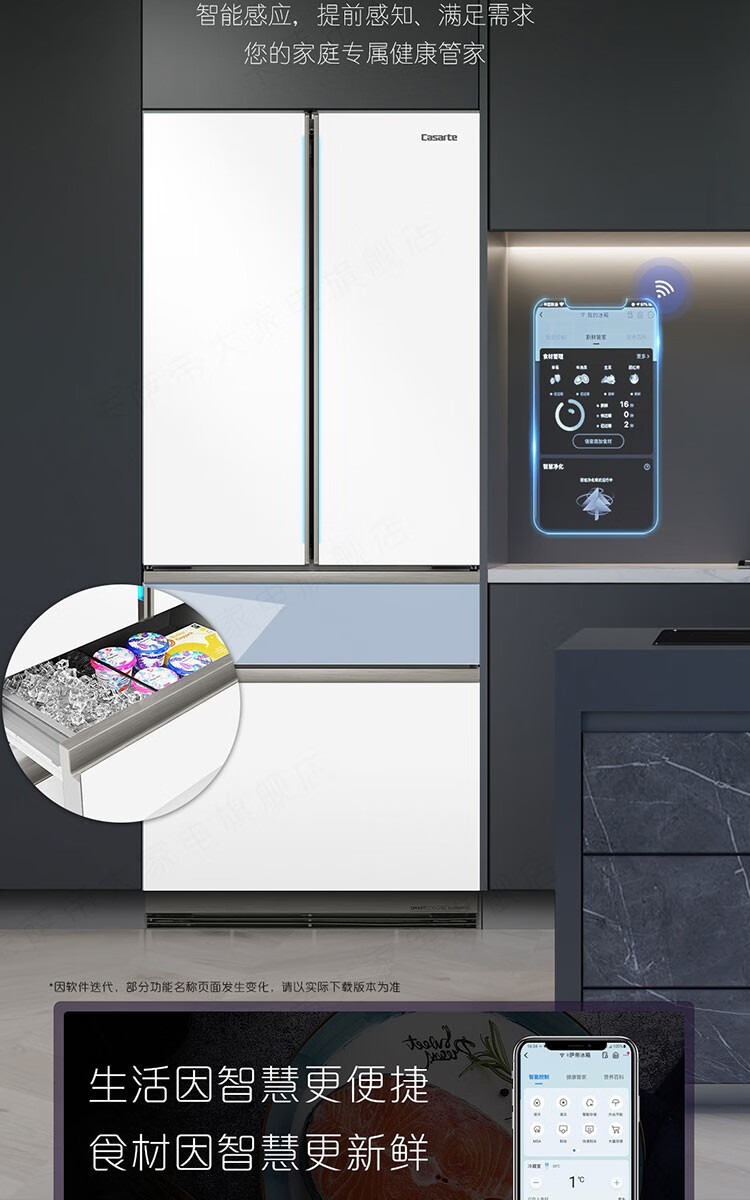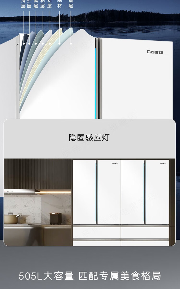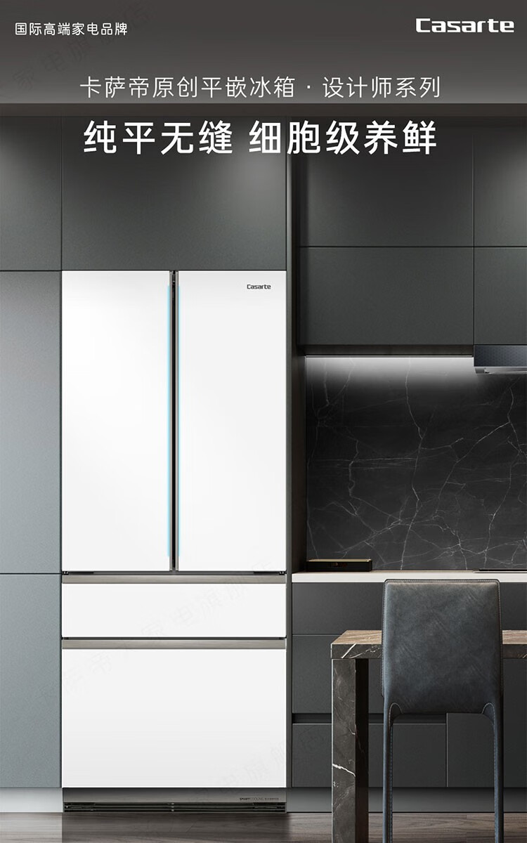 Casarte refrigerator 505 liter French multi-door refrigerator embedded in flat slim body pure white series automatic ice machine home refrigerator smart sterilization + low oxygen storage + four-speed temperature change + deep freezing smart freezing