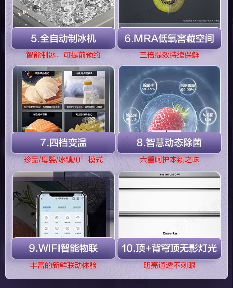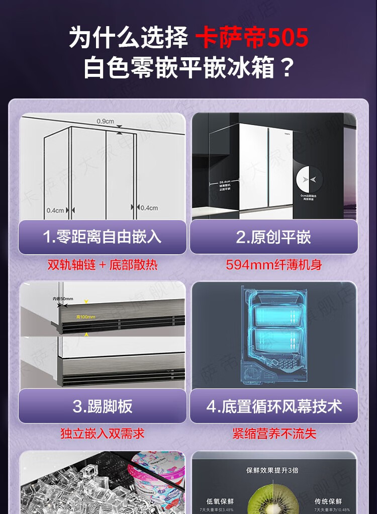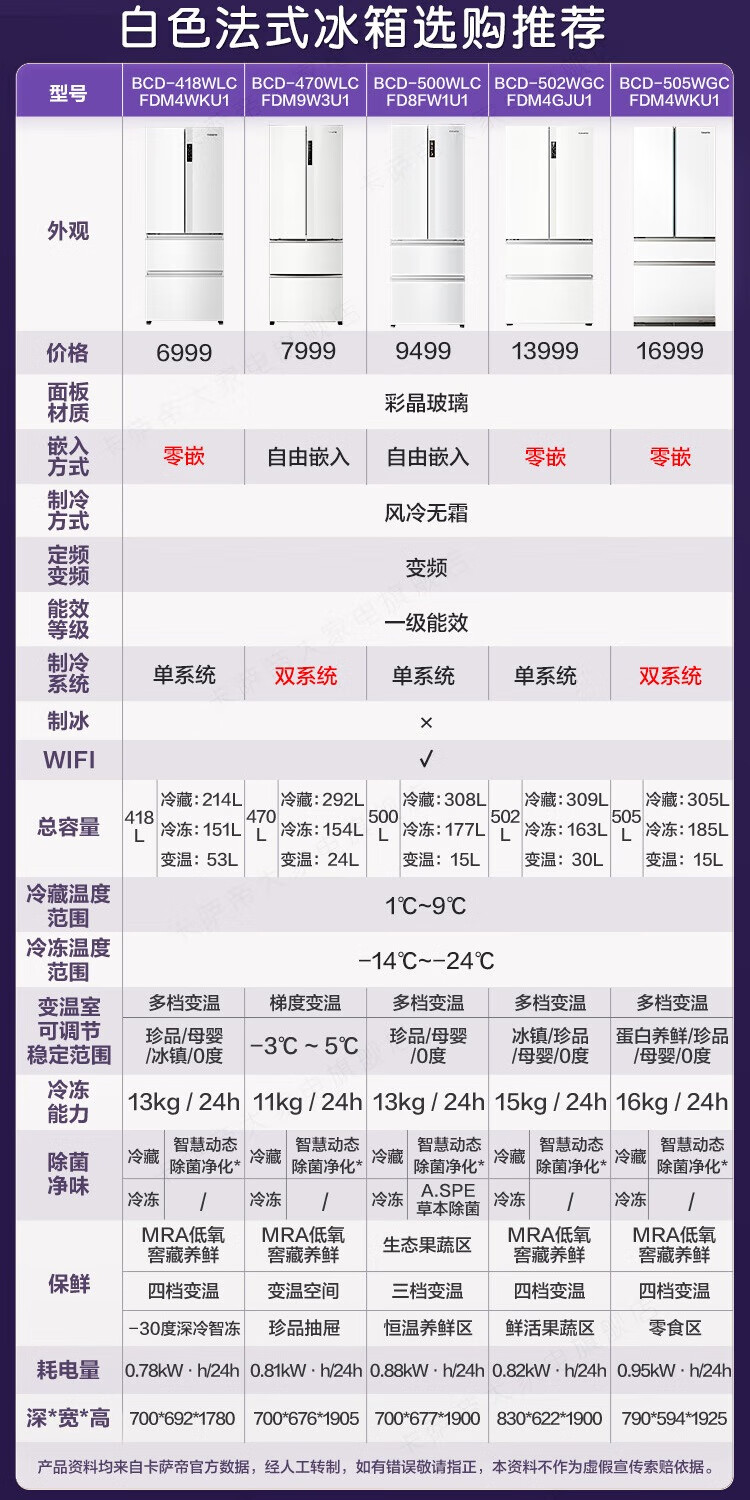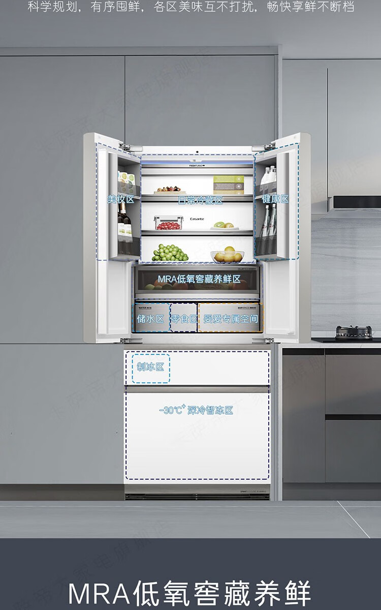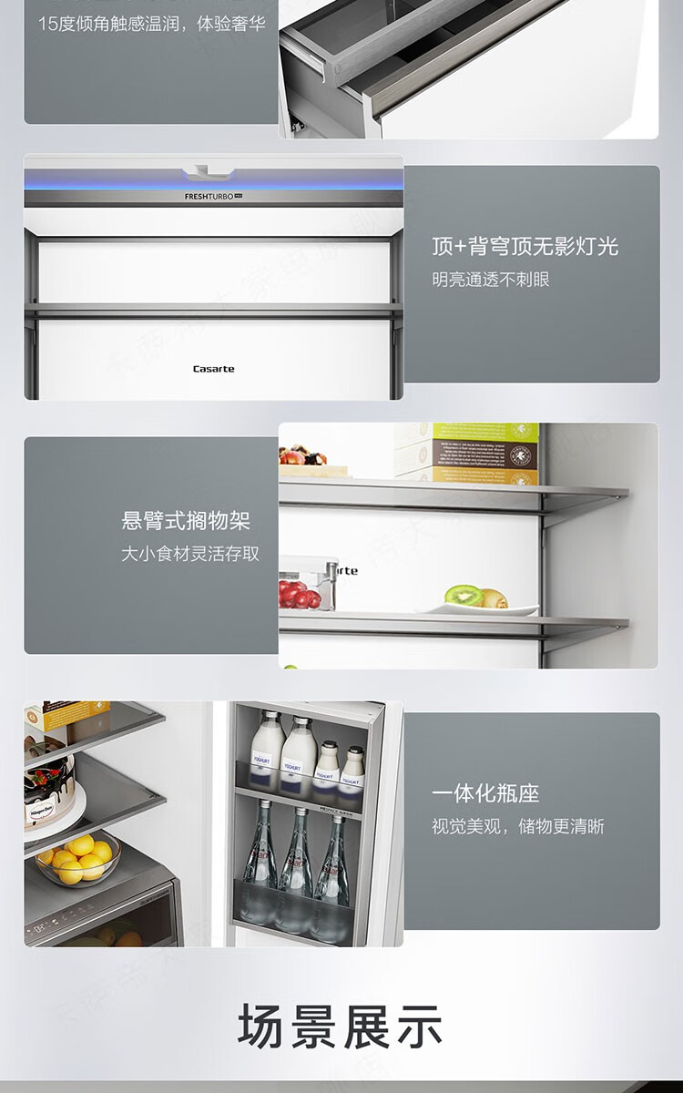 Casarte refrigerator 505 liter French multi-door refrigerator embedded in flat slim body pure white series automatic ice machine home refrigerator smart sterilization + low oxygen storage + four-speed temperature change + deep freezing smart freezing