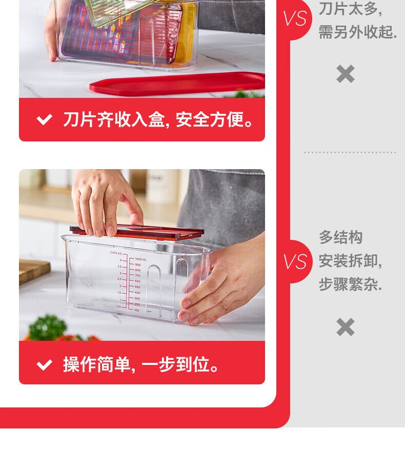 Swiss KUHN RIKON potato shreds kitchen vegetable cutting tool multi-functional grater grater scraper household grater box 4-in-1 grater box