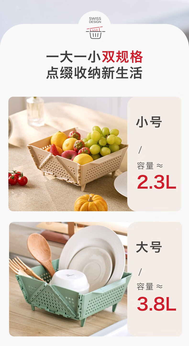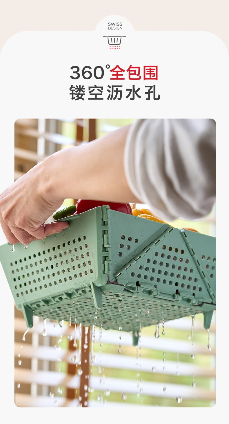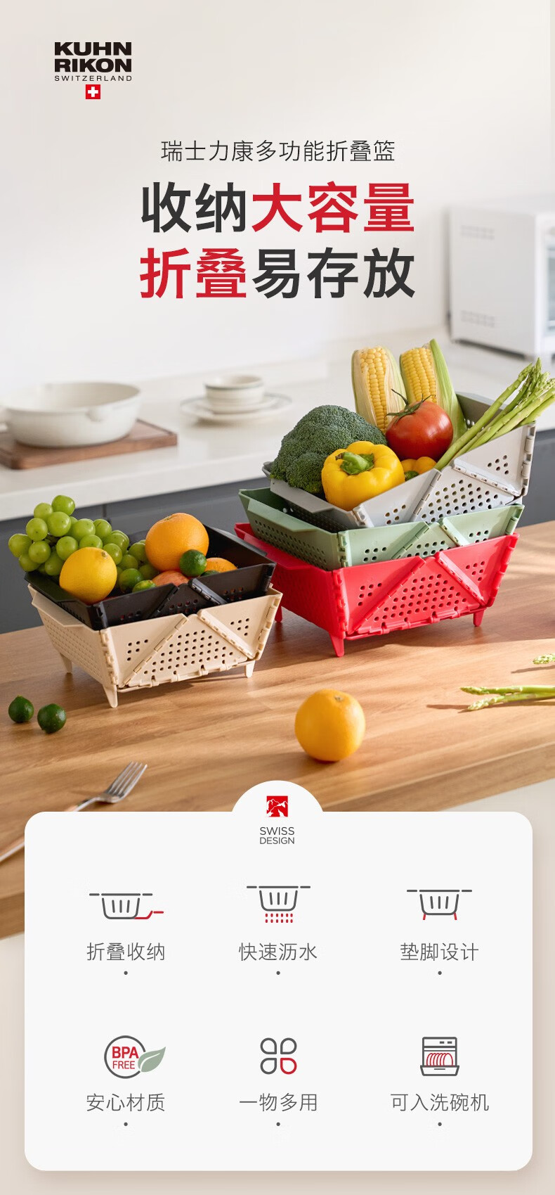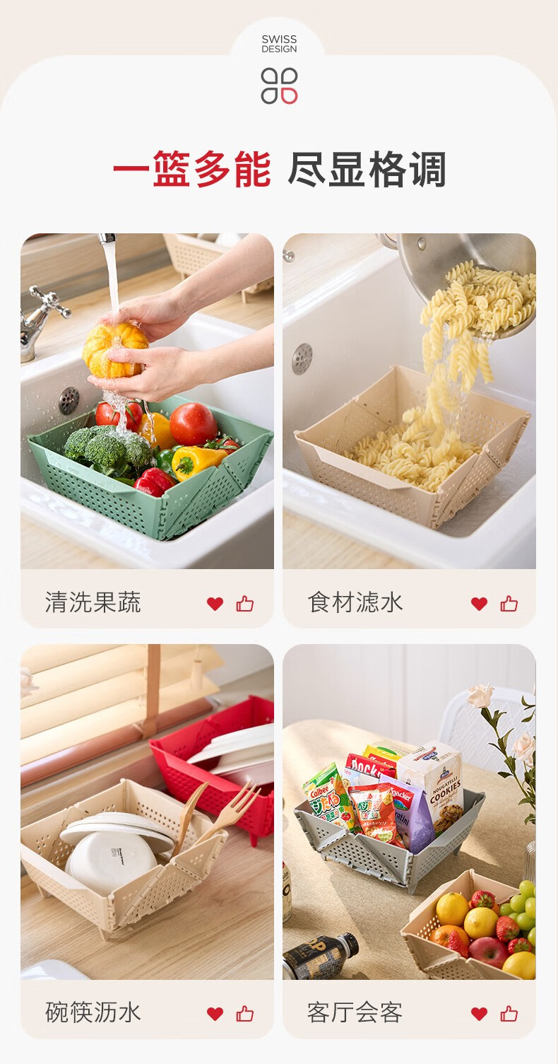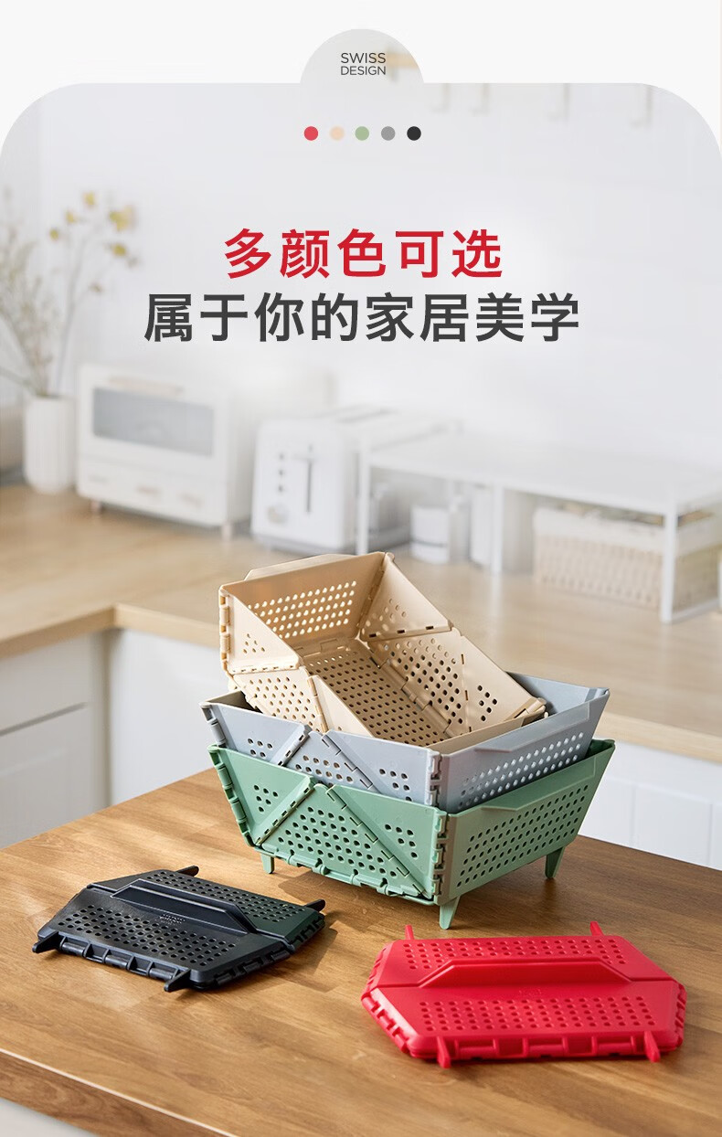 Swiss KUHN RIKON foldable storage basket fruit drain basket household storage basket vegetable basket kitchen chopsticks drain rack red large size dishwasher