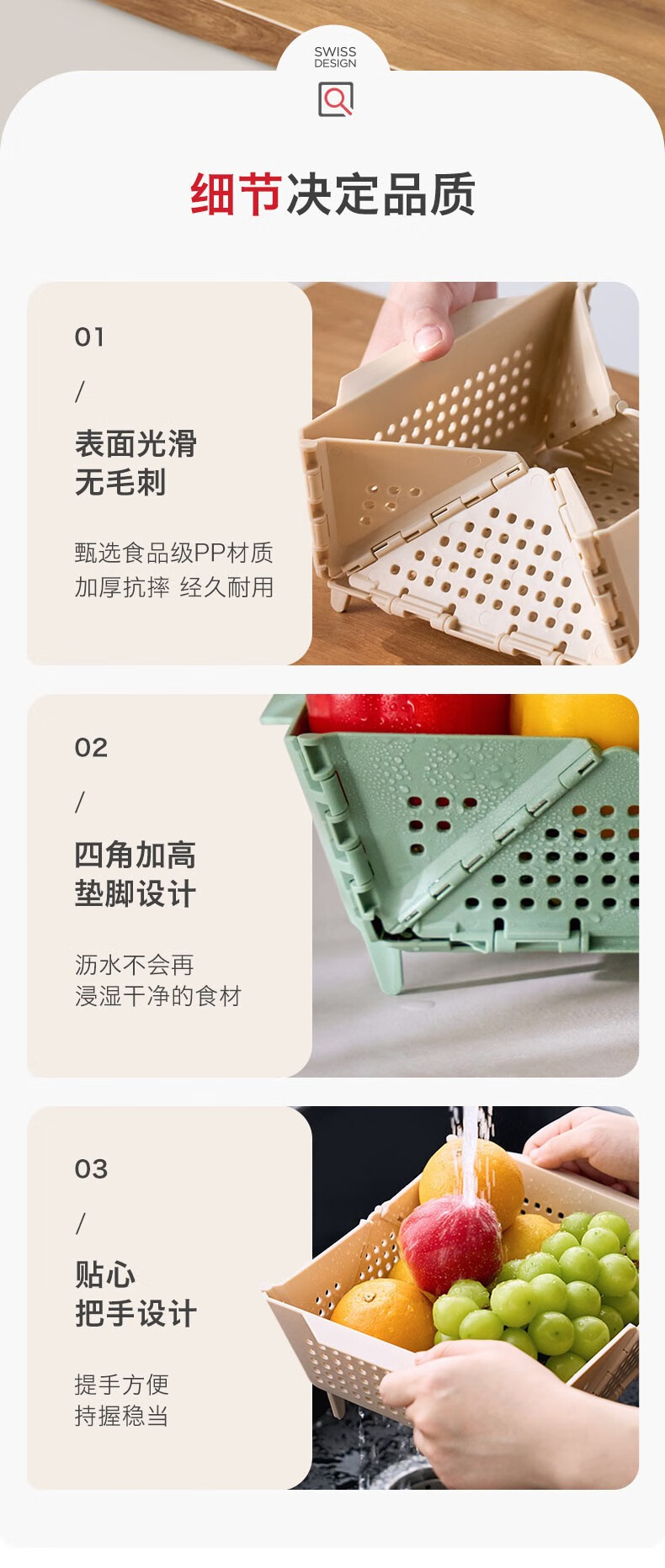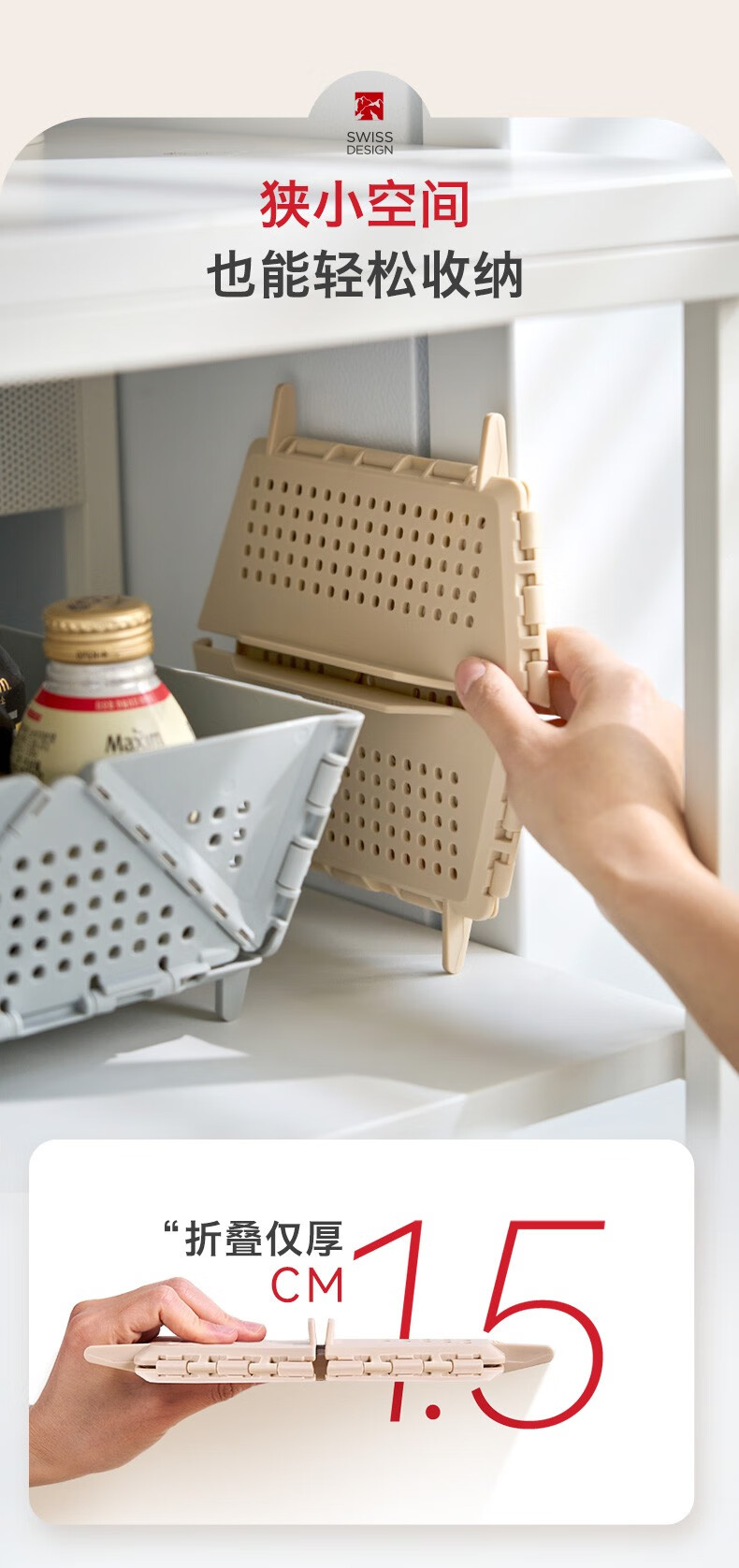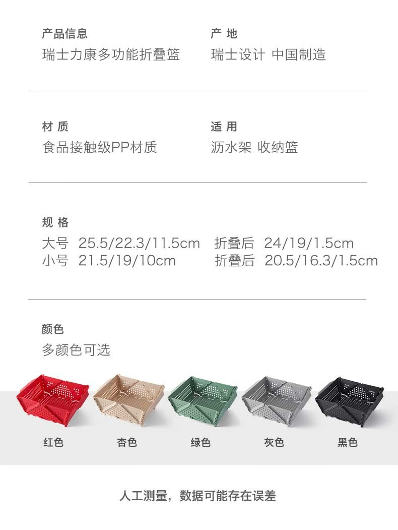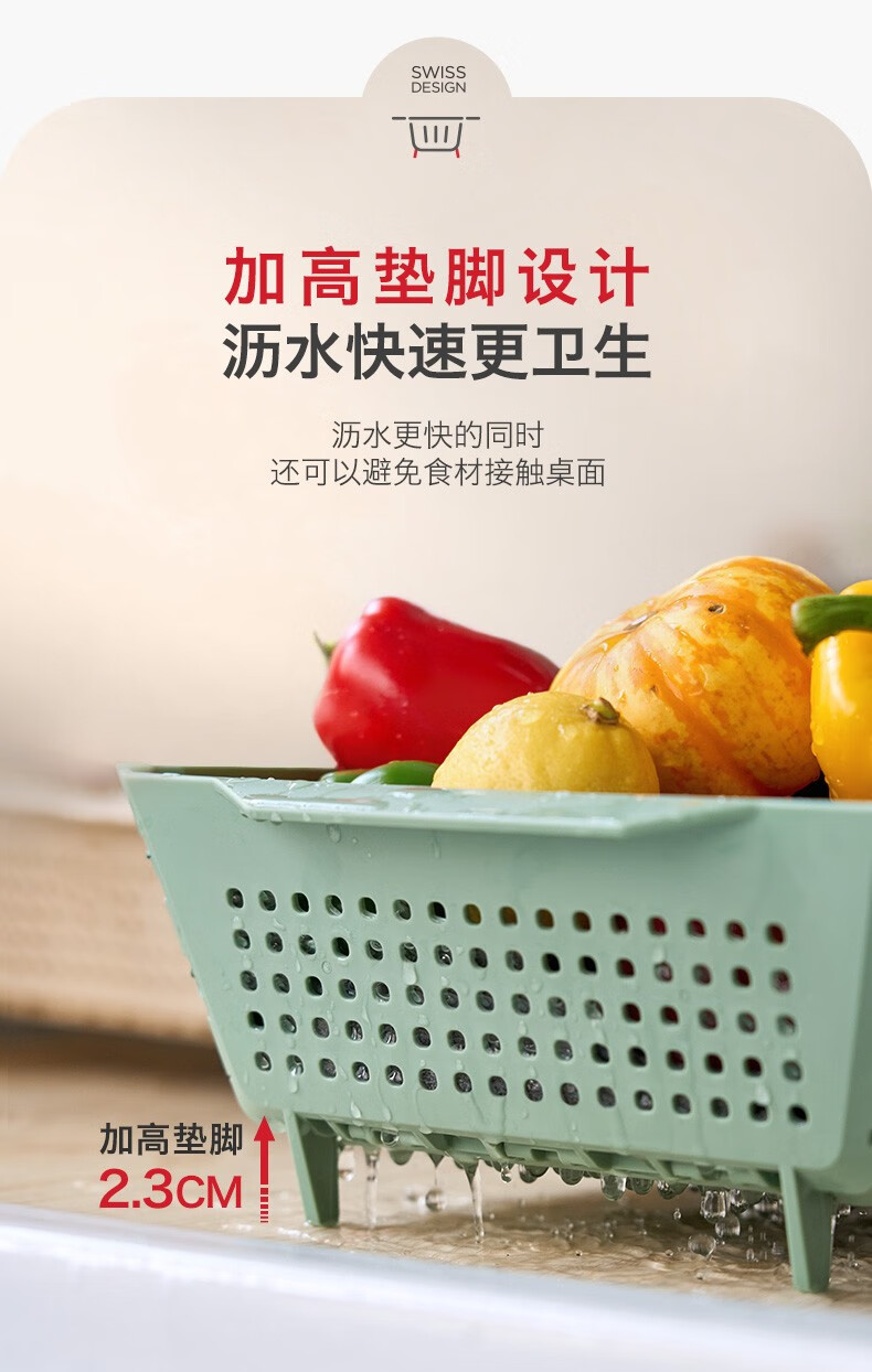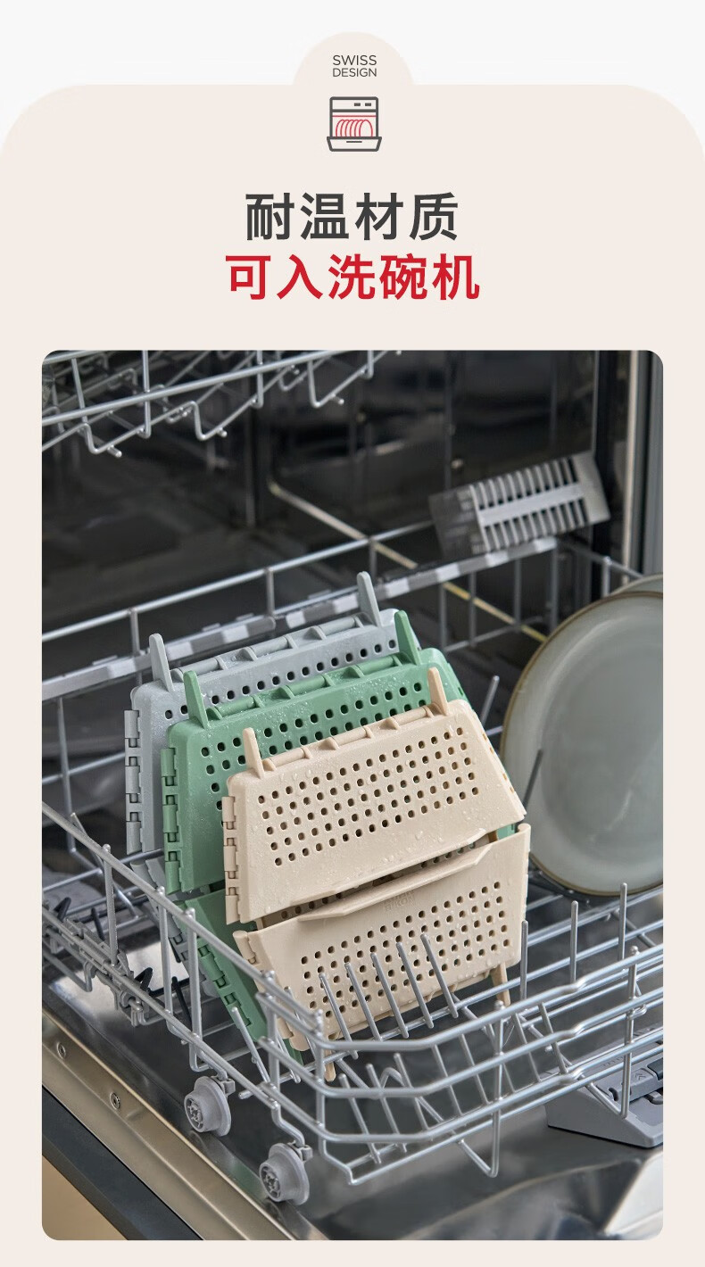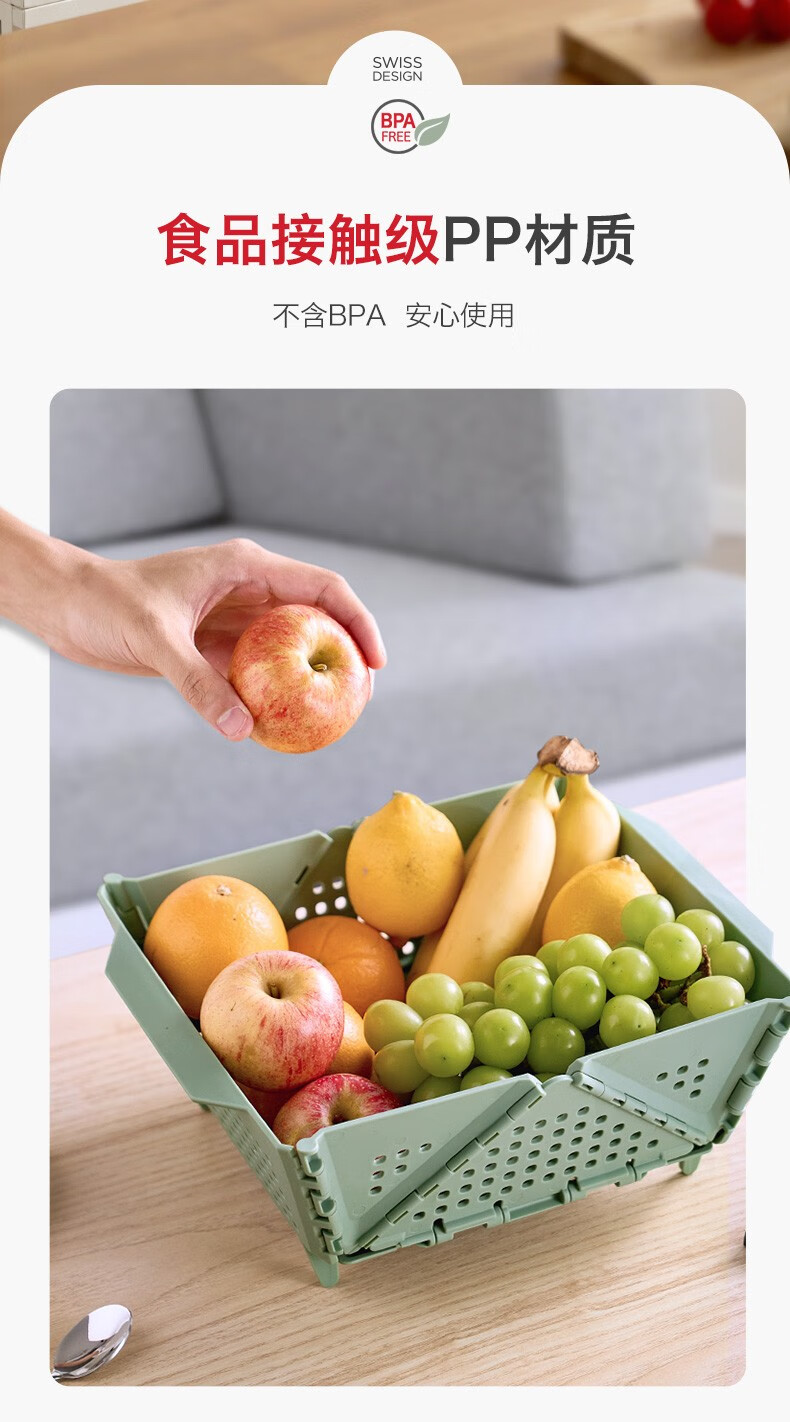 Swiss KUHN RIKON foldable storage basket fruit drain basket household storage basket vegetable basket kitchen chopsticks drain rack red large size dishwasher