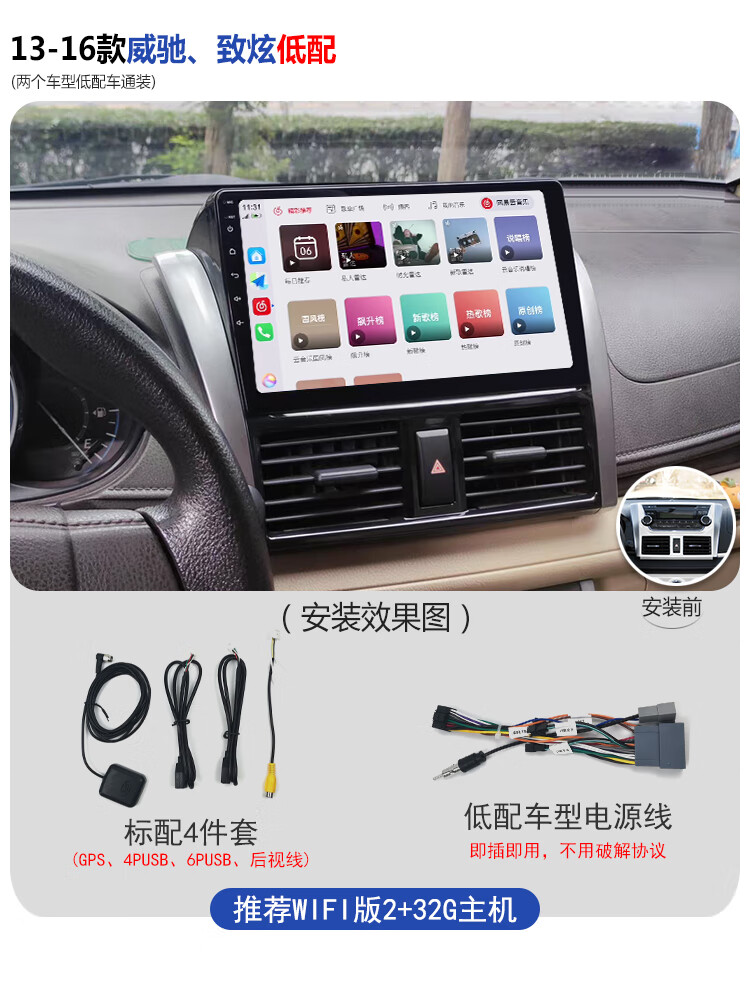 Suitable for 13, 14, 15 and 16 Toyota Vios car central control display Android large-screen navigation all-in-one machine. Standard configuration (including screen/frame/power cord). Install it by yourself. Basic model 4 cores 1+16G (optional for low demand)
