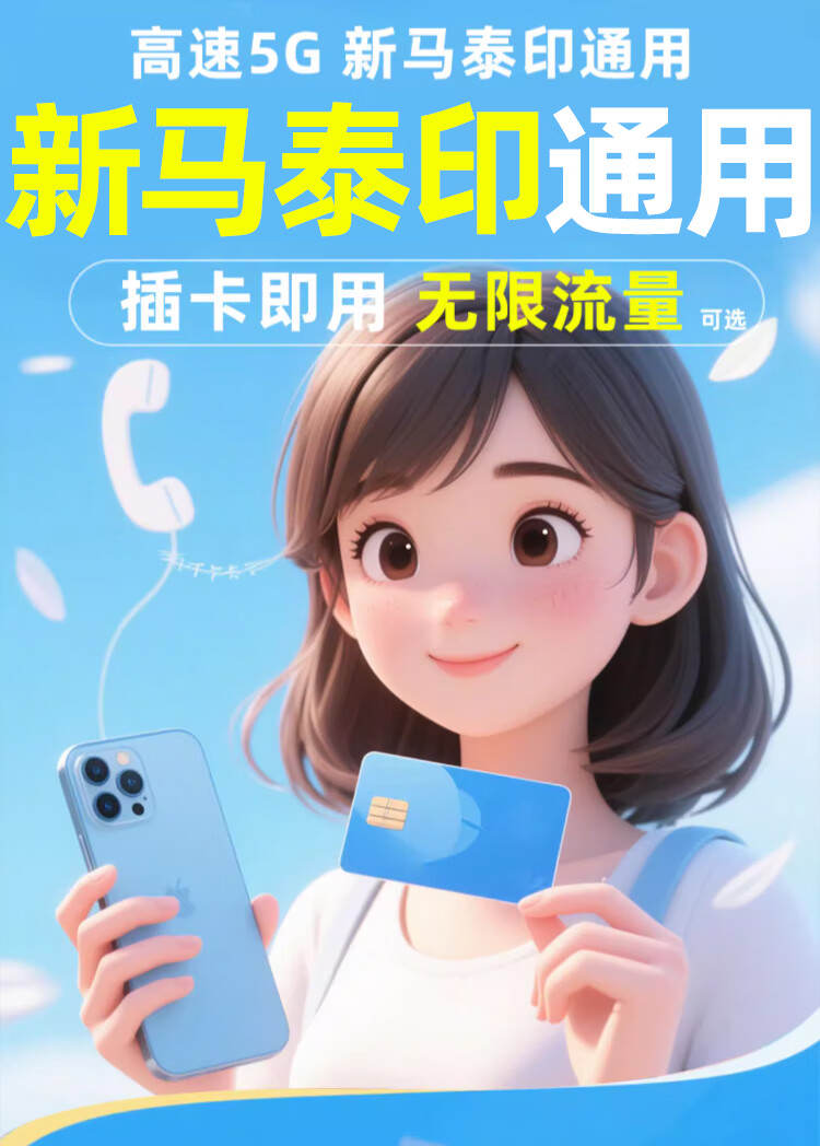 Singapore/Malaysia/Thailand/Indonesia/Telephone card high-speed 5G with unlimited traffic mobile phone sim card for 6 days, 2GB per day, high-speed 5G + unlimited 3G network