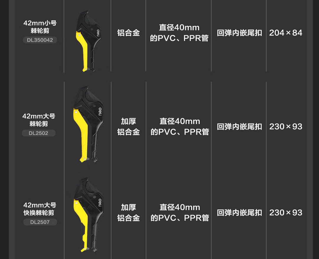 Deli pipe cutter water pipe professional pipe shearing tool ppr scissors pvc pipe cutter hot melt pipe shearing knife pipe cutter 42mm DL350042