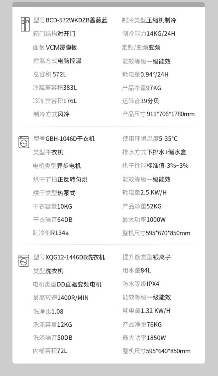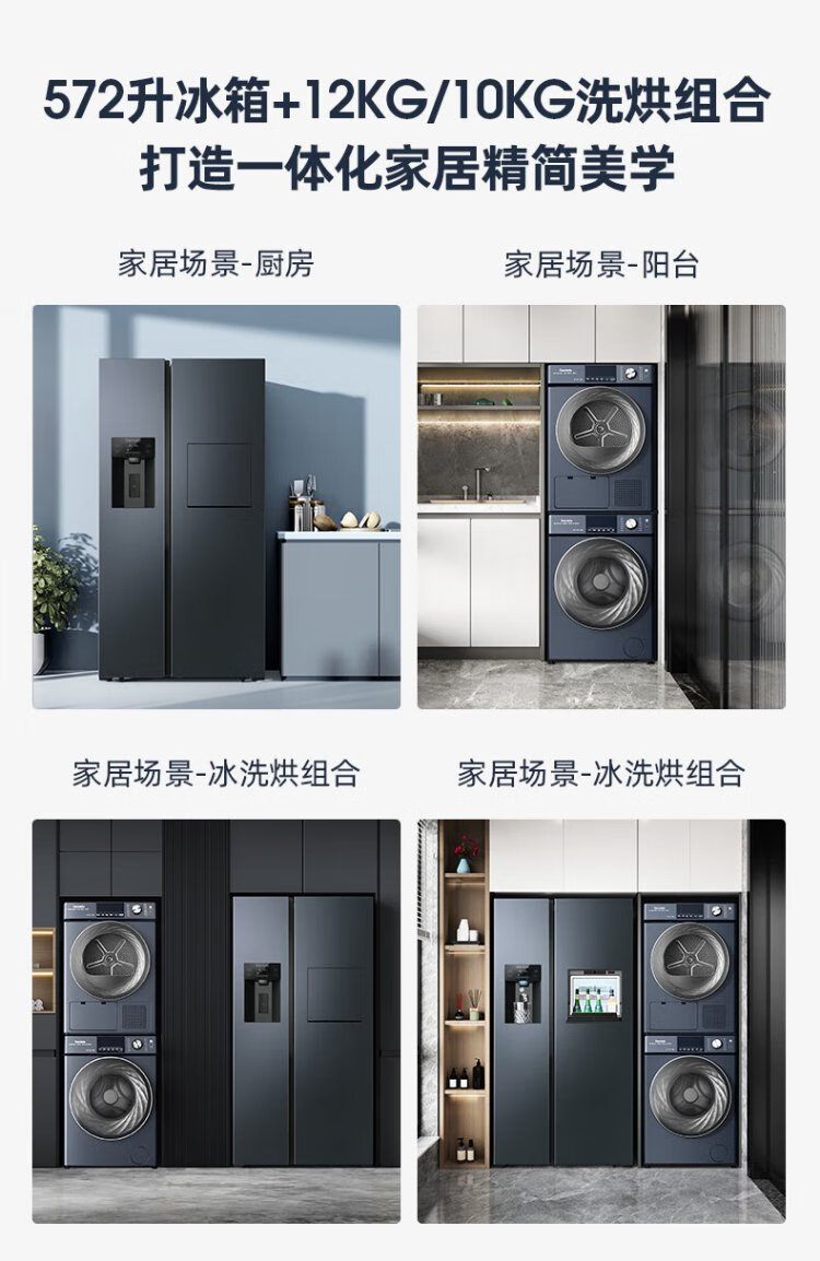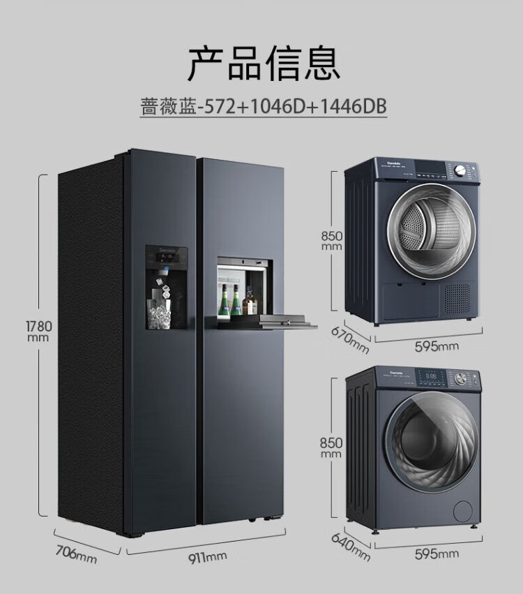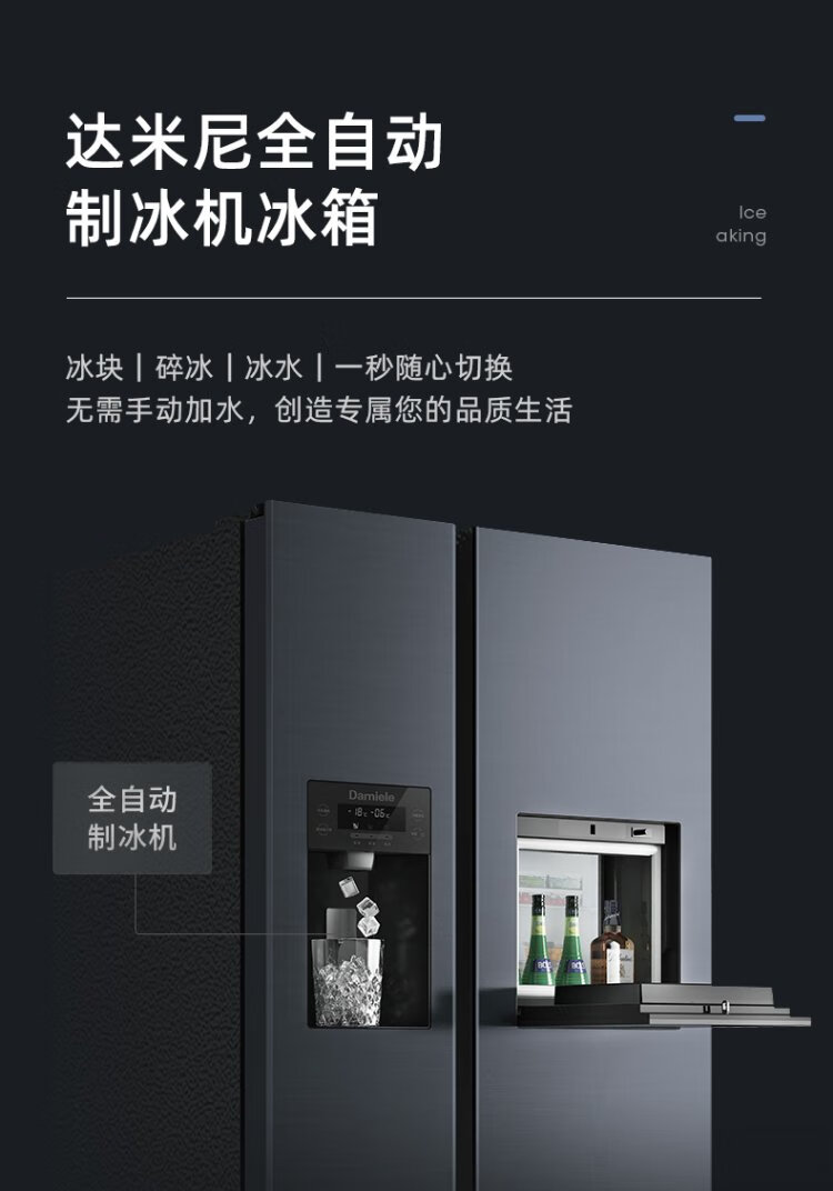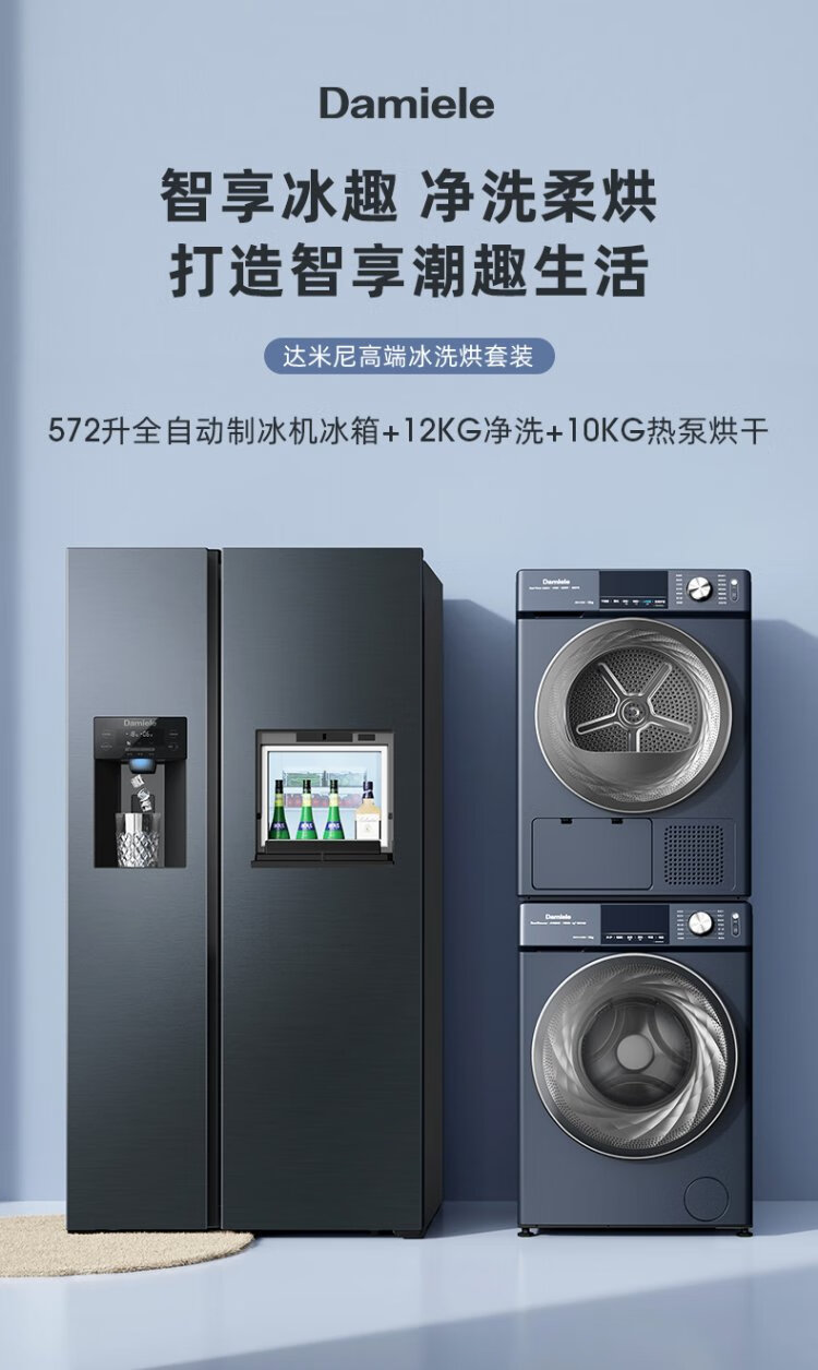 New product Damiele/Damini 572L ice machine refrigerator 12kg washing machine 10kg heat pump dryer set D573 ice washing and drying combination