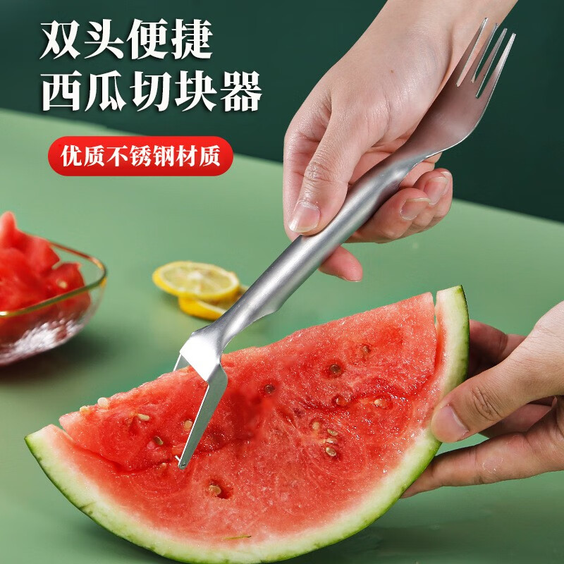 Jingju Stainless Steel Watermelon Slicer Fruit Divider Knife and Fork Integrated Slicing Tool Watermelon Fruit Divider Watermelon Dicer 1 Pack 25*4.5cm