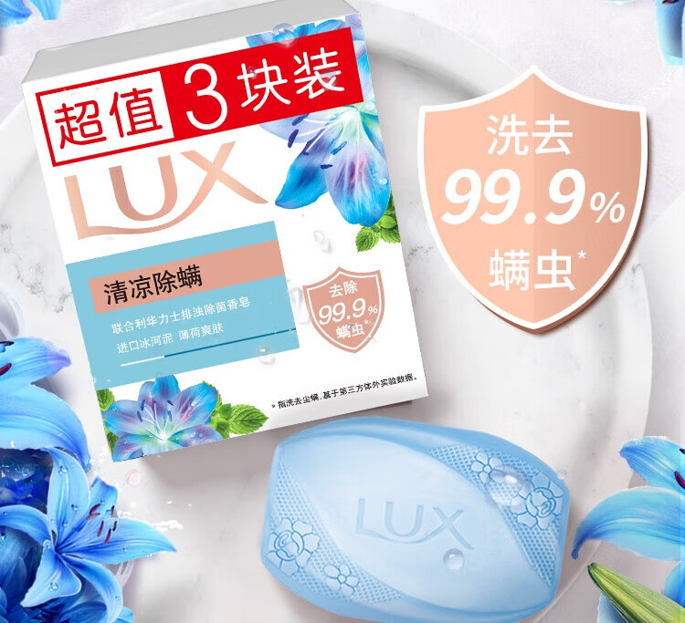 Lux Cooling Soap Refreshing Anti-Itching Bath Soap Leaves Fragrance and Refreshes the Whole Body Used to Remove Bacteria and Mite Soap Family Value Pack Refreshing Anti-itching Soap 100g*3 Pieces