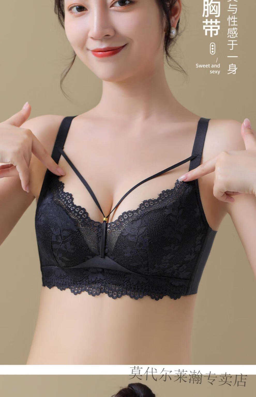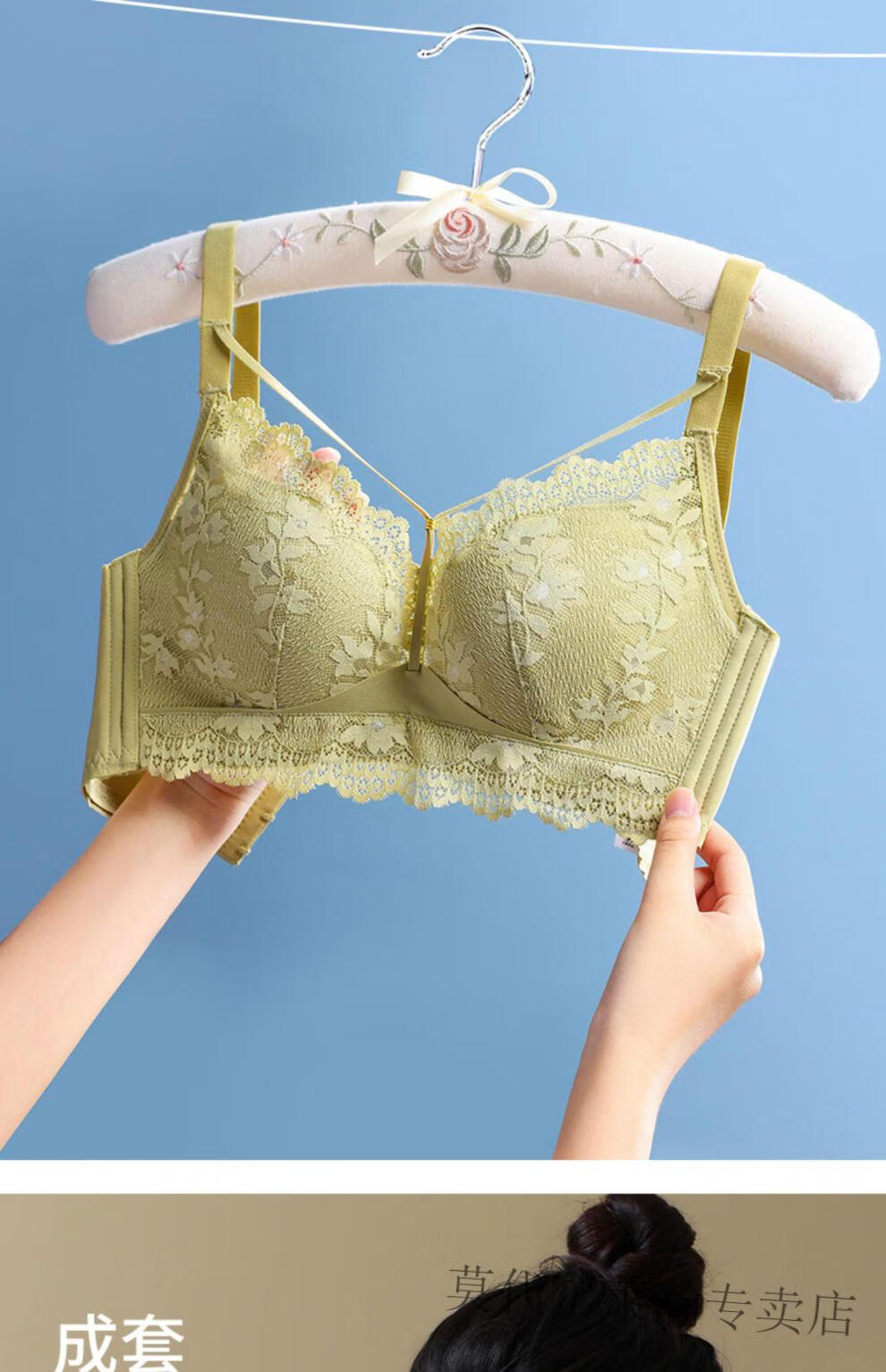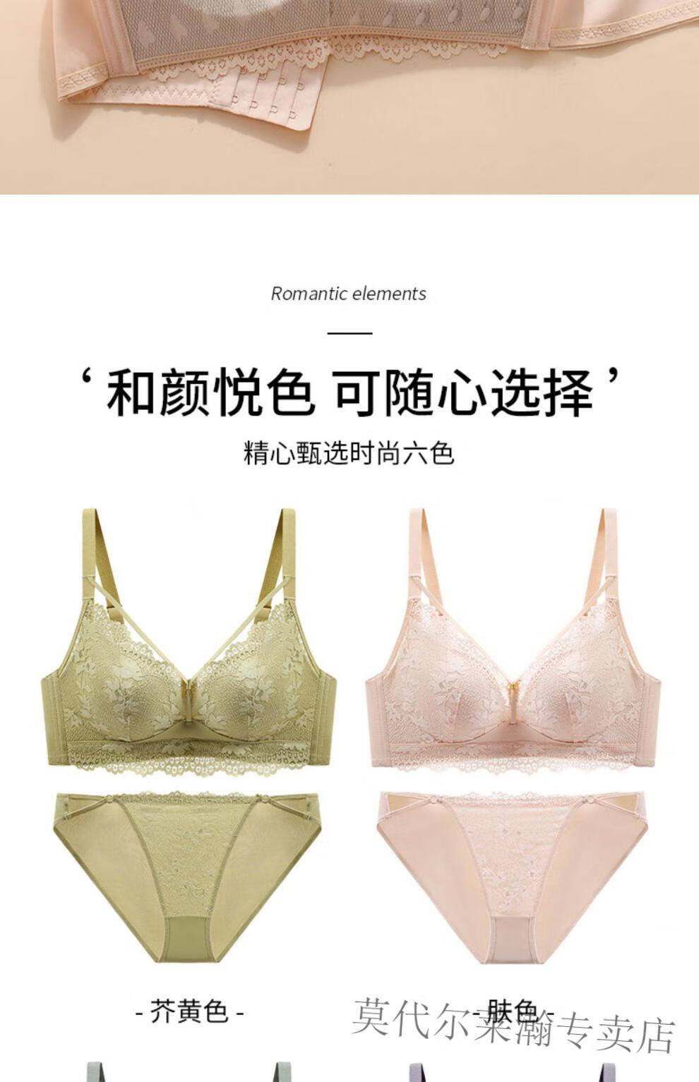 Modal underwear women's red zodiac year women's underwear set lace sexy wire-free push-up four-breasted bra set sweet suit red 75B 34B thickness can be noted
