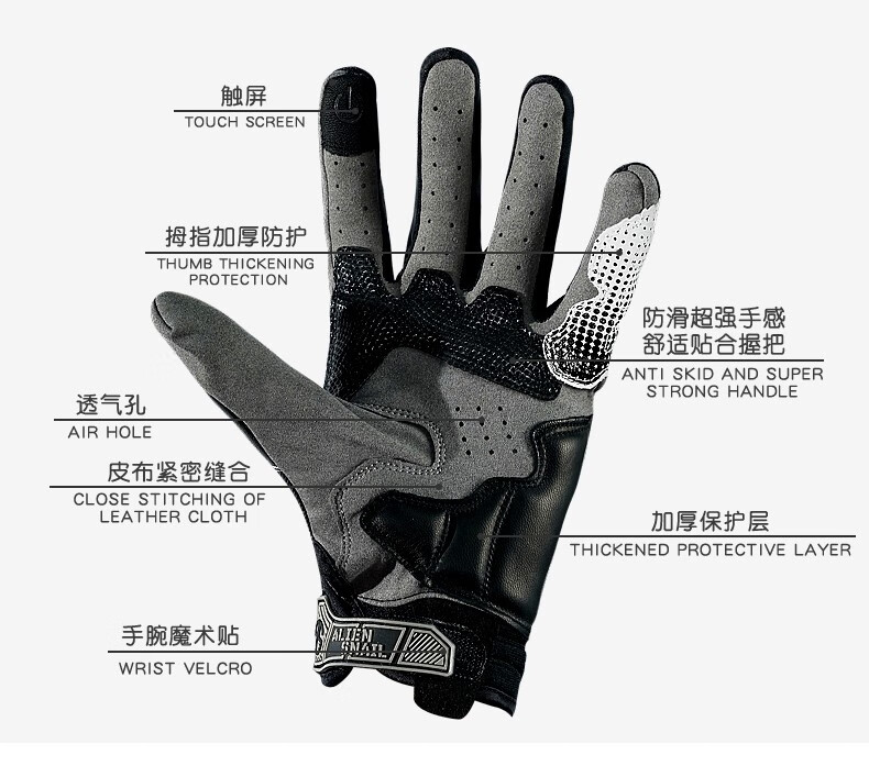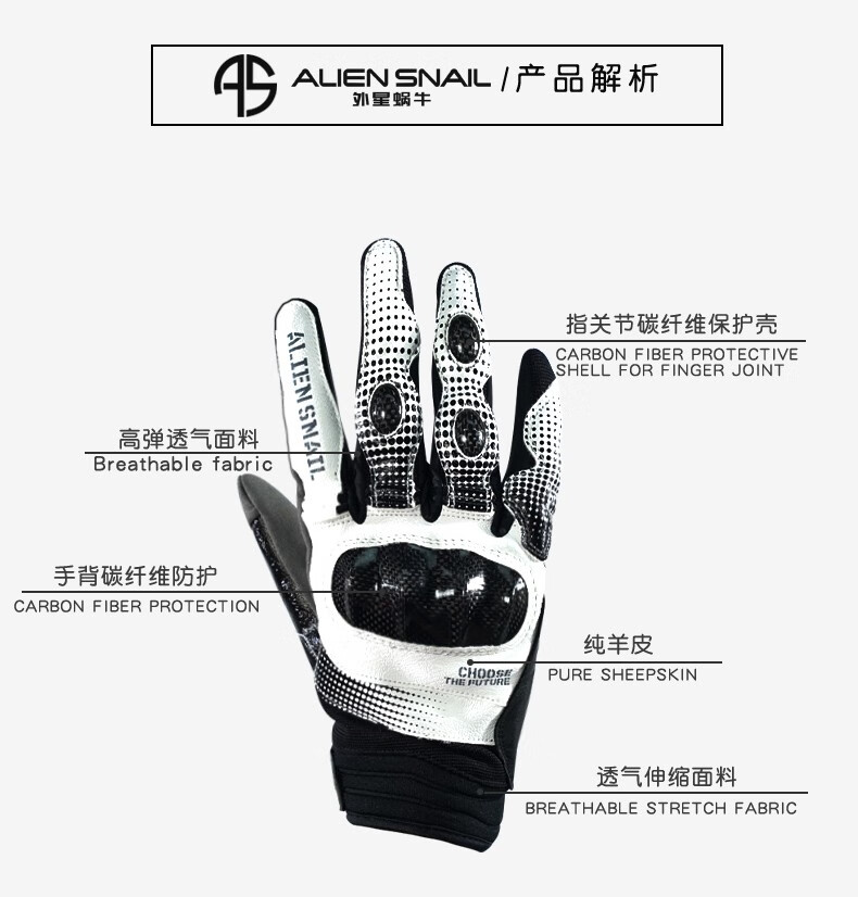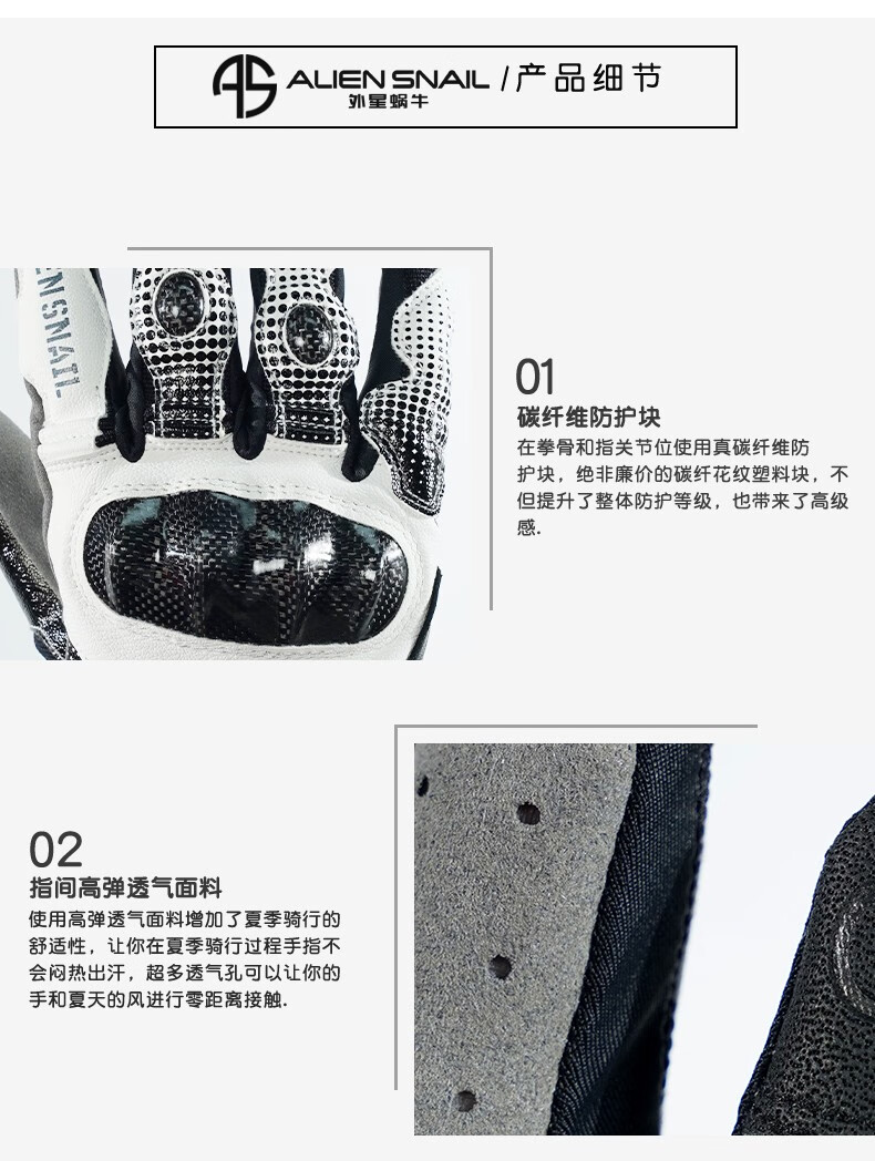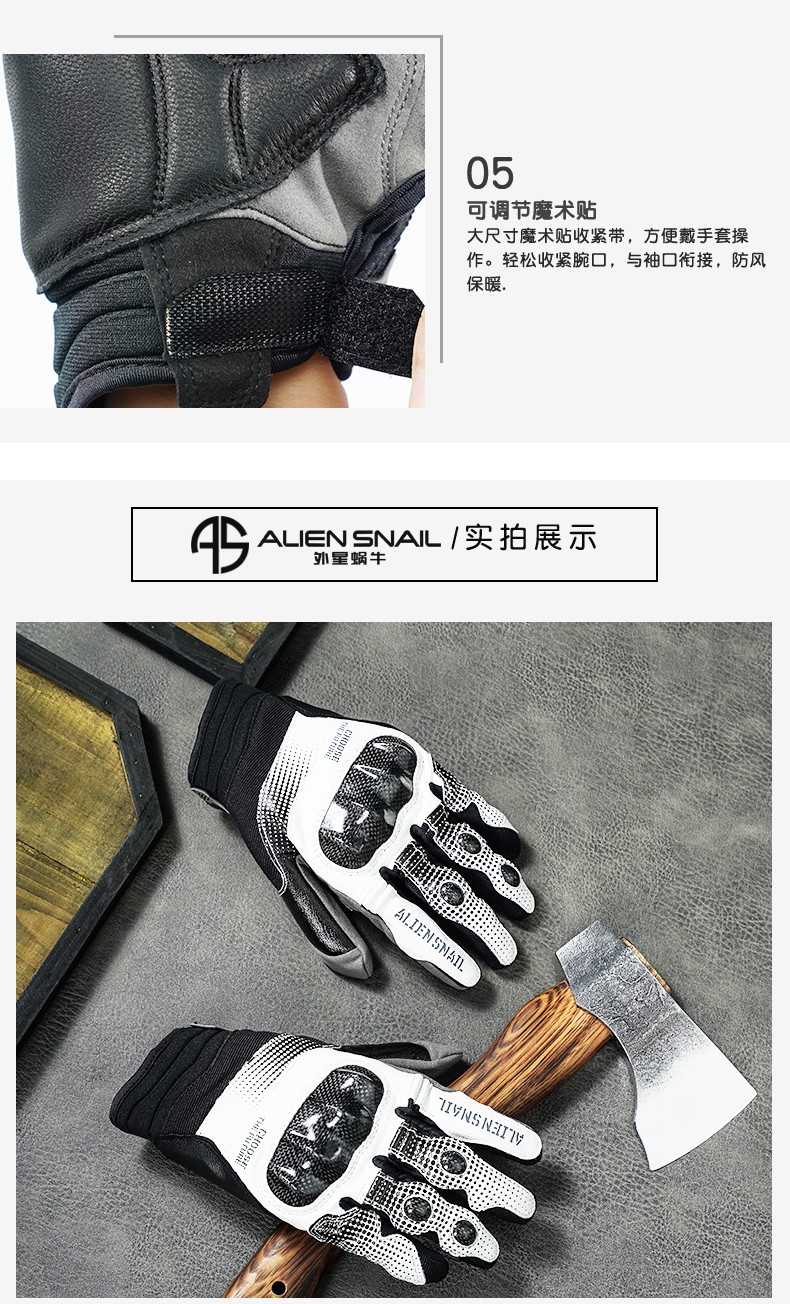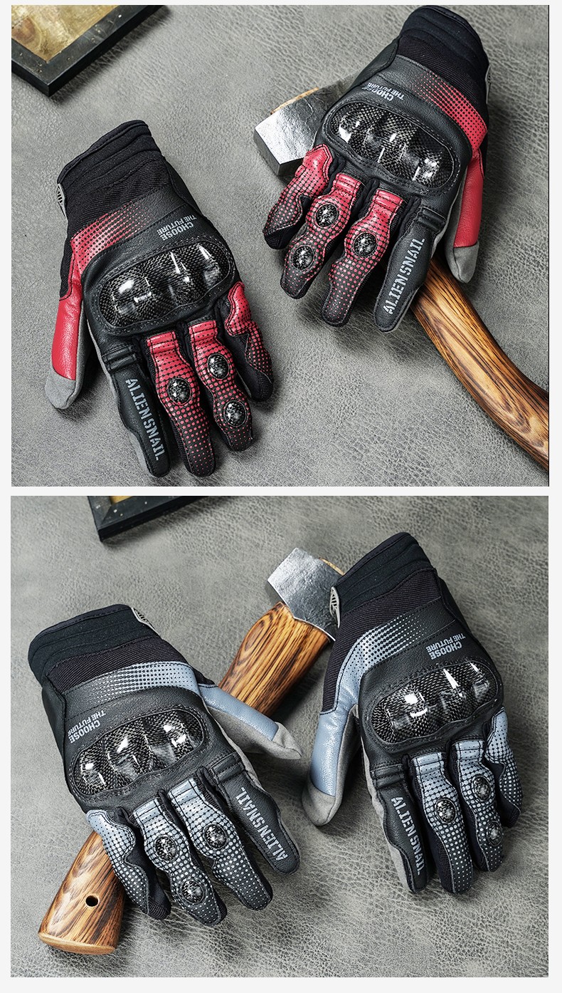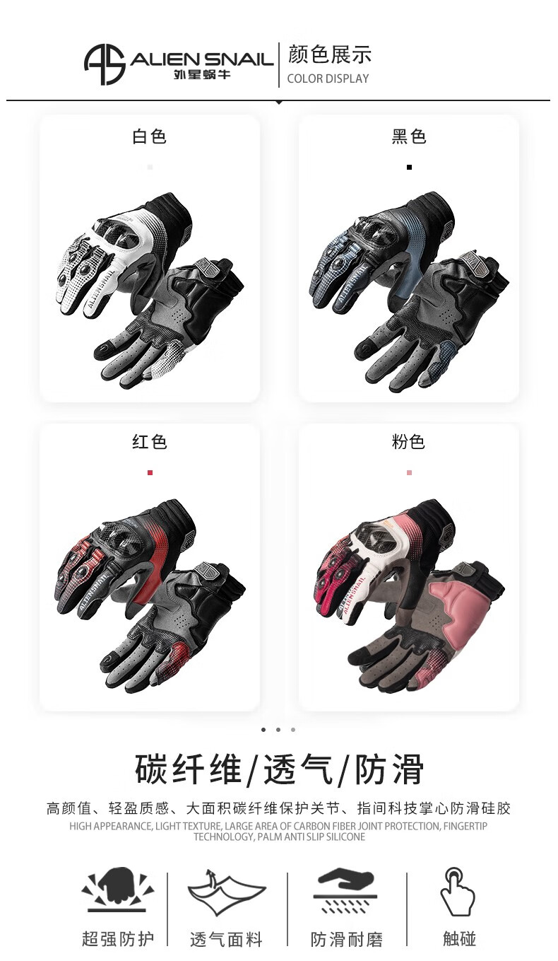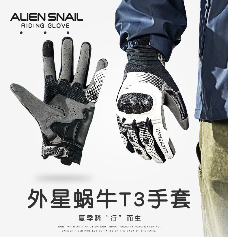 Alien Snail T3 Gloves Carbon Fiber Anti-fall Anti-Slip Men's and Women's Four Seasons Breathable Motorcycle Racing Motorcycle Riding Equipment T2 Black XL
