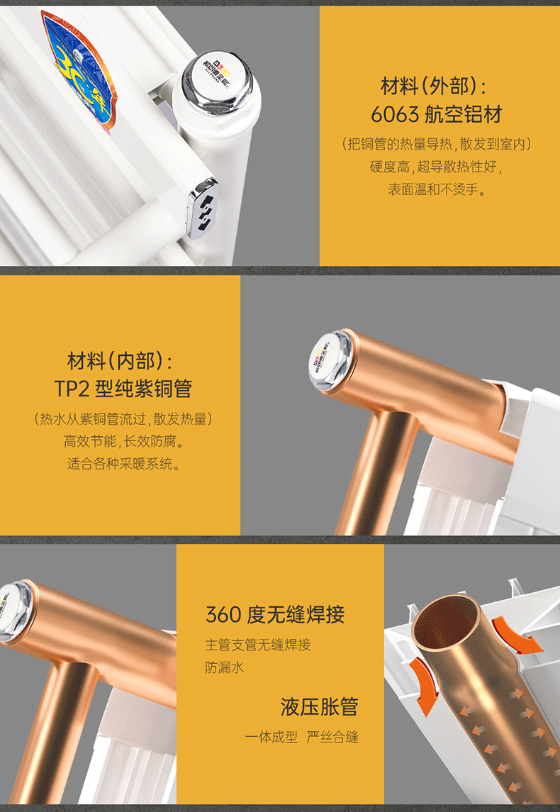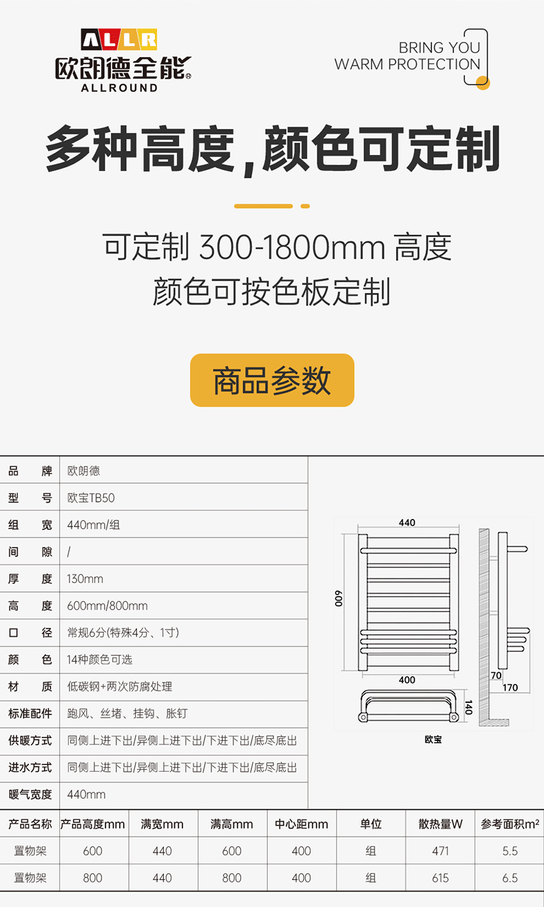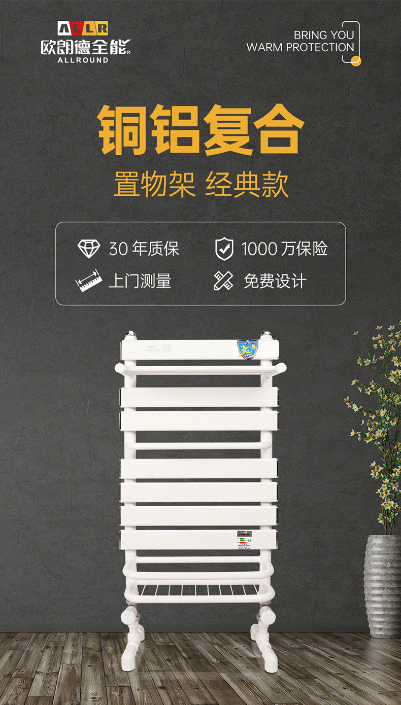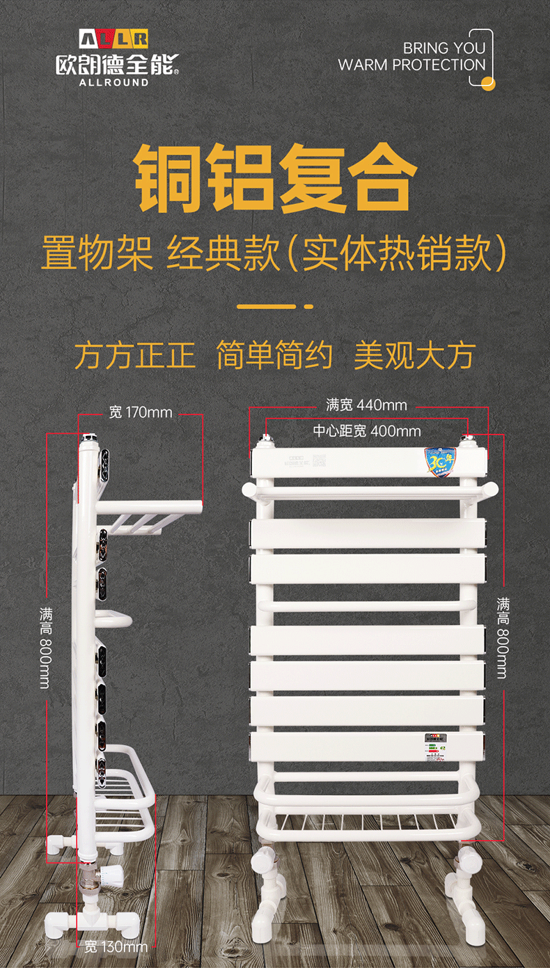 Olande all-purpose copper-aluminum composite radiator household bathroom wall-mounted toilet small basket radiator storage rack 600*400mm center distance