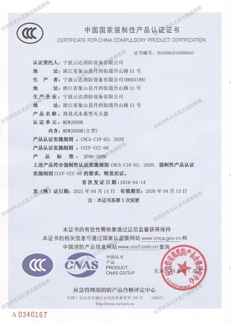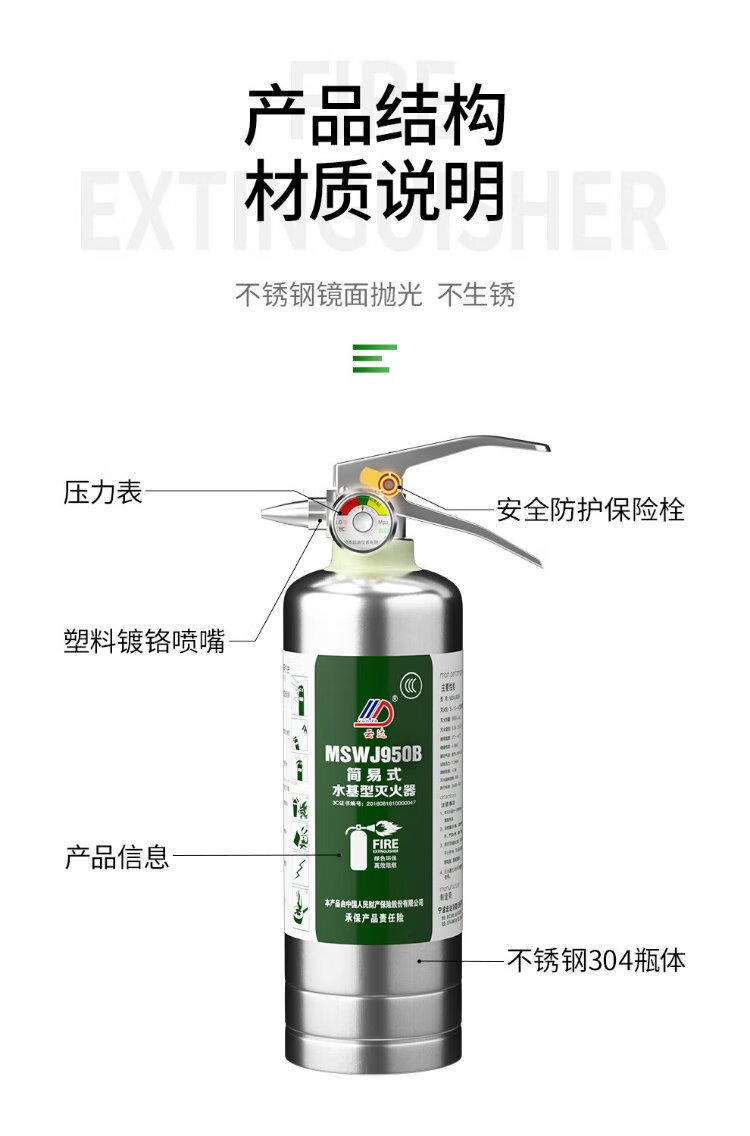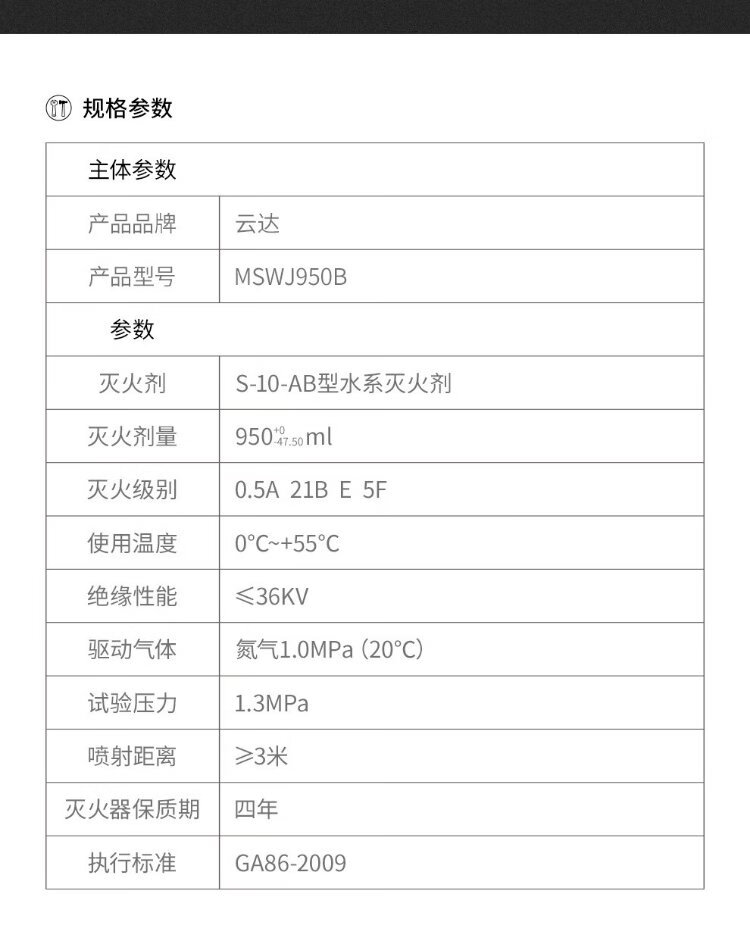 Yunda simple water-based fire extinguisher MSWJ950B 1 set