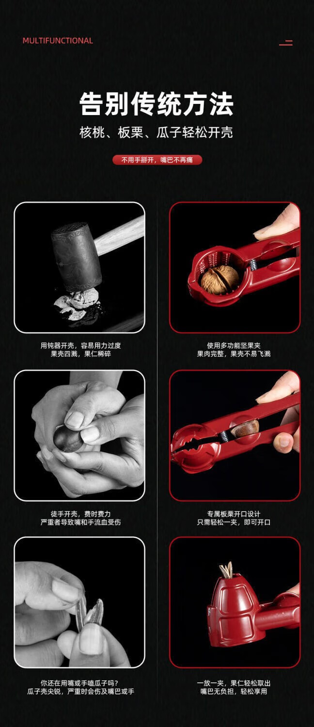 CTRLEND multifunctional walnut peeling melon seed clip funnel nut pliers chestnut pecan clip shelling tool hazelnut shell opener walnut clip artifact upgrade multi-purpose