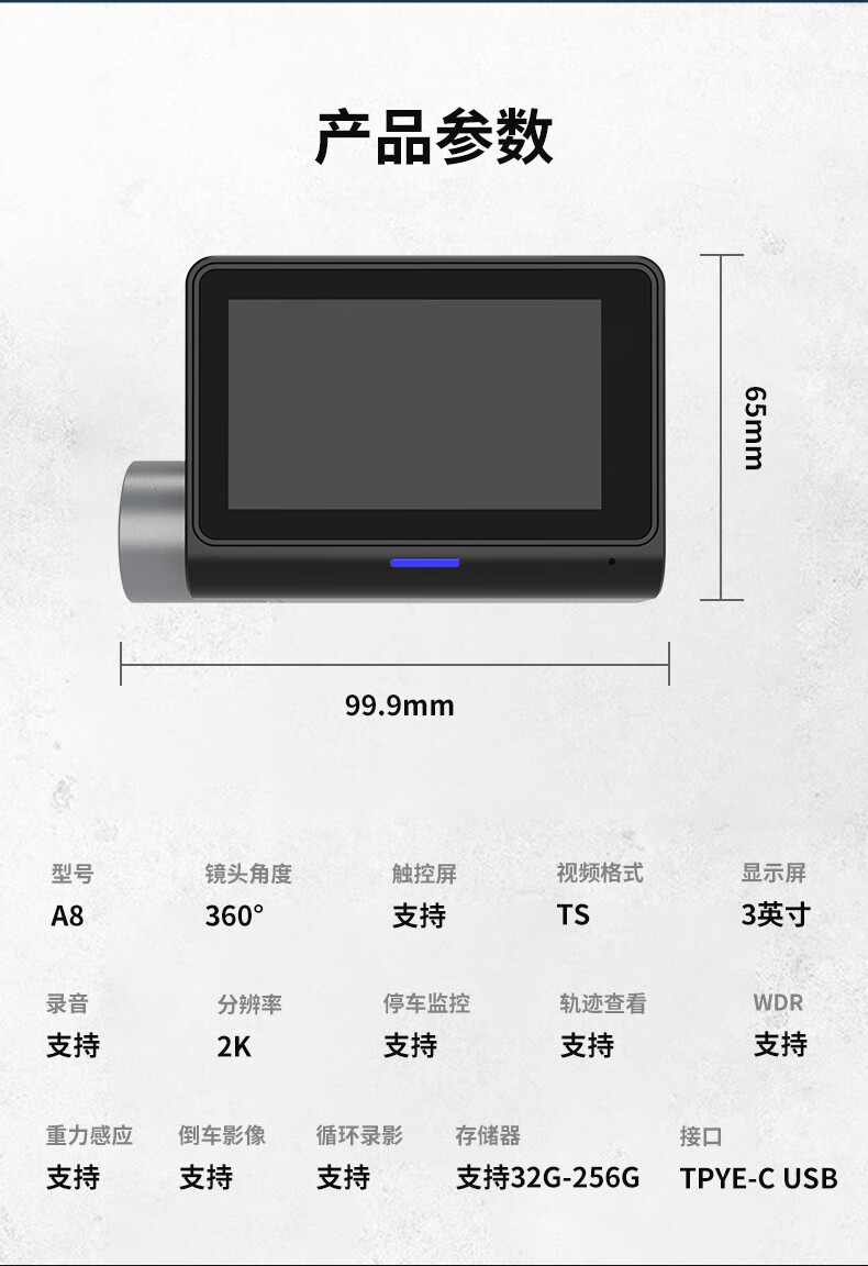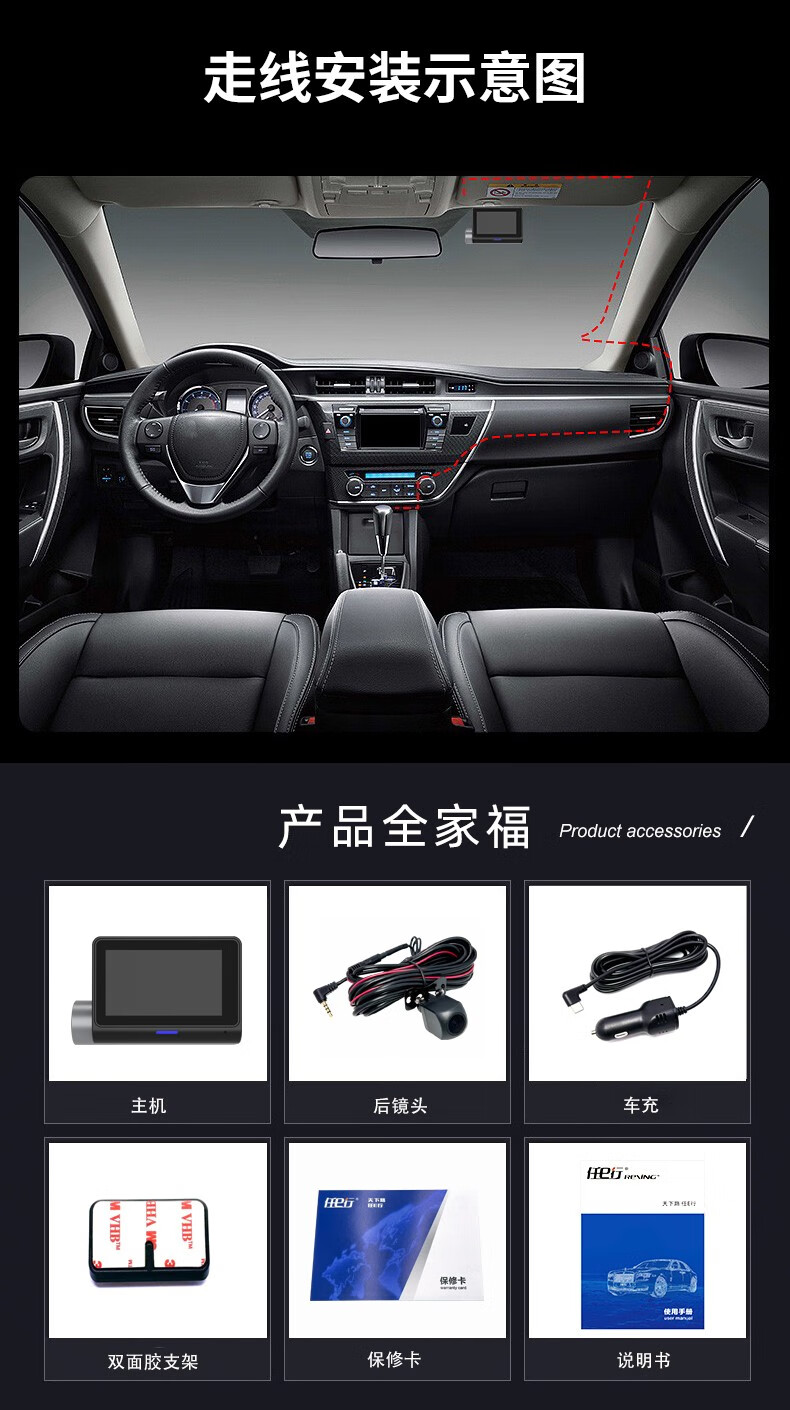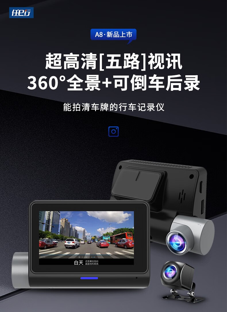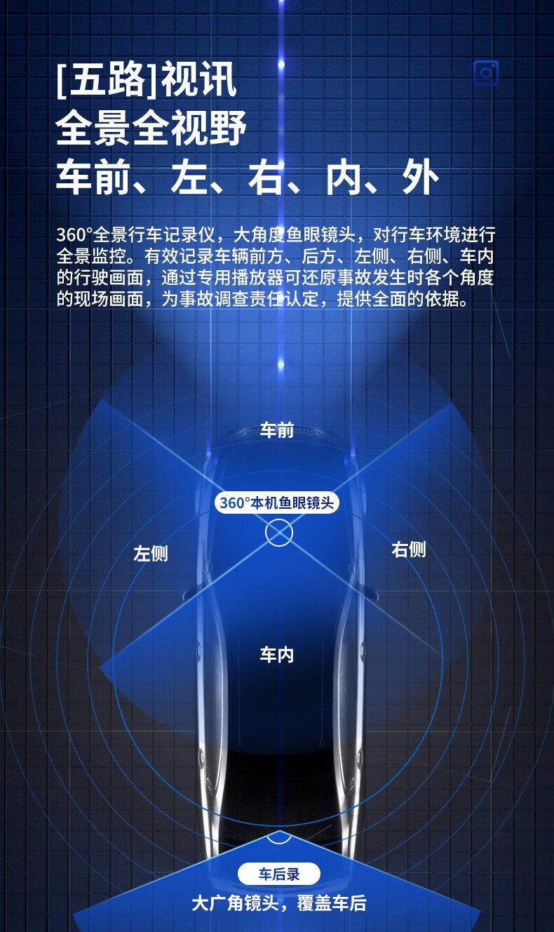 Renexing driving recorder, 360-degree panoramic inside and outside five recordings, all-round 24-hour parking monitoring and anti-trailer, panoramic five recordings + reversing image + 256G high-speed card