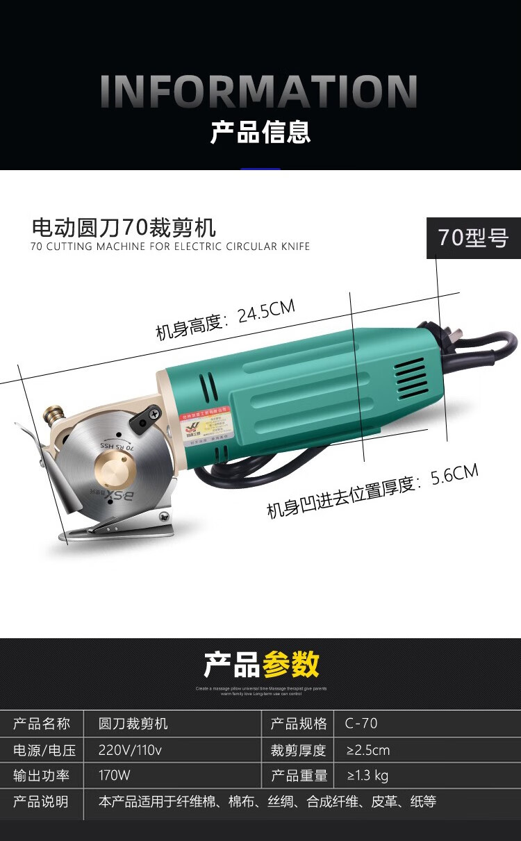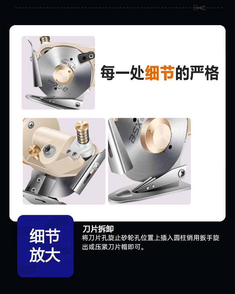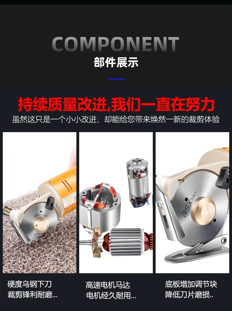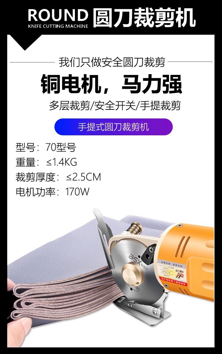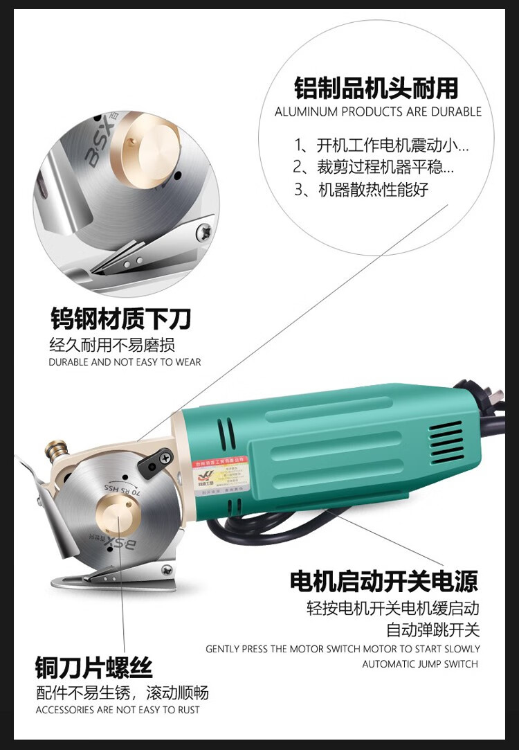 Baishixing (BSX) cloth cutting machine electric circular knife cutting machine scissors cloth cutting machine electric scissors cloth cutting machine electric cloth cutting machine yellow shell wire length 3 meters/alloy steel knife