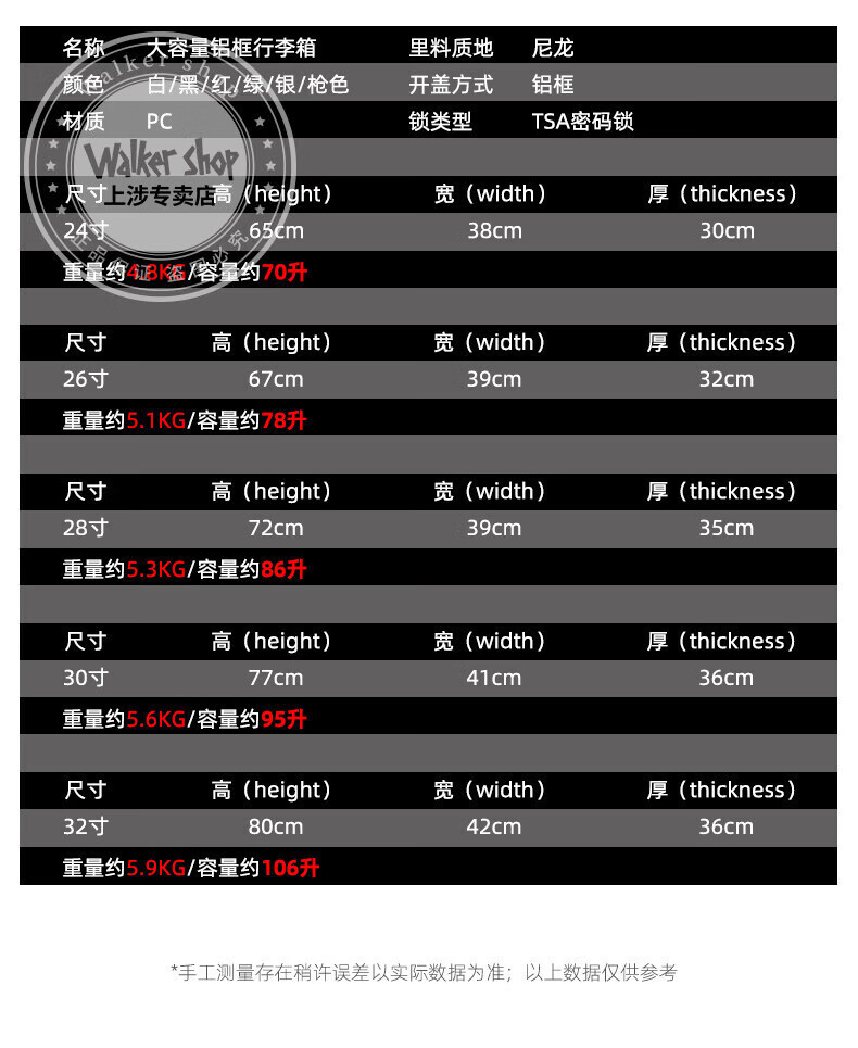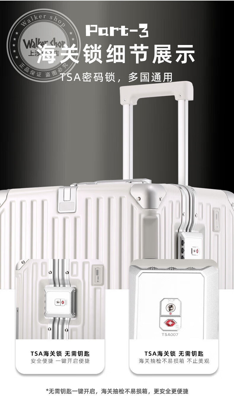 Walker Shop luggage 37-open large-capacity aluminum frame trolley case women's thickened multi-functional suitcase 30 inches 32 business cases men's silver 32 inches