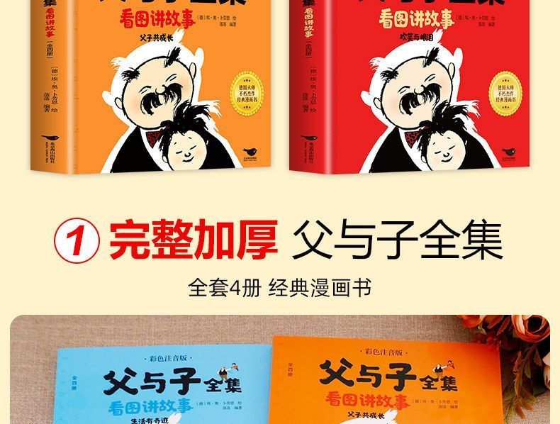 The Complete Works of Father and Son (Color Phonetic Phonetic Edition) The Complete Works of Father and Son (Read Pictures and Tell Stories), Composition Storyboard for Primary School Students, First Grade, Second Grade, Volume 2, Third Grade Father and Son, Complete Works of Father and Son (4 Volumes)