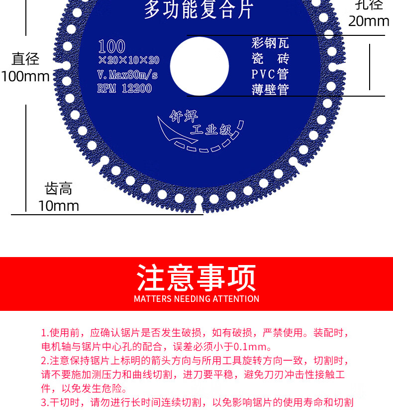 Xinchengfeng multifunctional composite sheet color steel tile PCV wood ceramic tile marble cutting 100 angle grinder cutting disc 110 composite sheet/industrial storage box (10 pieces) blue