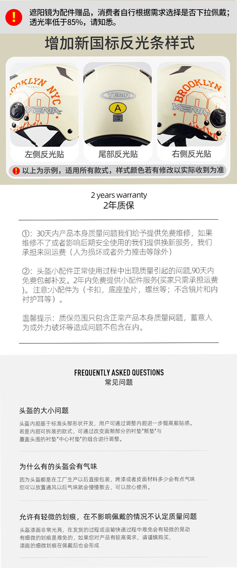 YEMA electric vehicle helmet universal wind and sun protection long lens short lens 325S/329S/339S (transparent short lens))