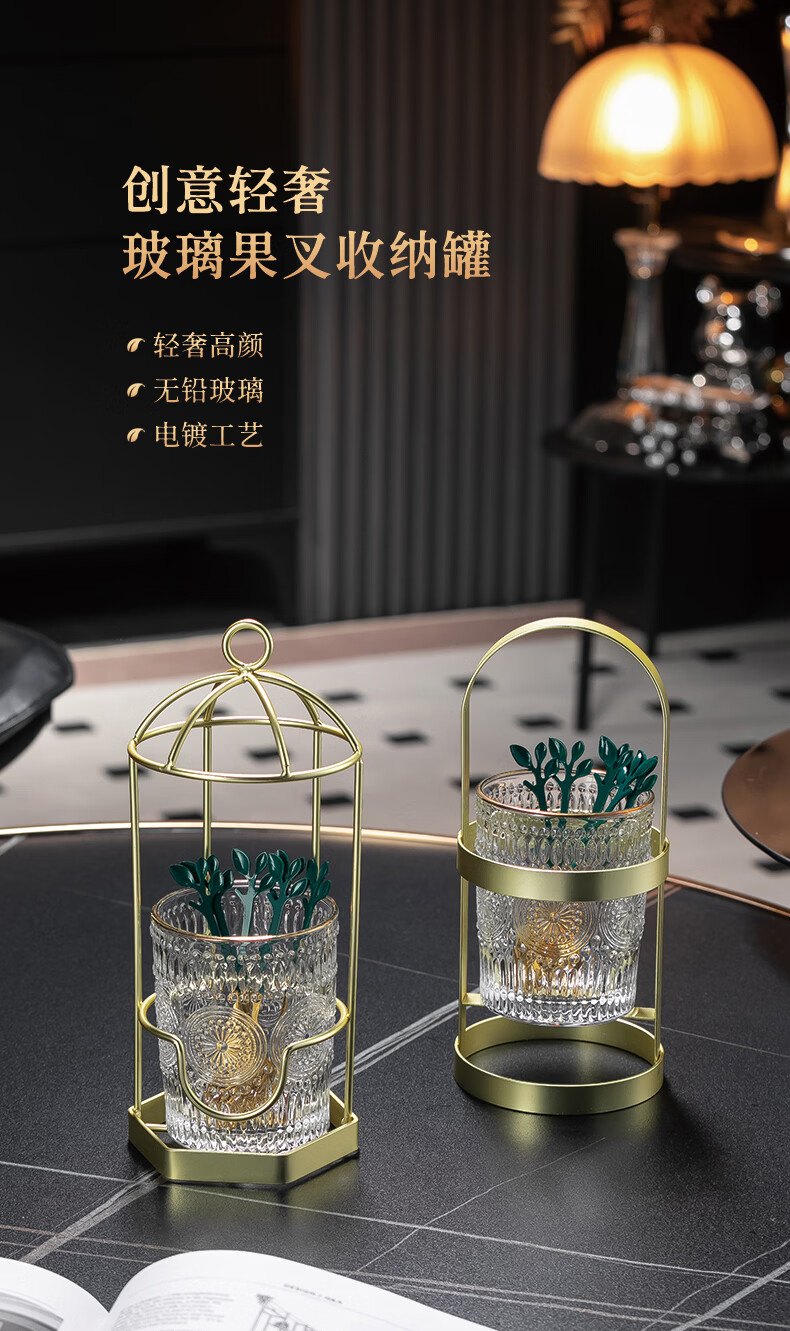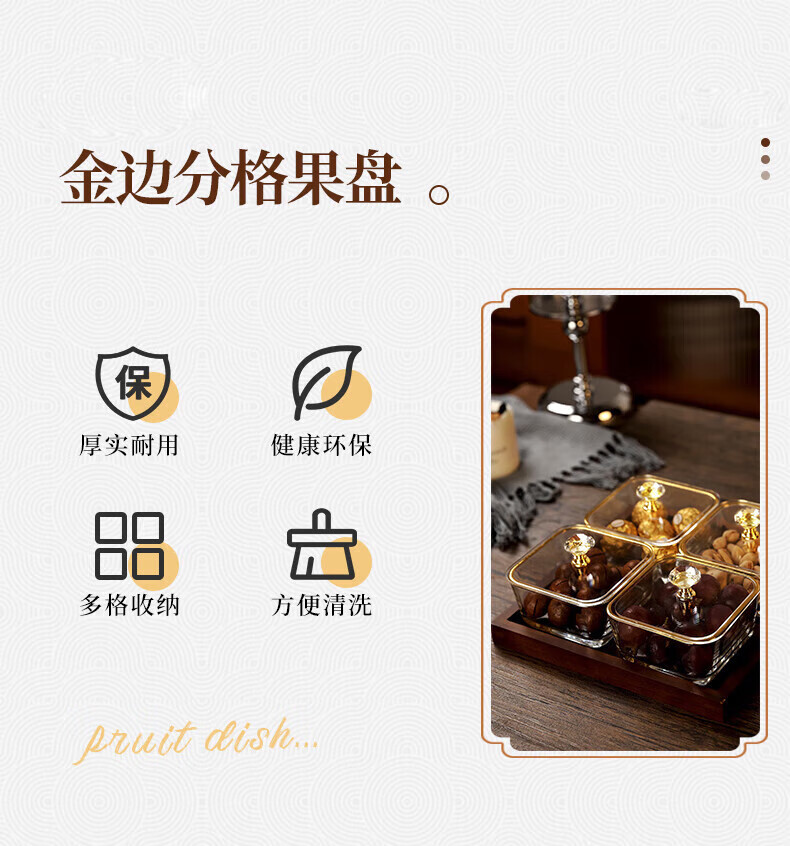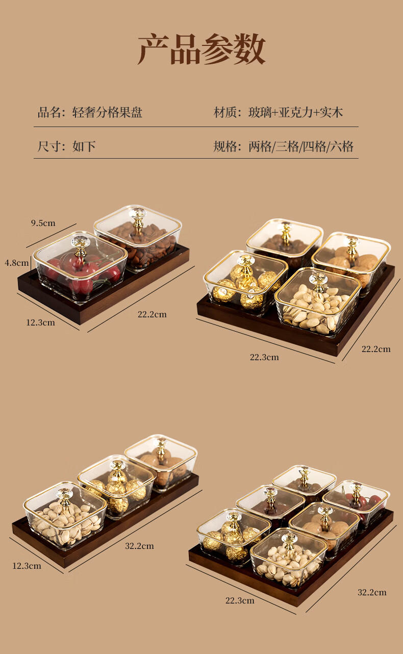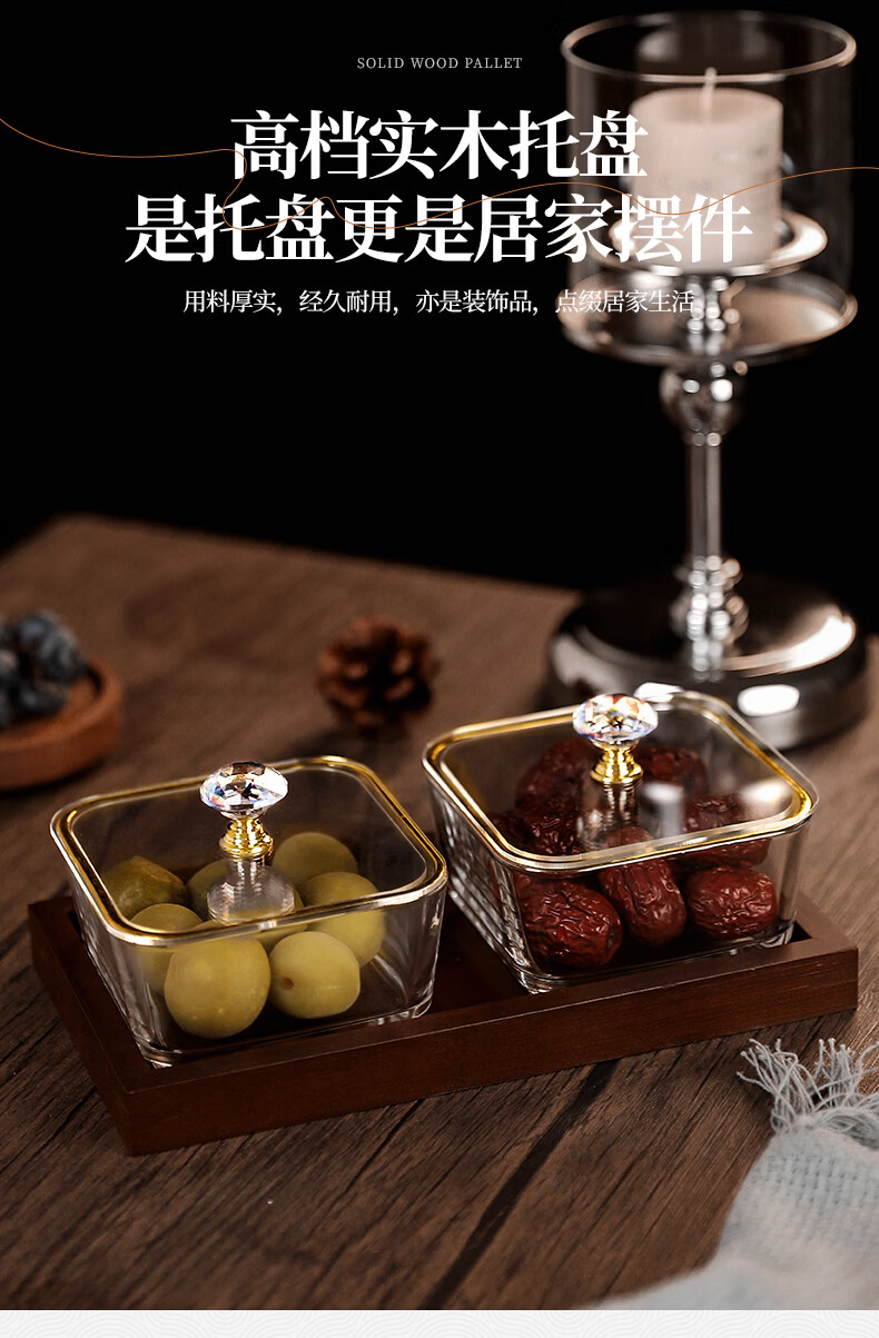 CRISTALGLASS new home living room fruit plate, coffee table, dried fruit plate, snack plate, storage box, snacks, dried fruits, nuts, candies, snack compartments, 6-grid tray + 6 gold-rimmed fruit plates with lids