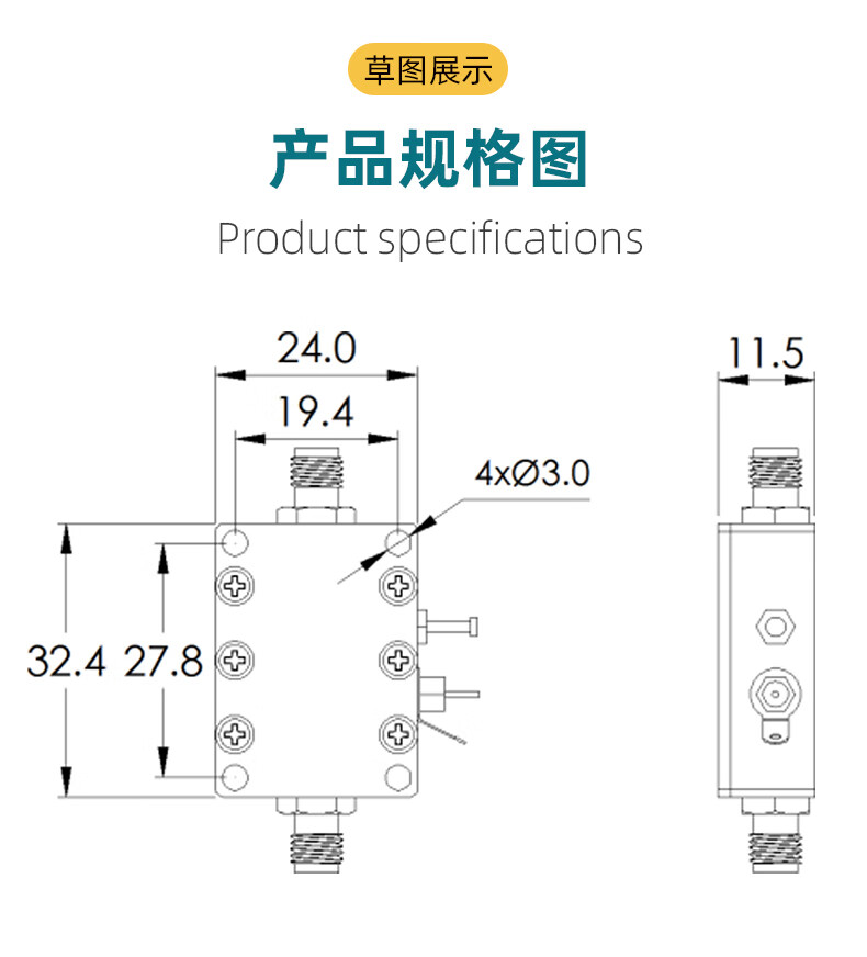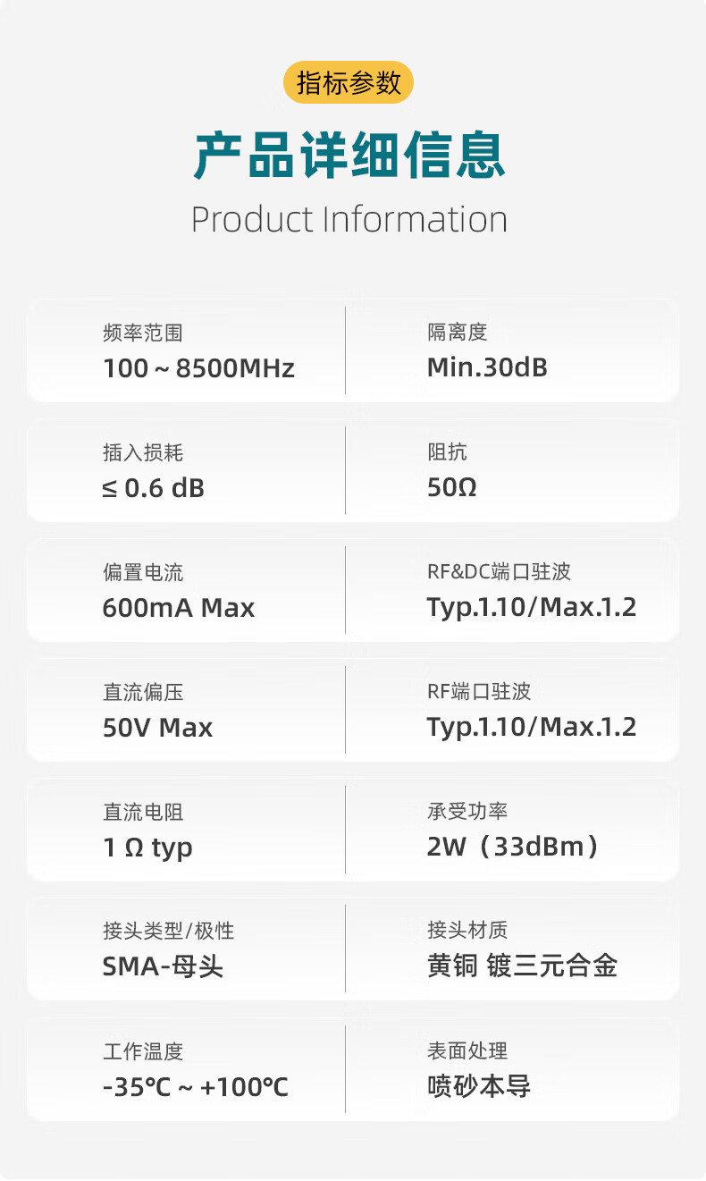 XINQY Xinqiyuan SMA RF wideband biaser 0.1-8.5G active device feeder 40GHz high frequency DC bias DC isolation box coaxial DC isolation 0.1-8.5G