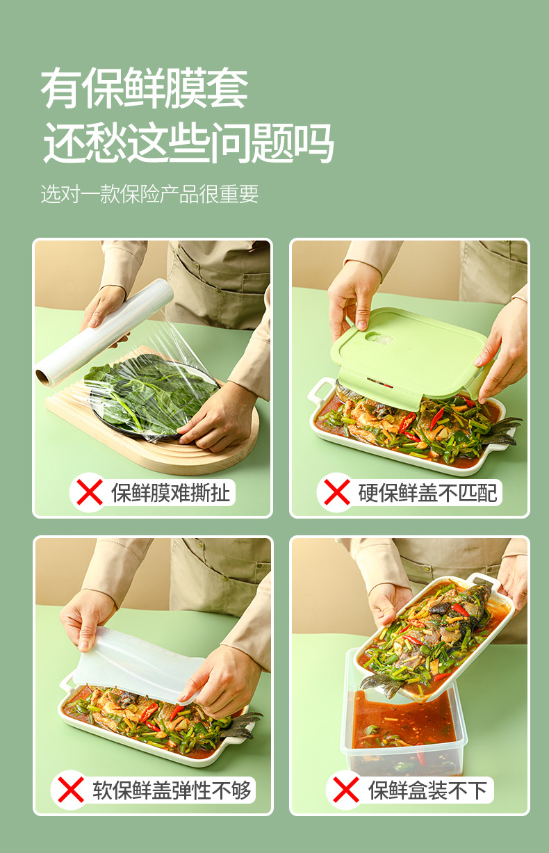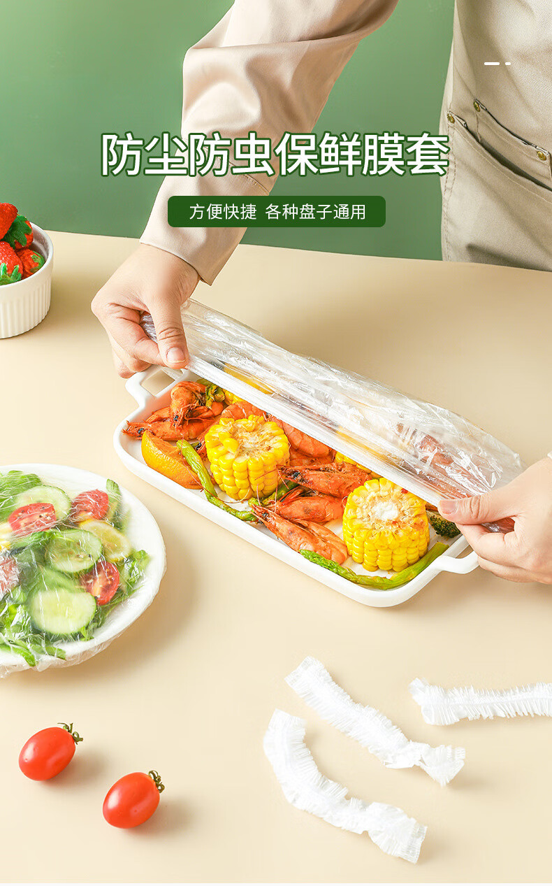Jidaocook食品级一次性保鲜膜罩套保鲜袋带松紧家用浴帽式剩菜剩饭碗盘专用 大小通用500只装加一个收纳袋 升级加厚款