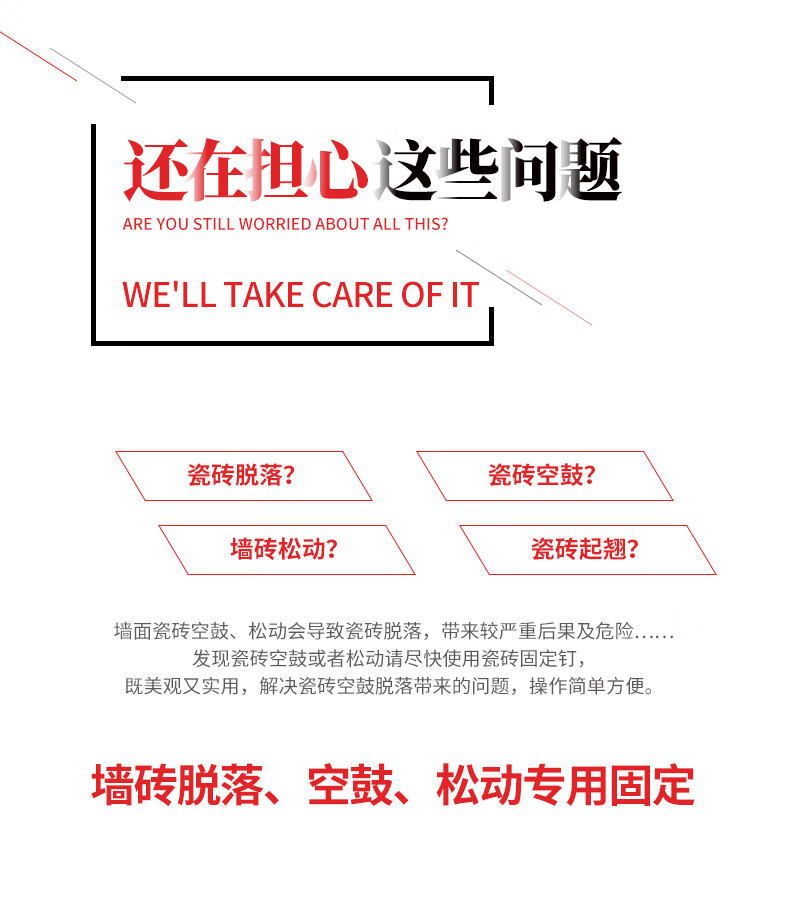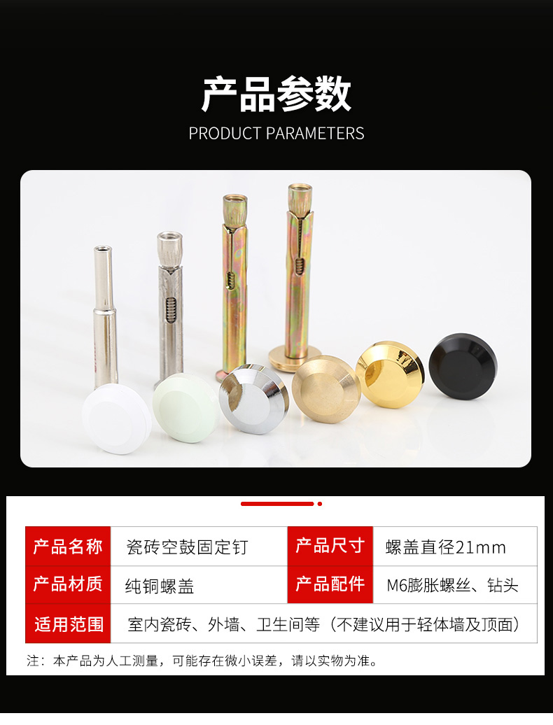 Taishilon ceramic tile hollow drum reinforcement nail tile wall tile anti-falling loose expansion screw repair reinforcement exterior wall fixed nail copper original color 5 cm long 10 sets come with ceramic tile drilling drill