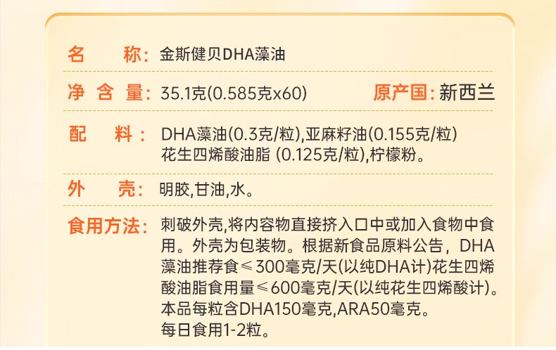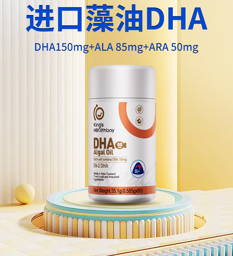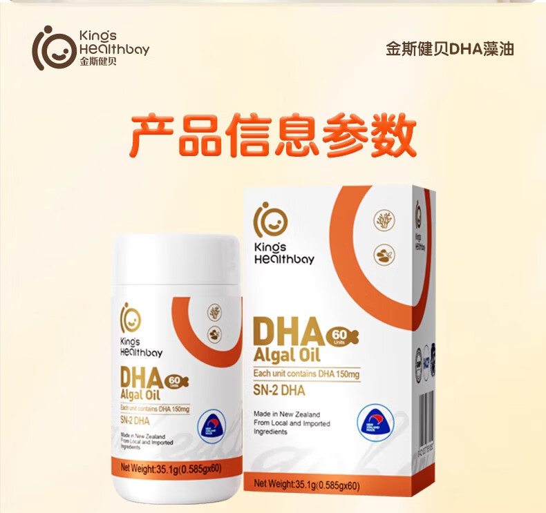 Kingskinbei DHA algae oil gel candy natural seaweed oil for babies, children, students, pregnant women, imported children's dha 60 capsules * 4 boxes DHA buy three get one free set + free lutein 1 box