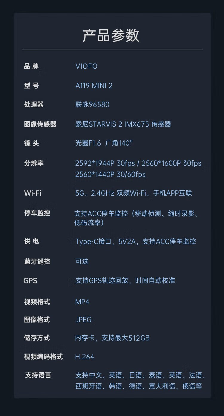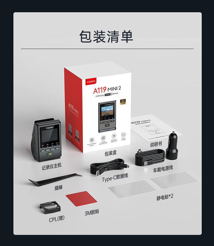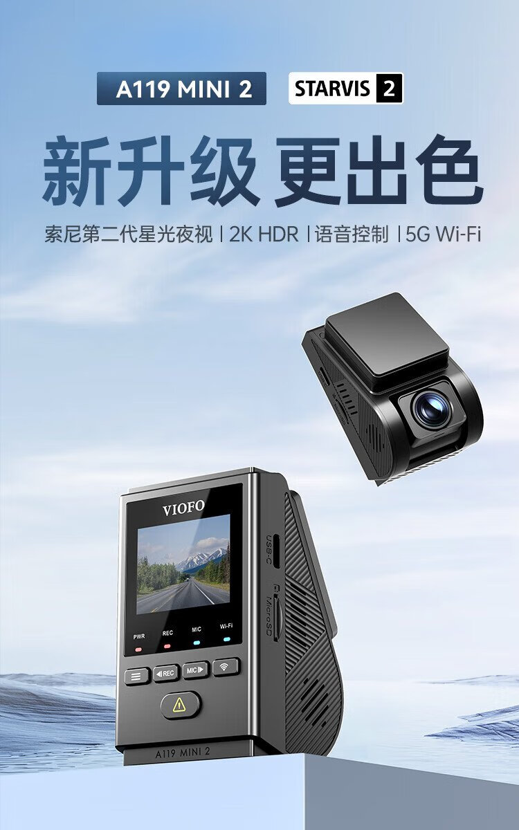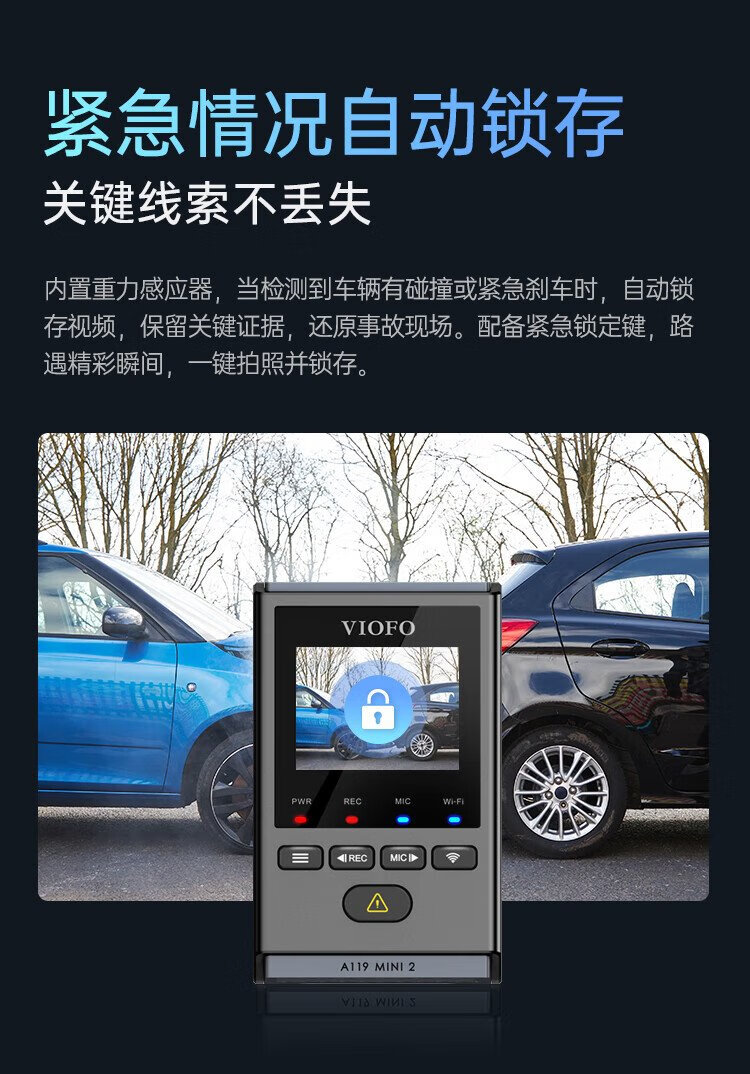 VIOFO A119Mini2 driving recorder 2.5K ultra-clear second generation starlight night vision intelligent voice WIFI parking monitoring MINI2 upgraded version standard (with CPL)