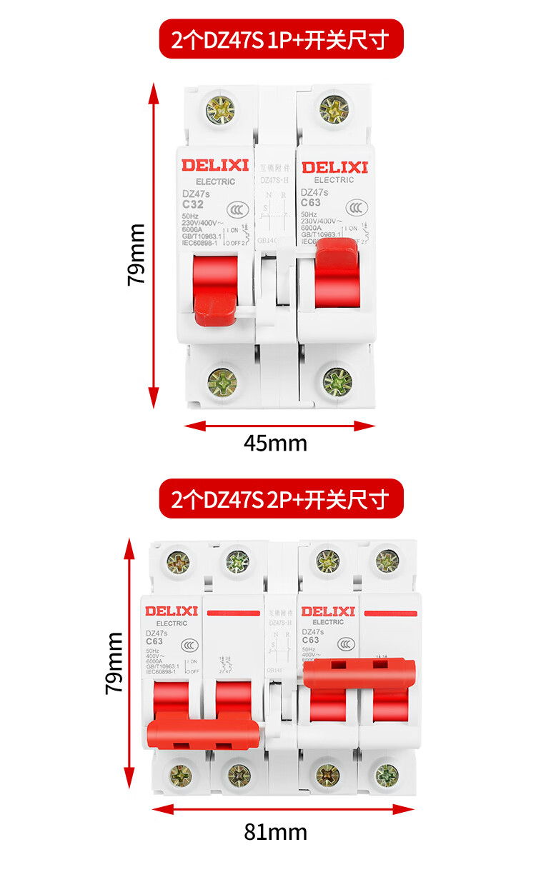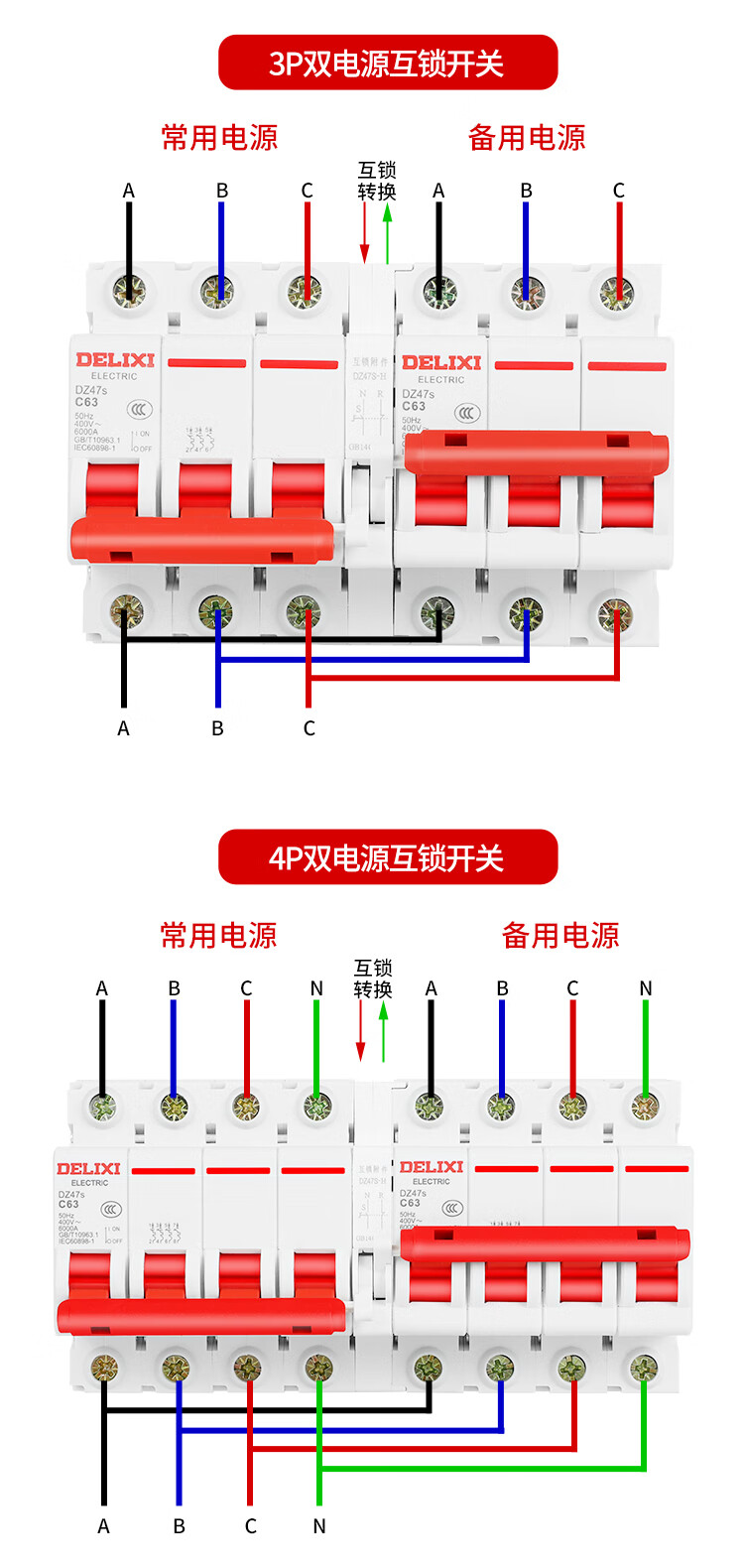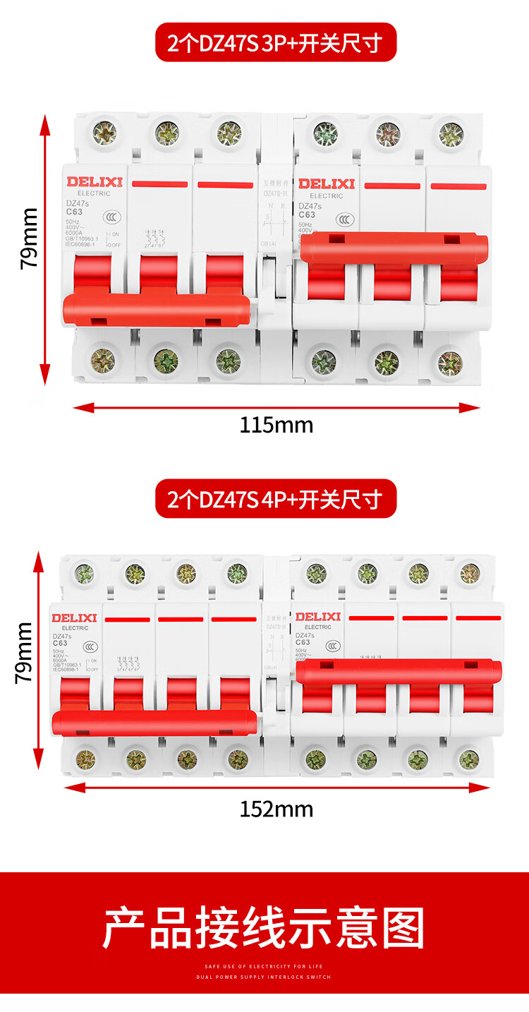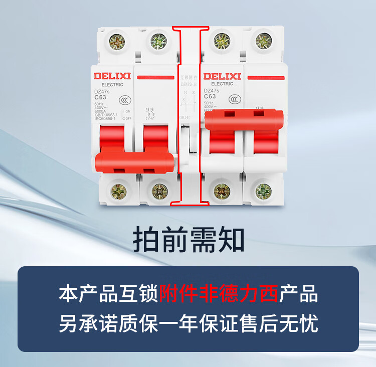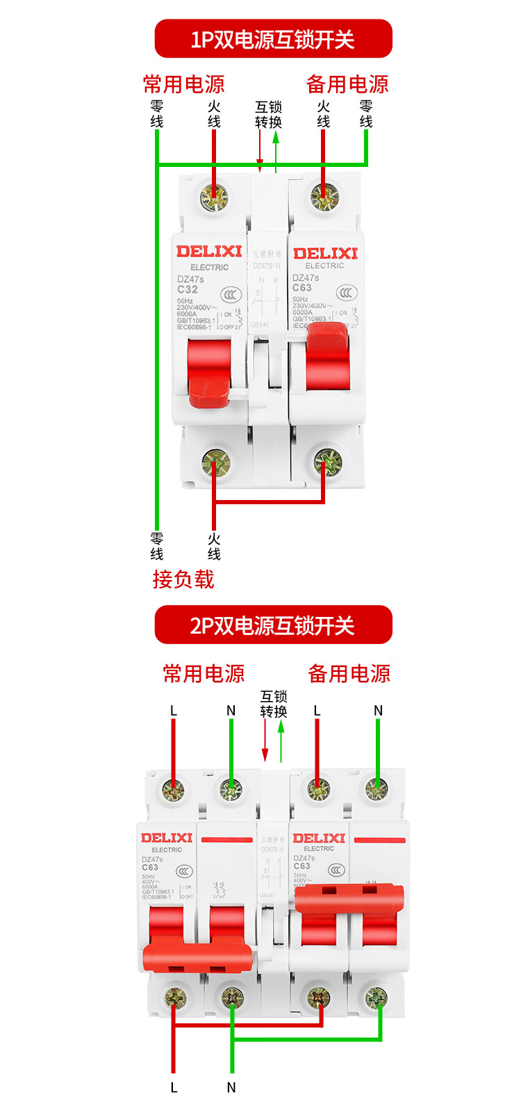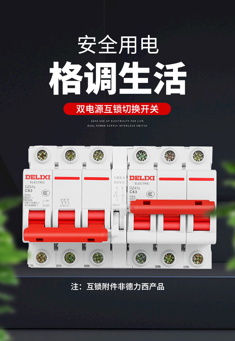 Delixi interlocking conversion circuit breaker dual power supply two-way manual switching controller air switch 220V switch air 63A 2P