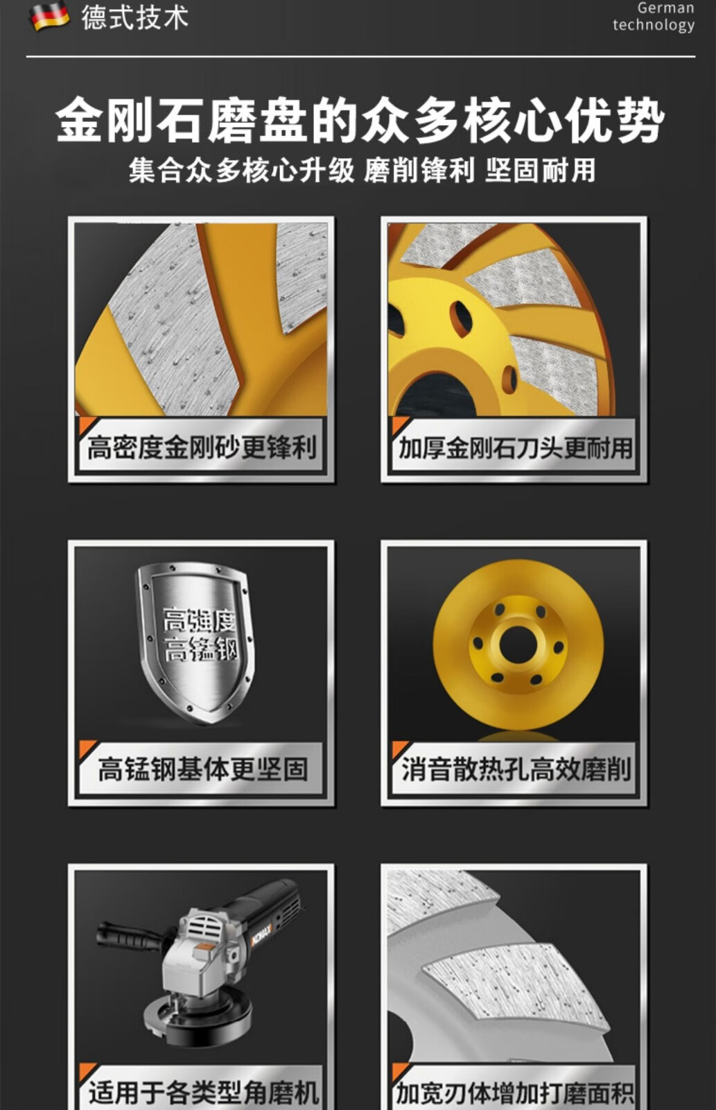 HANSCH diamond grinding disc stone polishing disc cement floor concrete marble dry grinding water grinding disc sponge sticky disc 150mm industrial grade thickened diamond disc 6 inches
