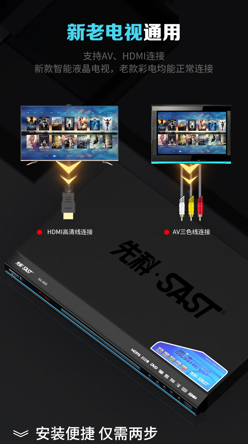 SAST Home Video Disc Player DVD Player CD High Definition Playback EVD Children's Disc Movie Disc Player Mobile TV VCD Player Standard Edition Standard Configuration