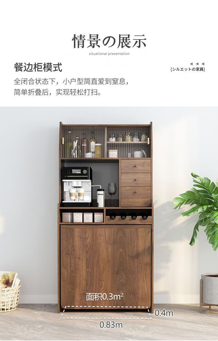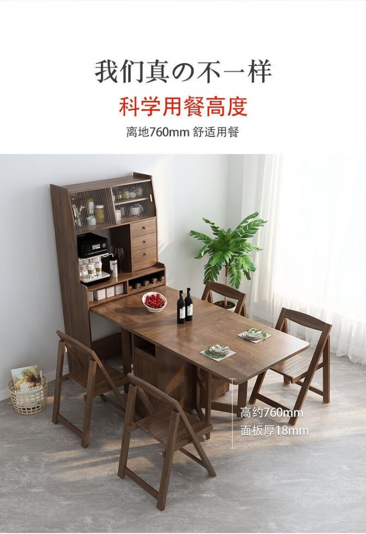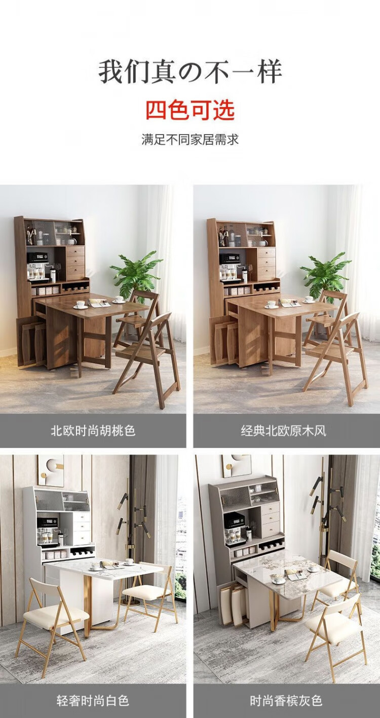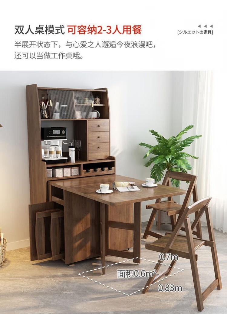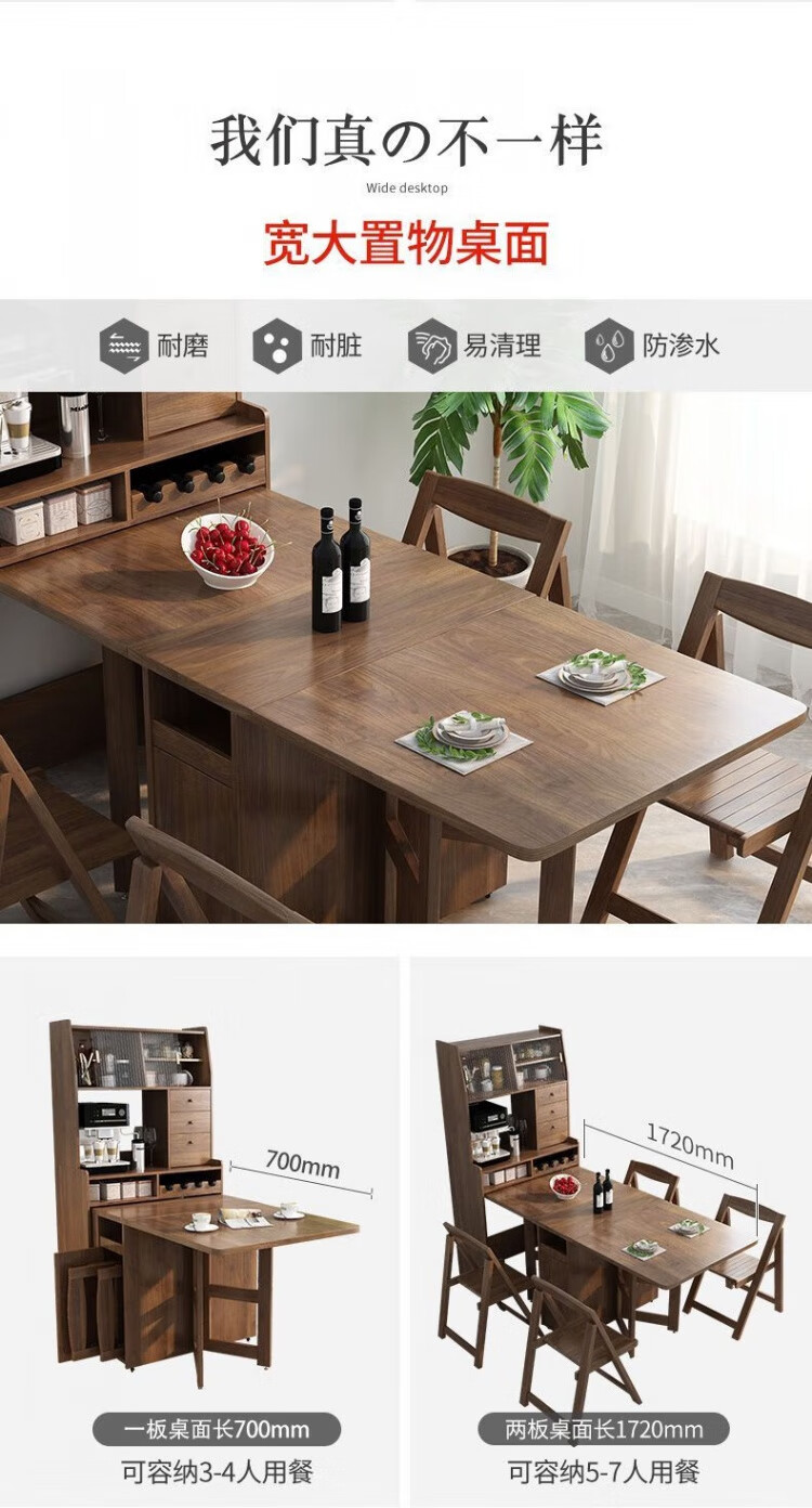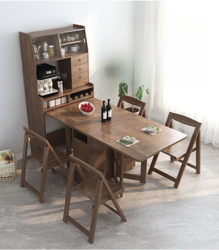 Ruffman dining table, sideboard and chair combination, multifunctional, foldable and retractable, small household Japanese-style solid wood table, walnut dining table and cabinet, solid wood