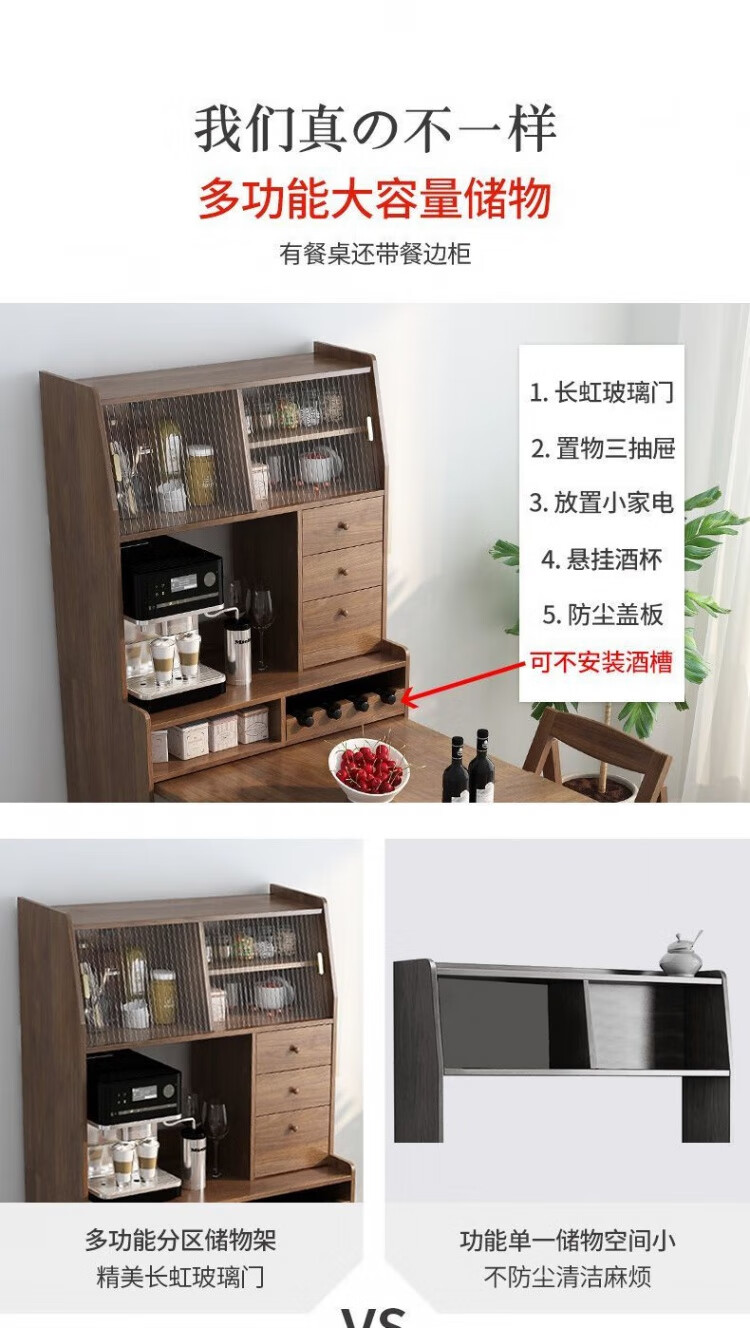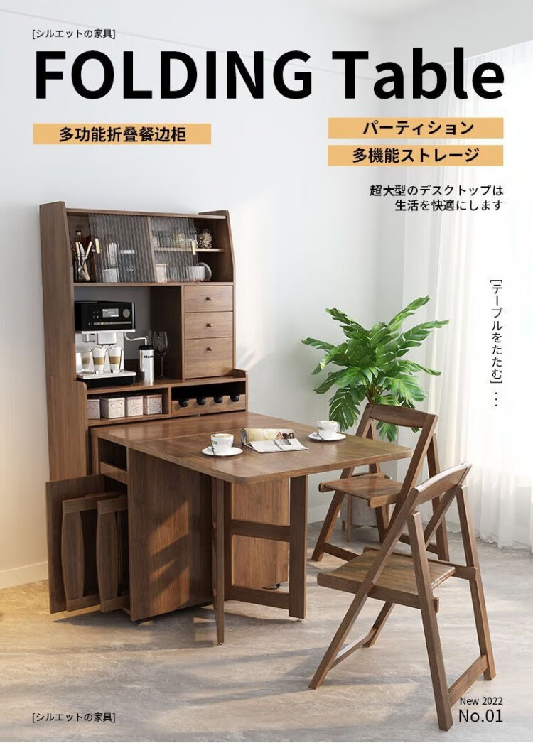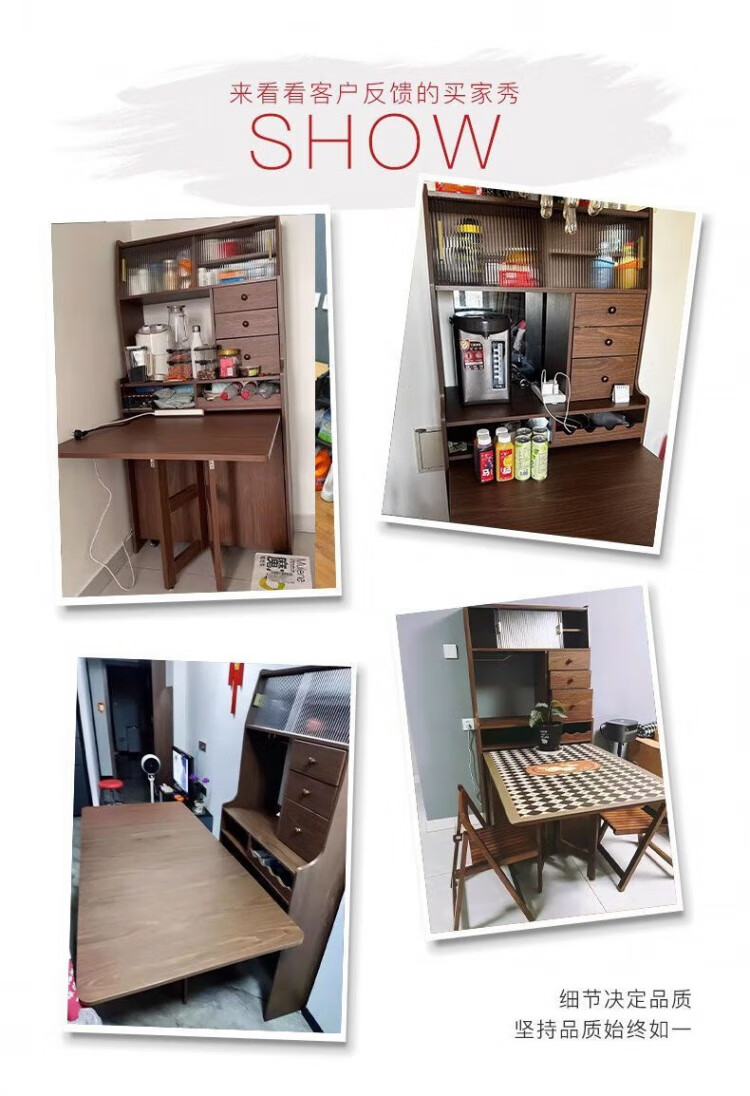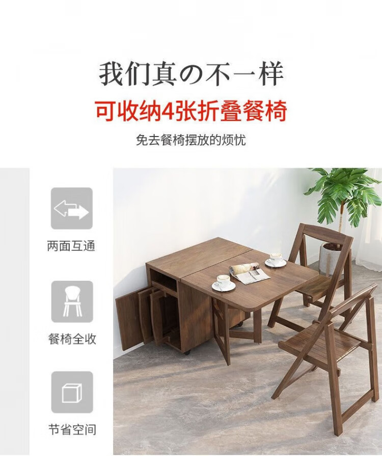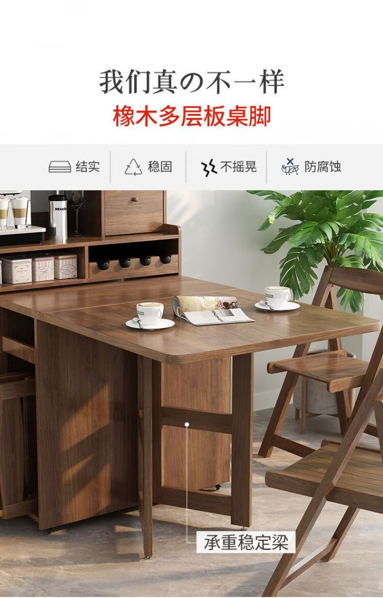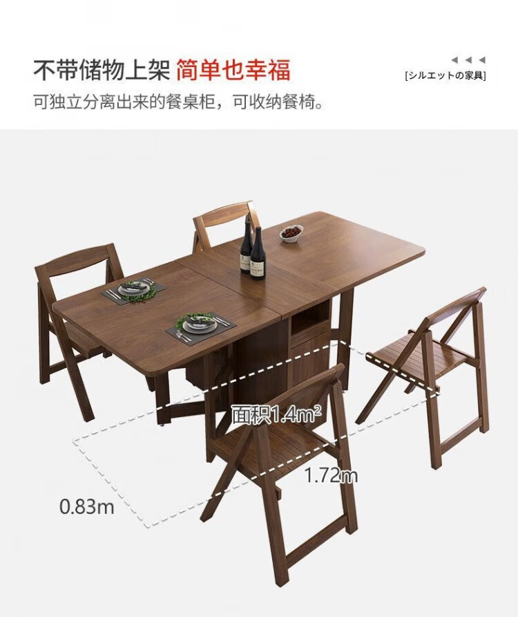Ruffman dining table, sideboard and chair combination, multifunctional, foldable and retractable, small household Japanese-style solid wood table, walnut dining table and cabinet, solid wood
