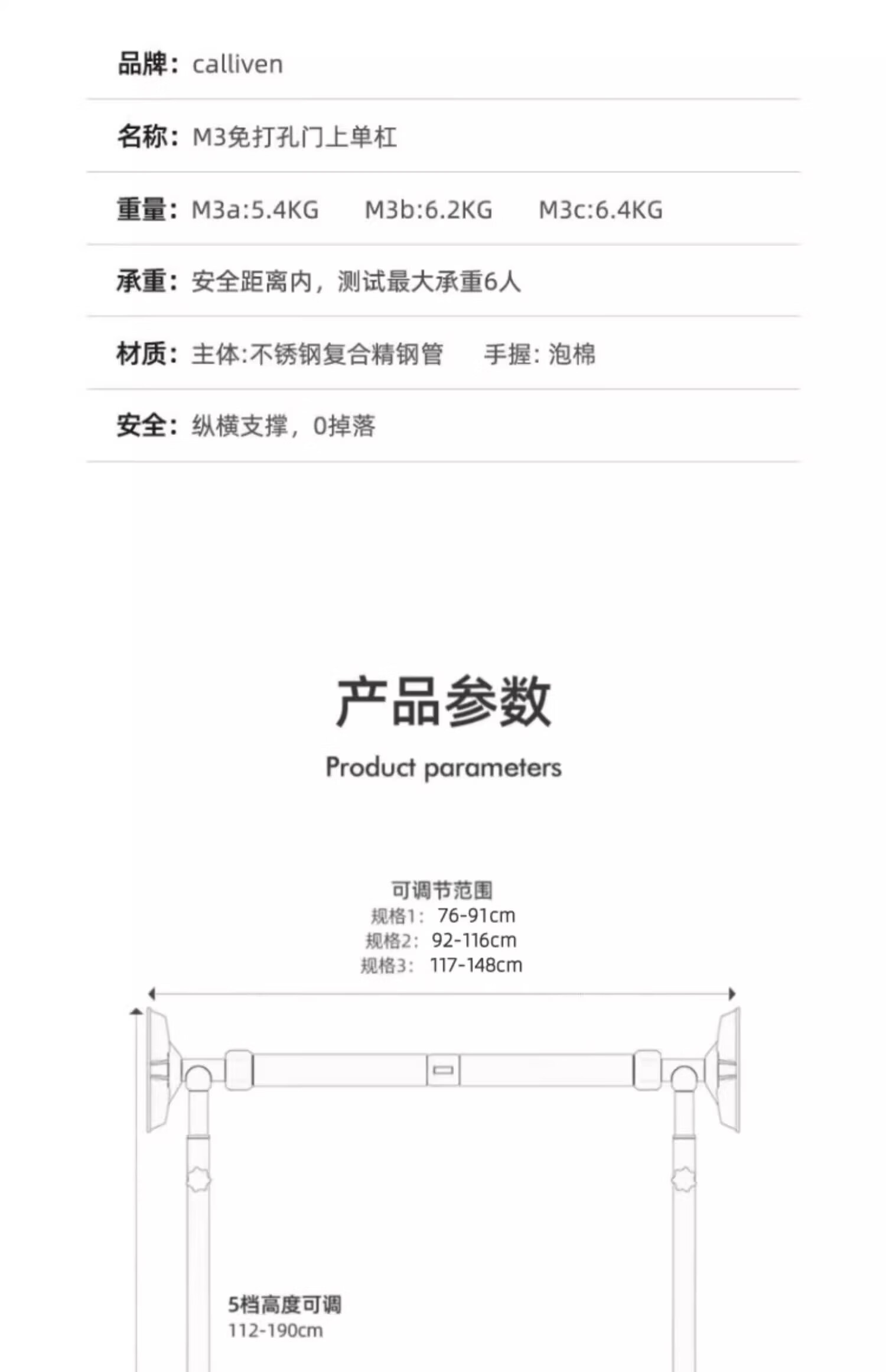 CALLIVEN horizontal bar home indoor pull-up device home door horizontal bar punch-free floor-standing adult stretching fitness equipment M3a horizontal bar + booster belt