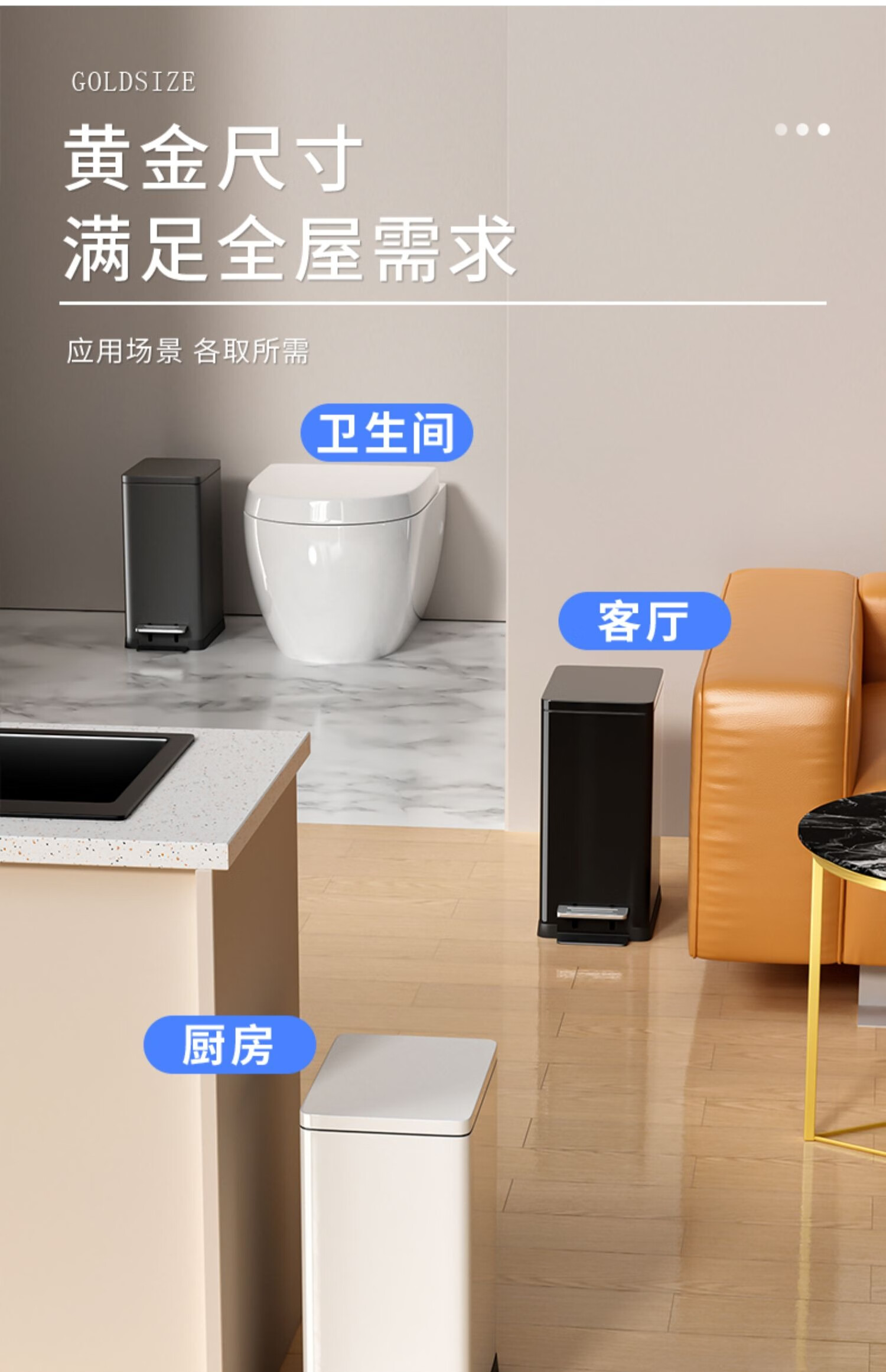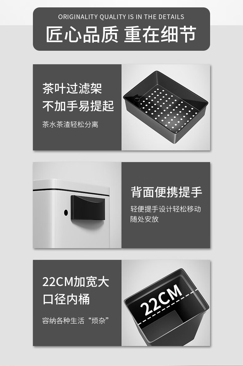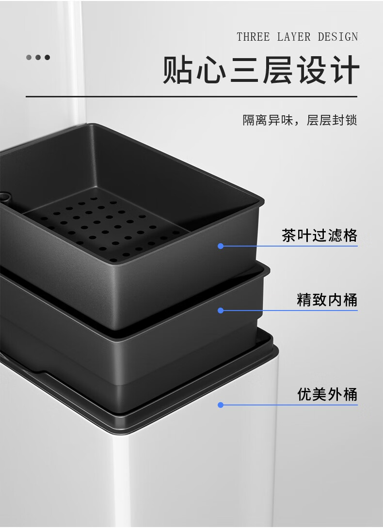 Little lazy cat trash can tea bucket home living room kitchen tea residue light luxury foot-operated square bathroom toilet office 15L gun gray with tea drain