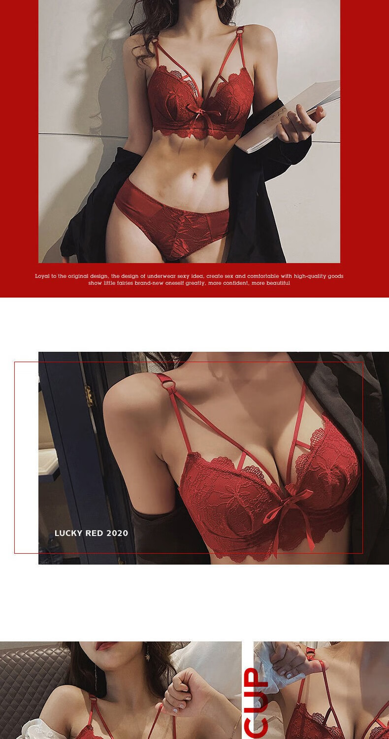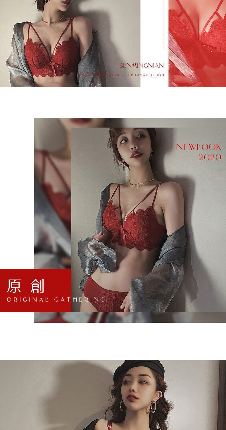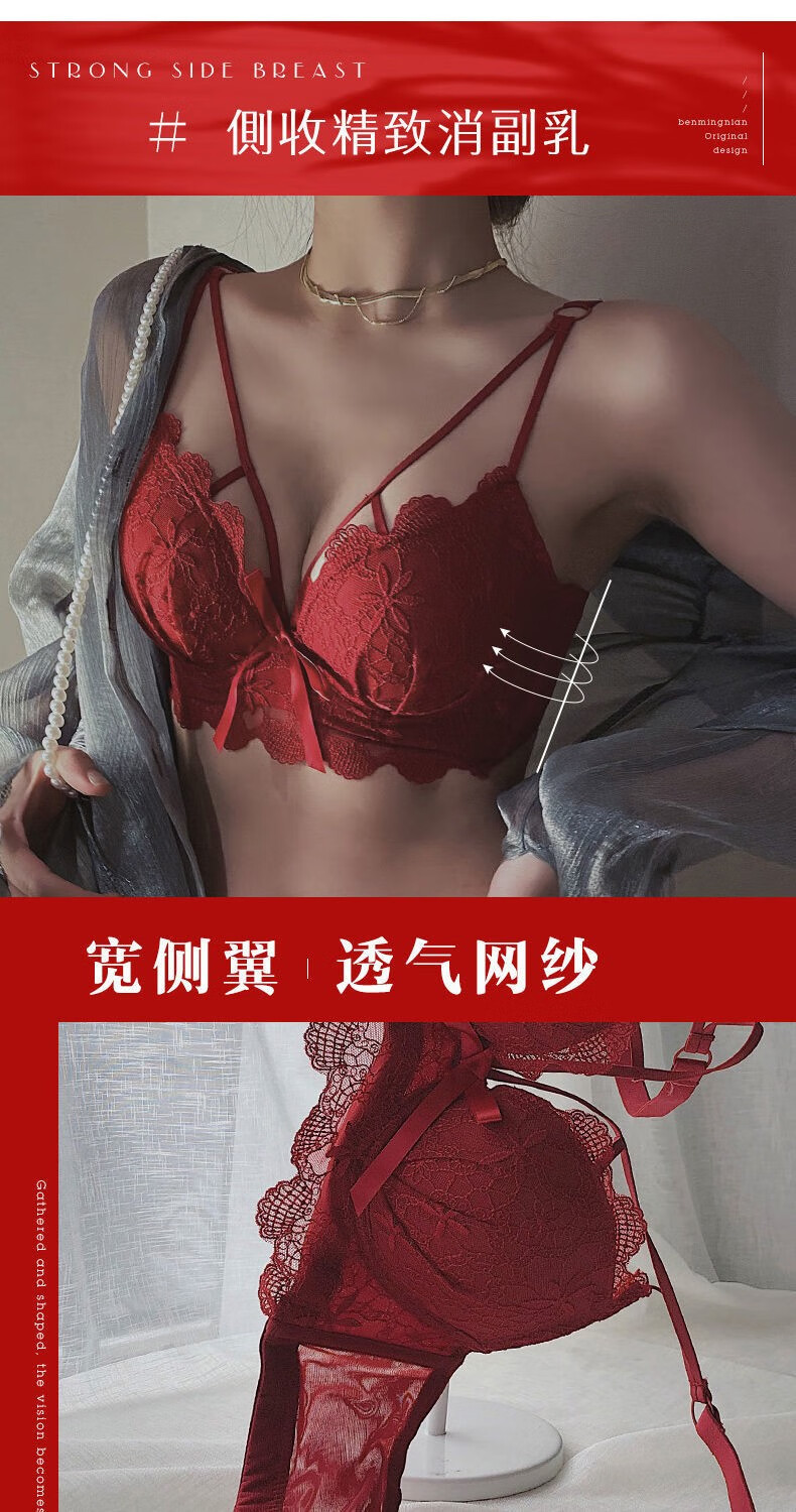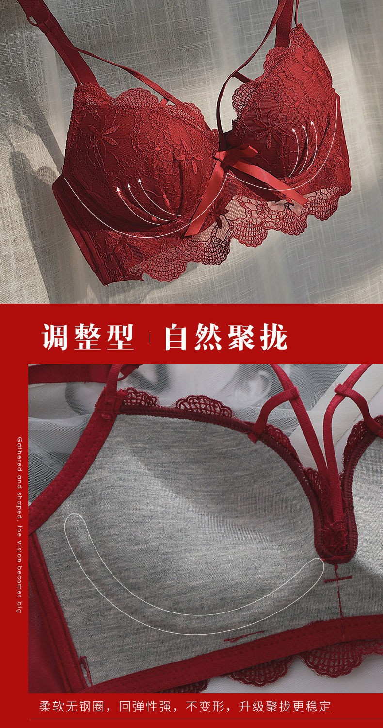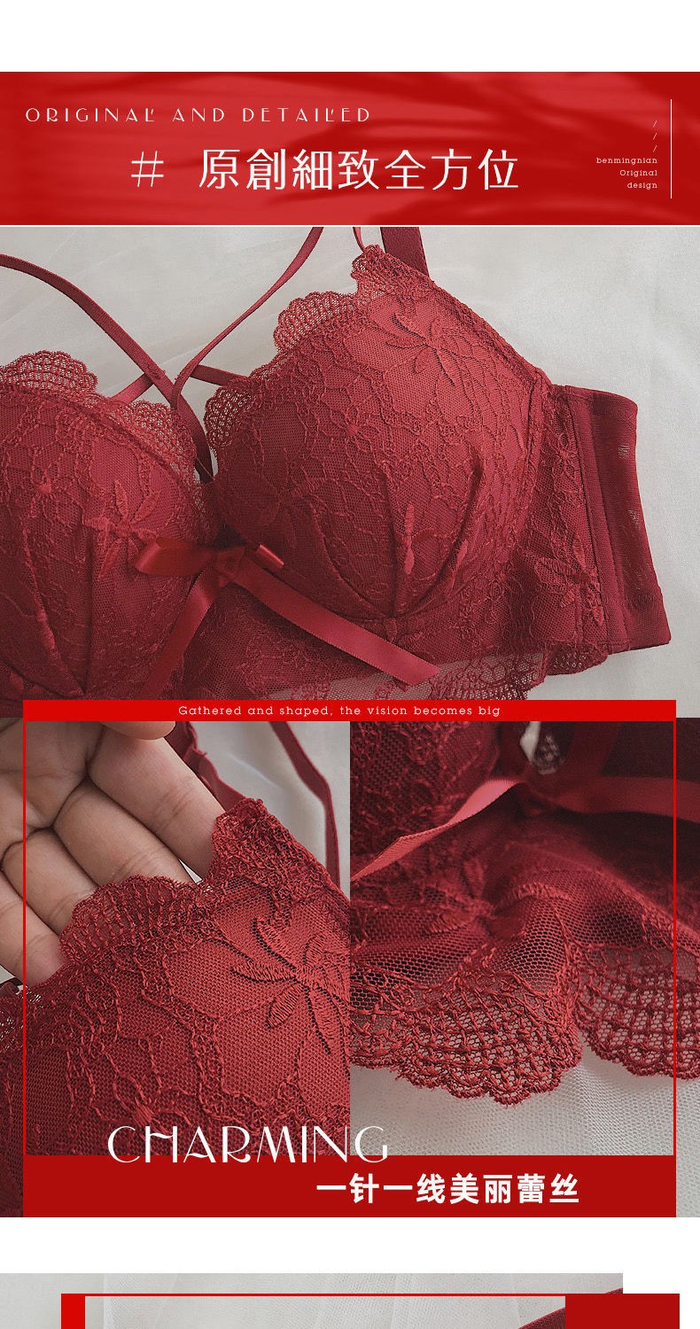 Youyumeng Wireless Bra Set Zodiac Year of the Snake Red Bra Small Breast Gathering Lace Adjustable Bra for Women Red Set (Bra + Underwear) 36/80AB Small Breasts Thick Cup