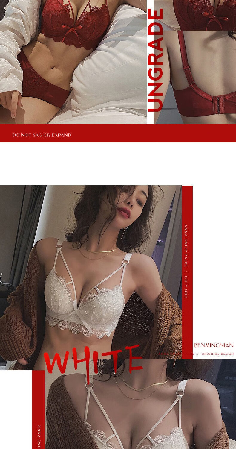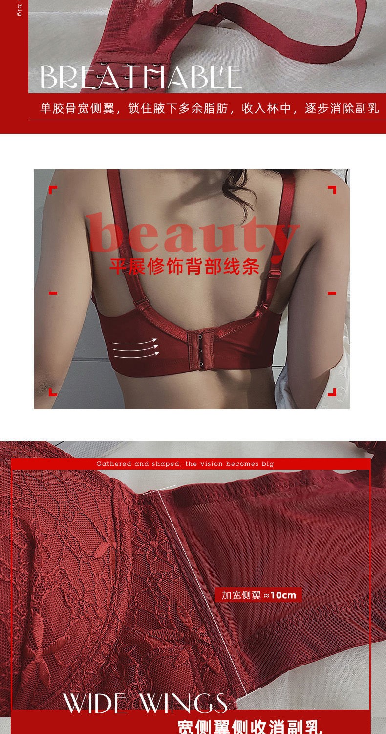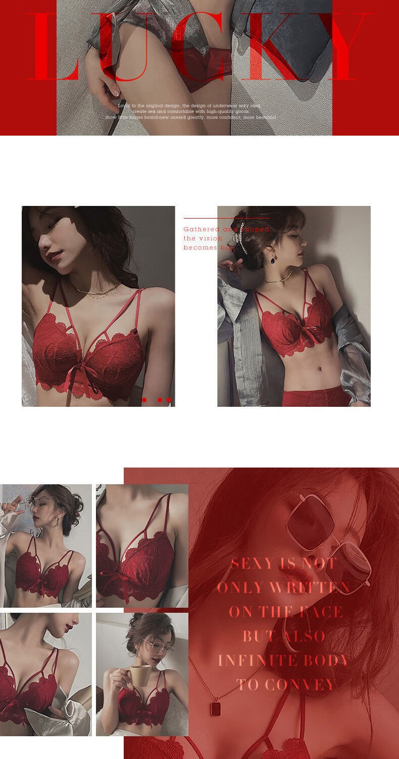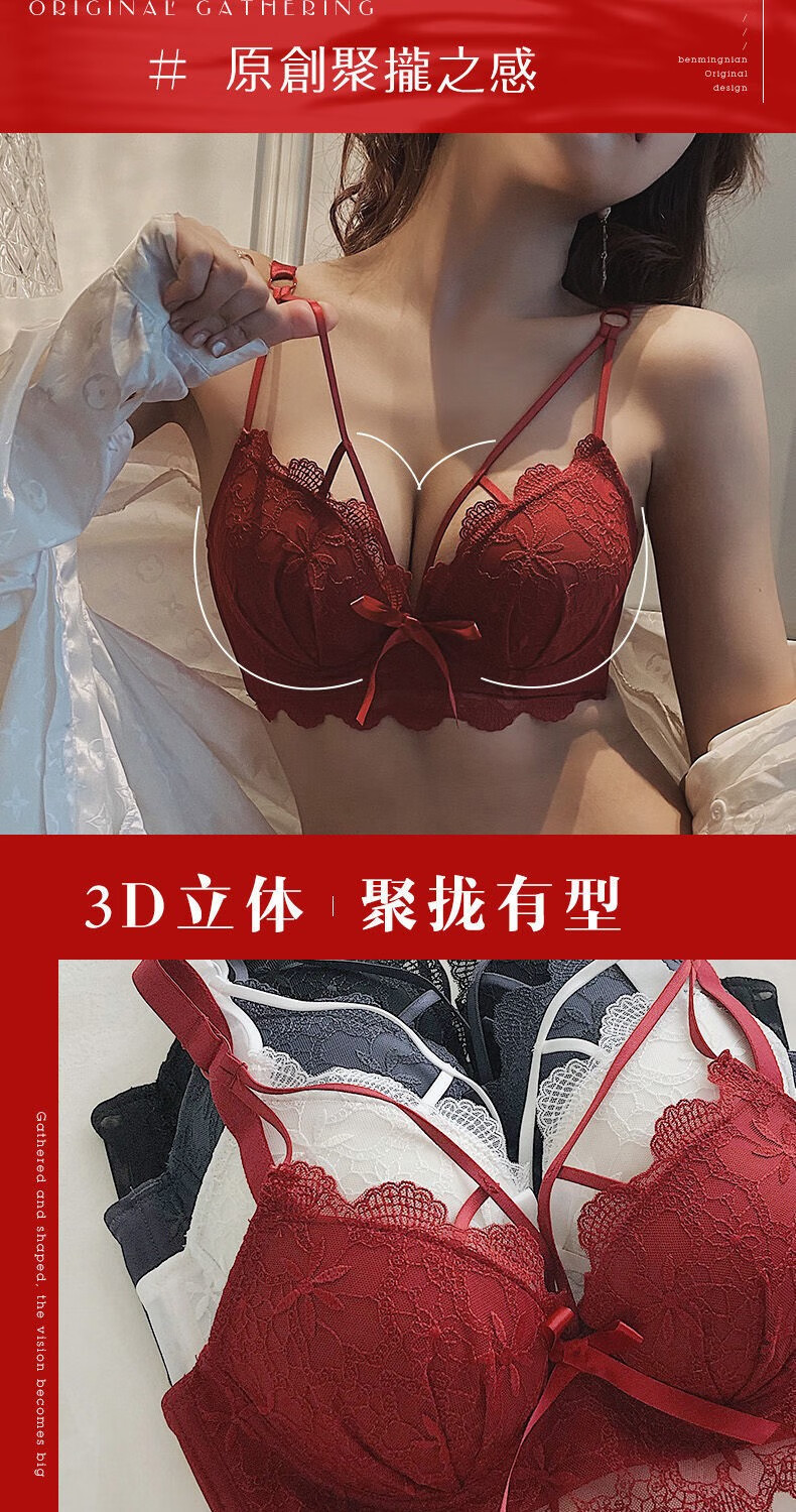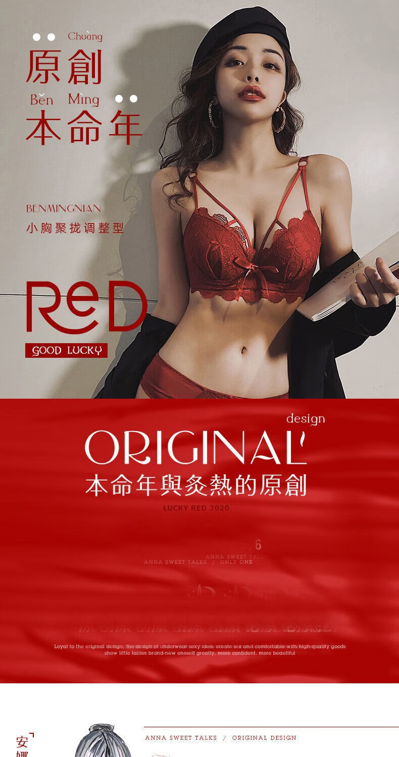 Youyumeng Wireless Bra Set Zodiac Year of the Snake Red Bra Small Breast Gathering Lace Adjustable Bra for Women Red Set (Bra + Underwear) 36/80AB Small Breasts Thick Cup