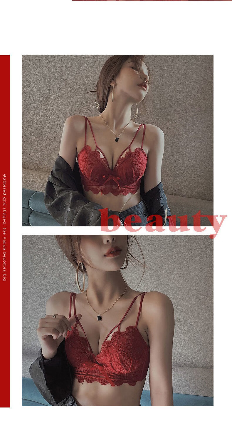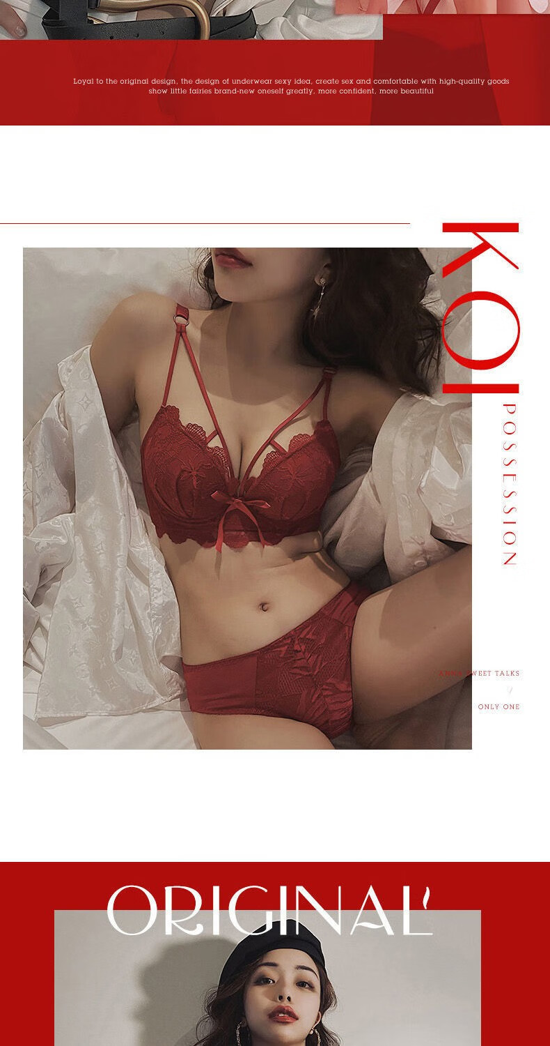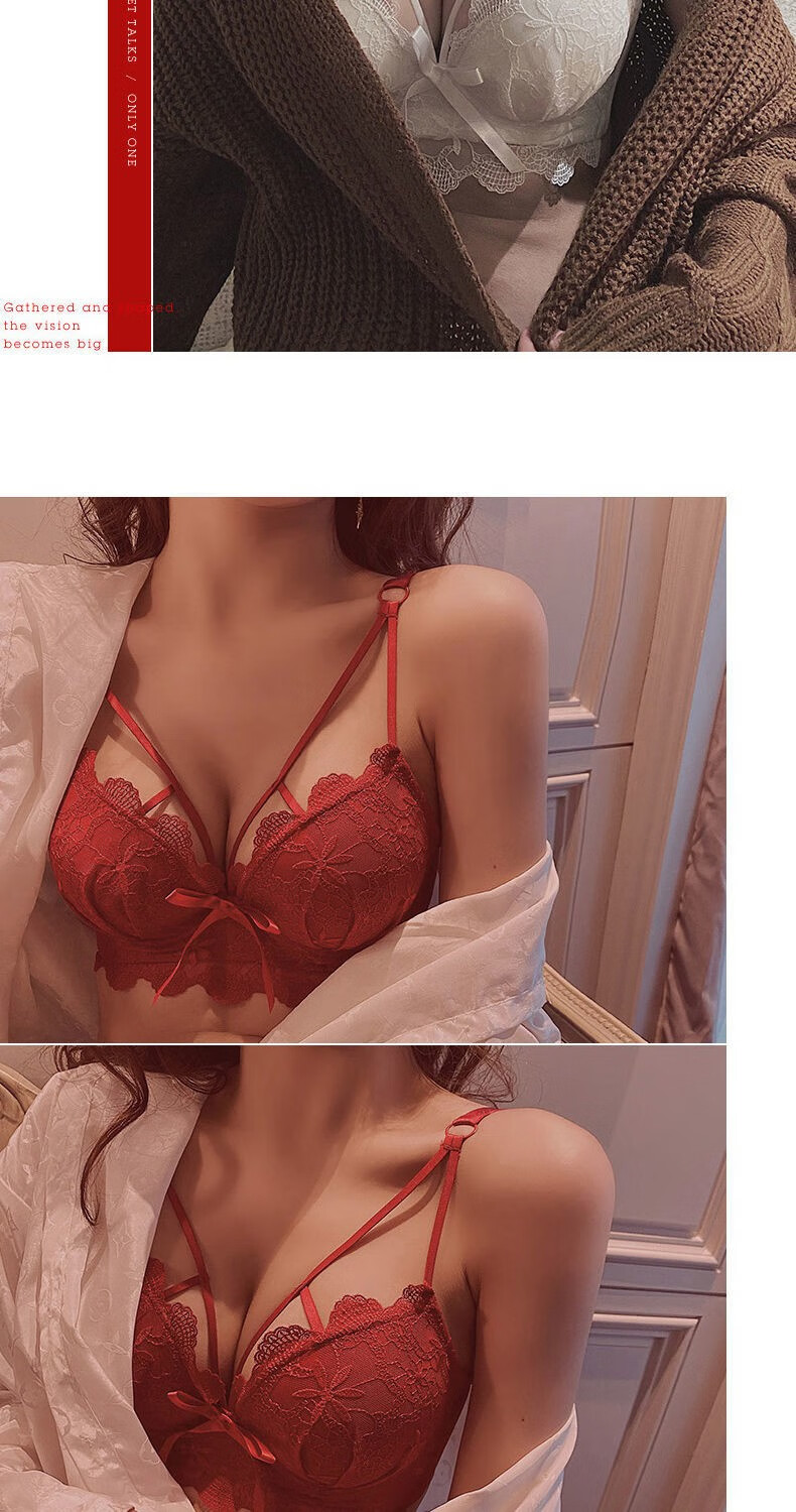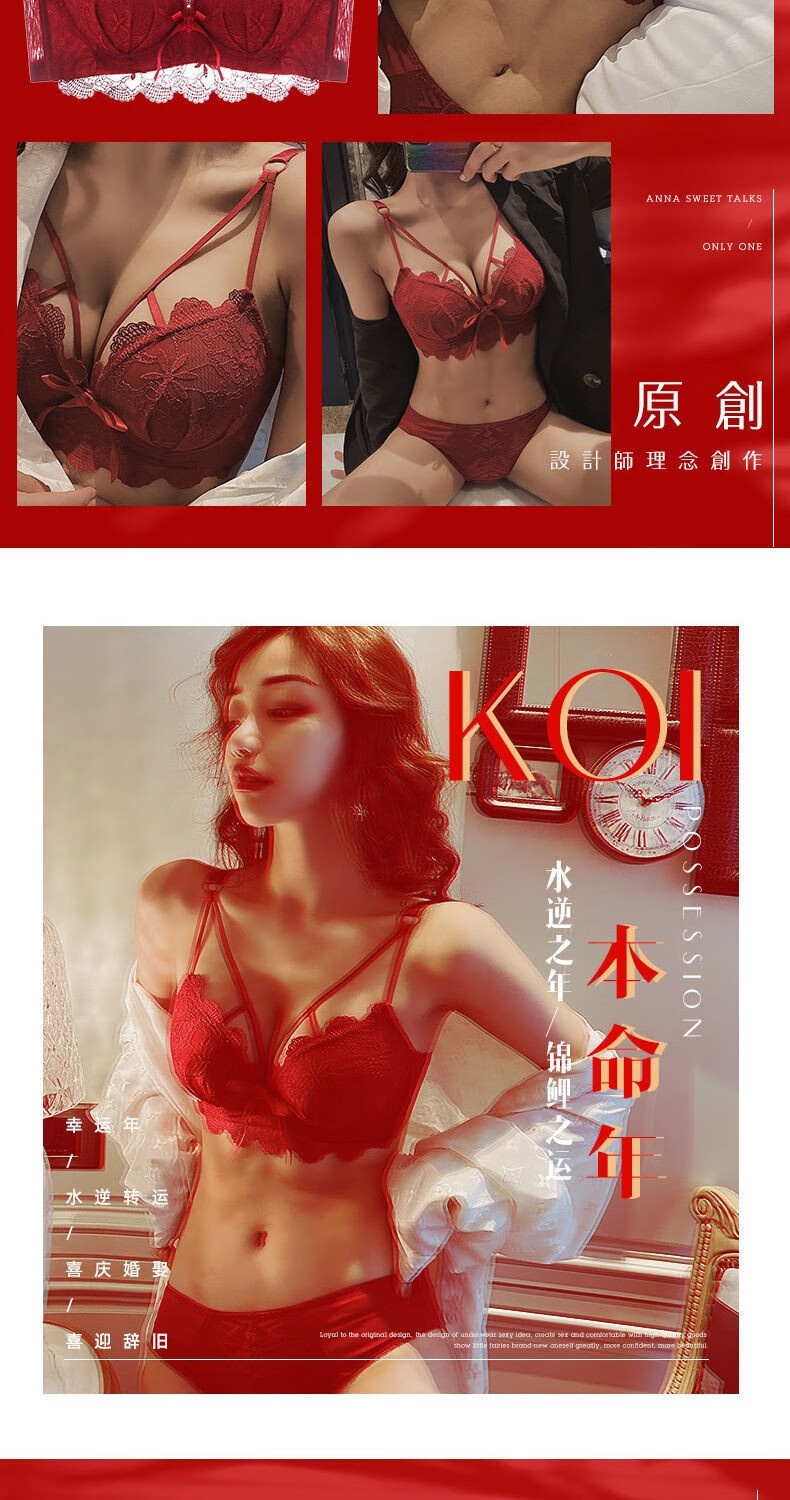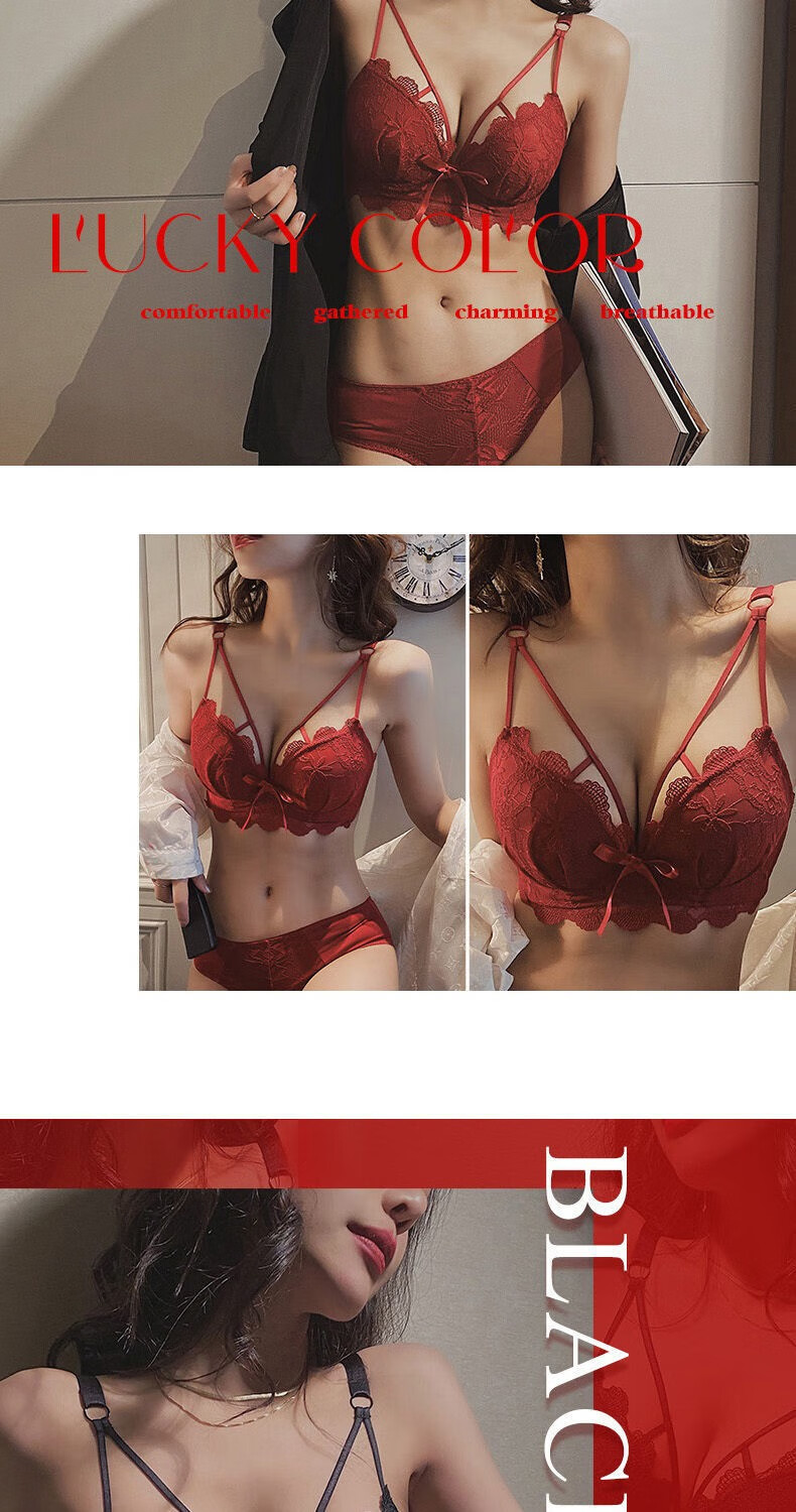 Youyumeng Wireless Bra Set Zodiac Year of the Snake Red Bra Small Breast Gathering Lace Adjustable Bra for Women Red Set (Bra + Underwear) 36/80AB Small Breasts Thick Cup