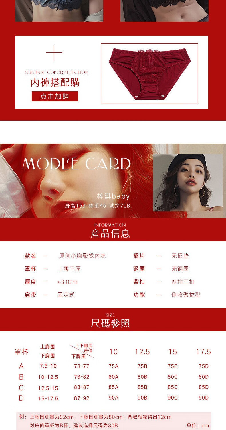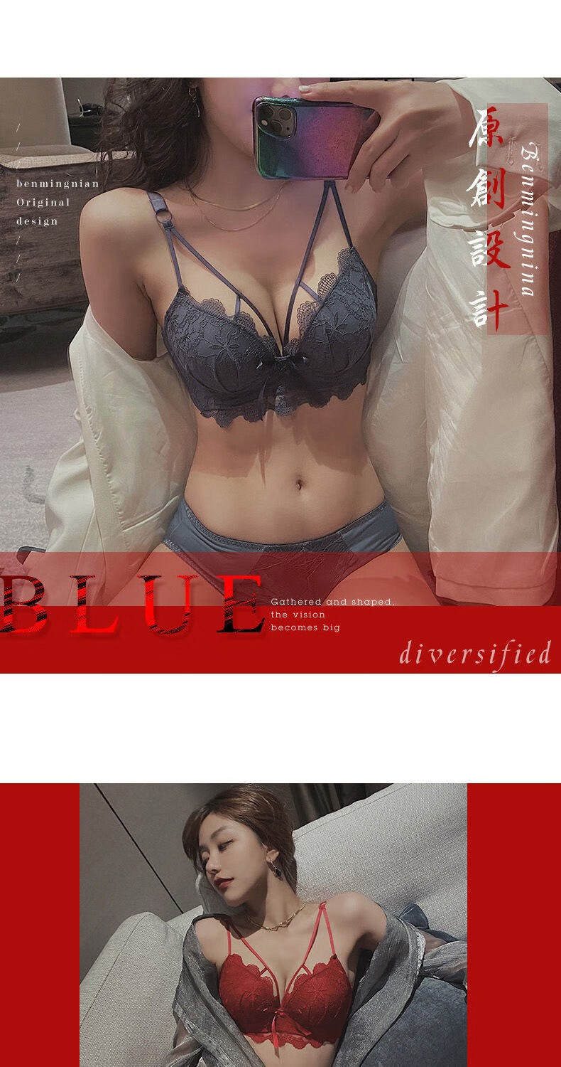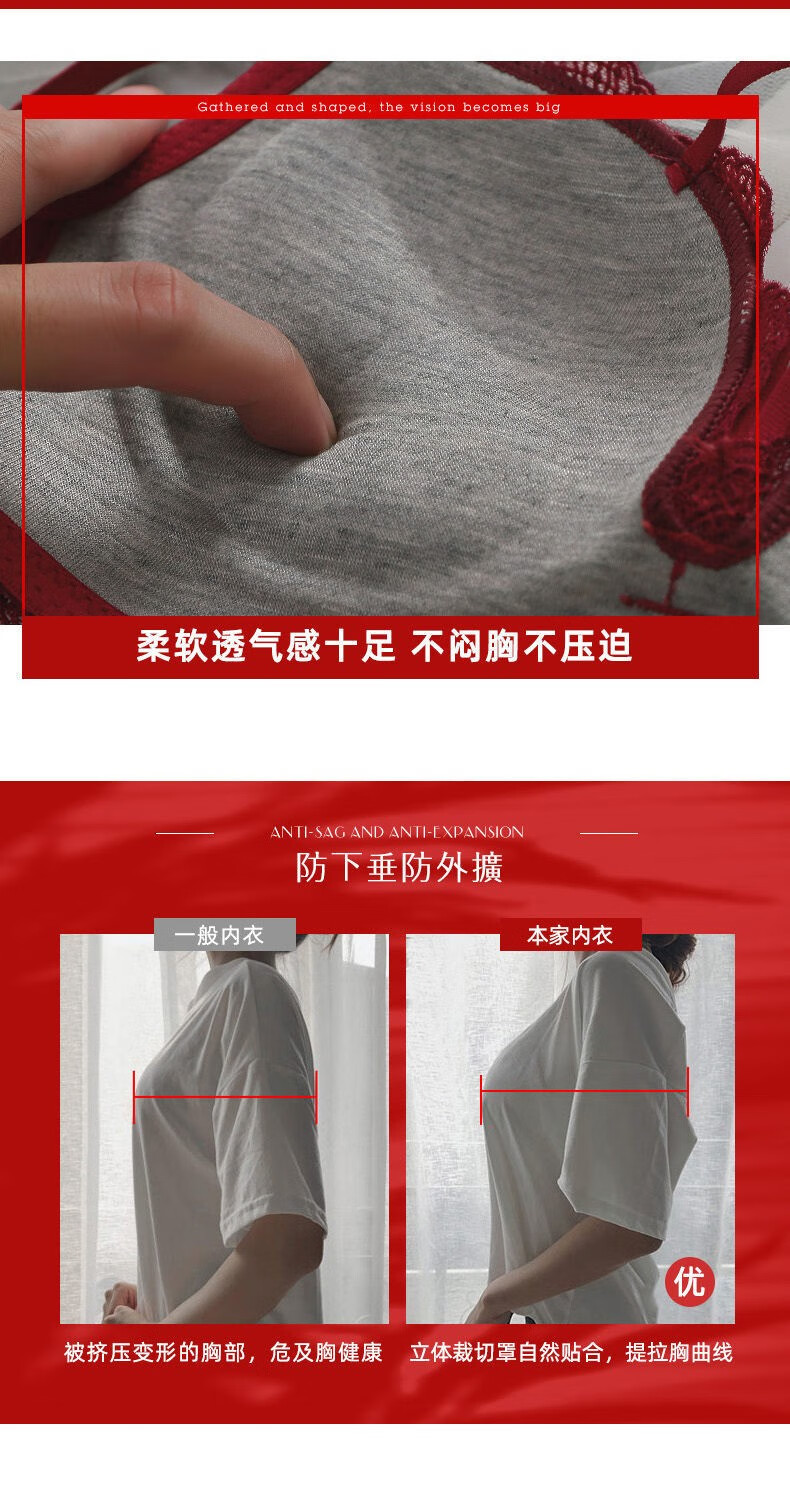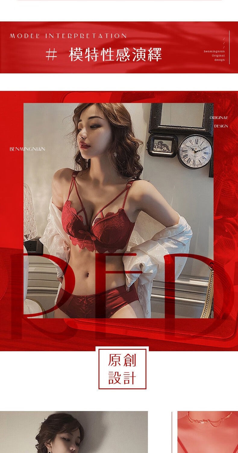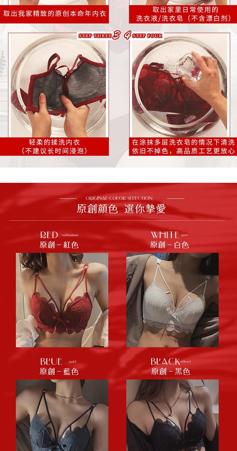 Youyumeng Wireless Bra Set Zodiac Year of the Snake Red Bra Small Breast Gathering Lace Adjustable Bra for Women Red Set (Bra + Underwear) 36/80AB Small Breasts Thick Cup