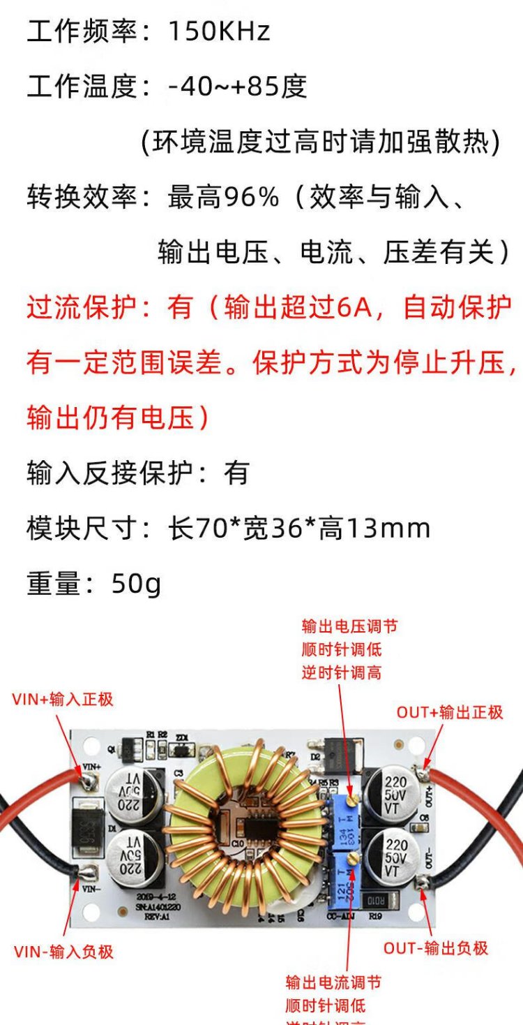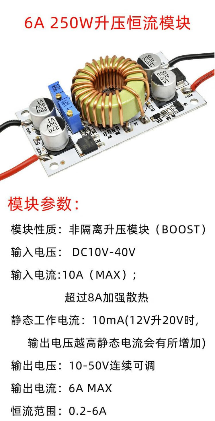 Aluminum substrate 6A10A high power 500W boost power supply module constant voltage and constant current 9V12V to 24V36V boost board 6A 250W boost constant current module