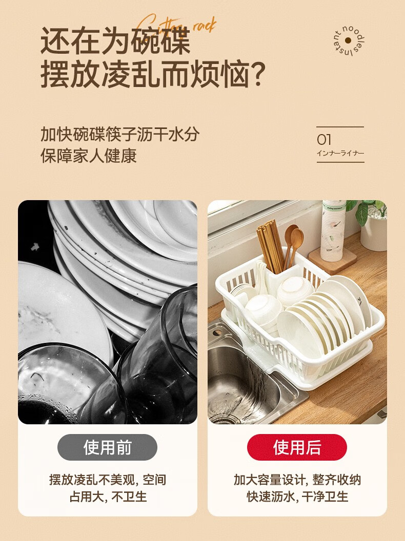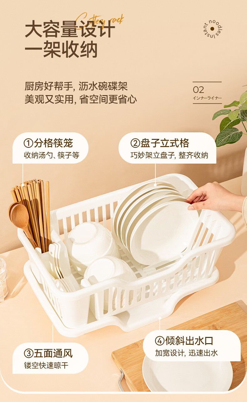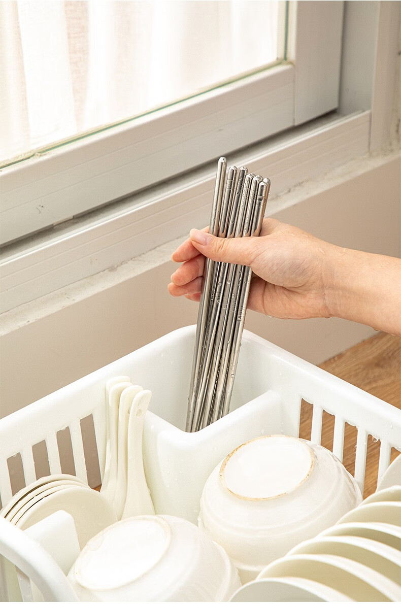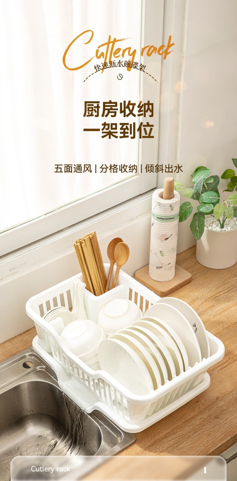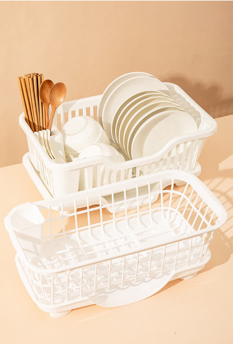 WORTHBUY cupboard, bowl and chopsticks storage box, cupboard, dish drainer, kitchen rack, storage rack, drain basket, plastic storage basket, white - small size
