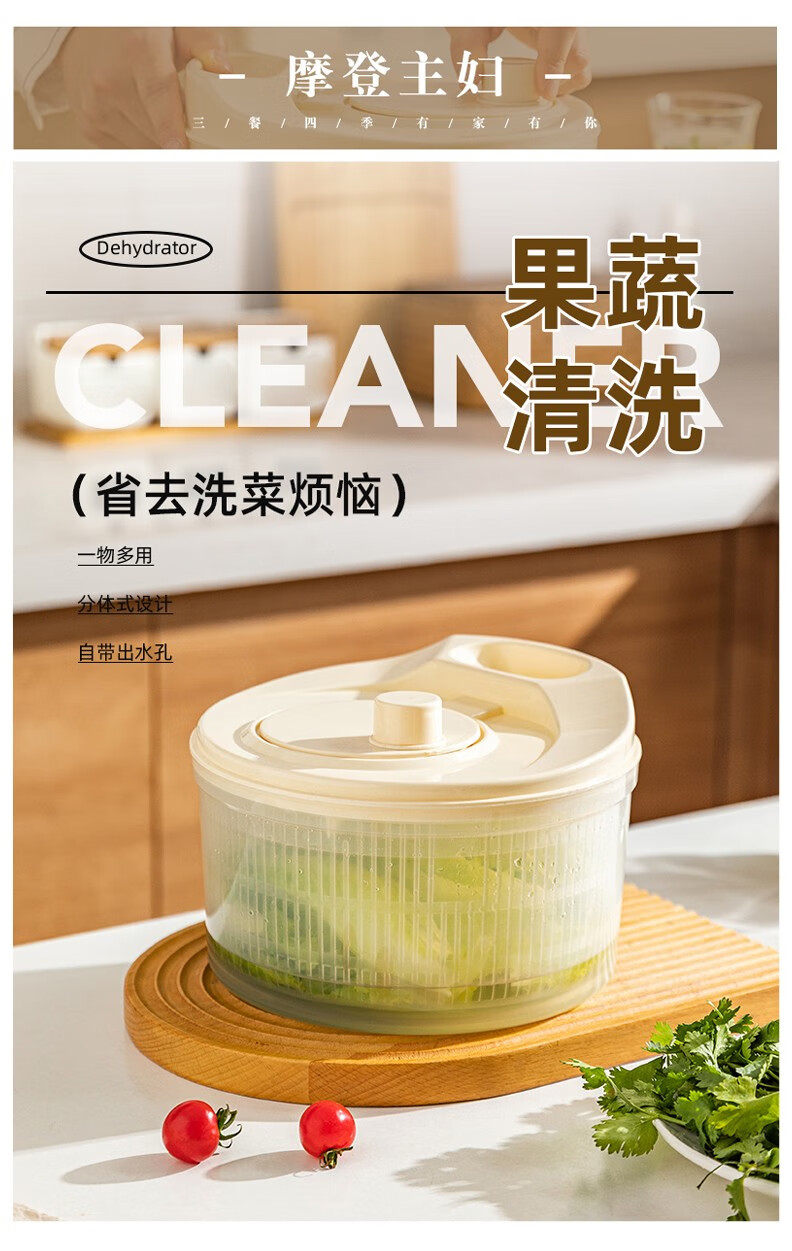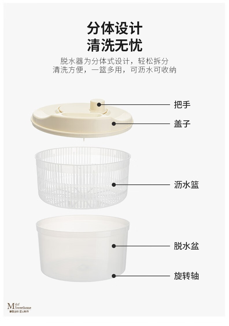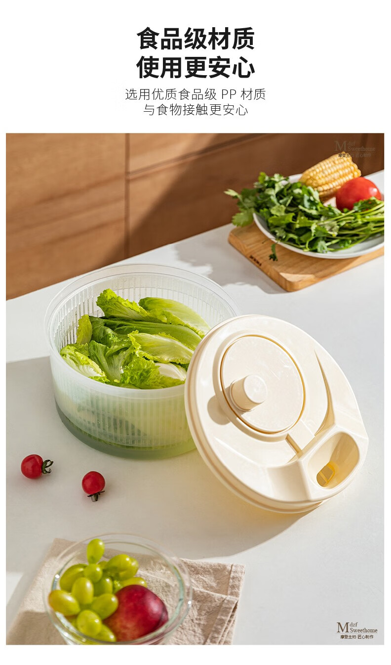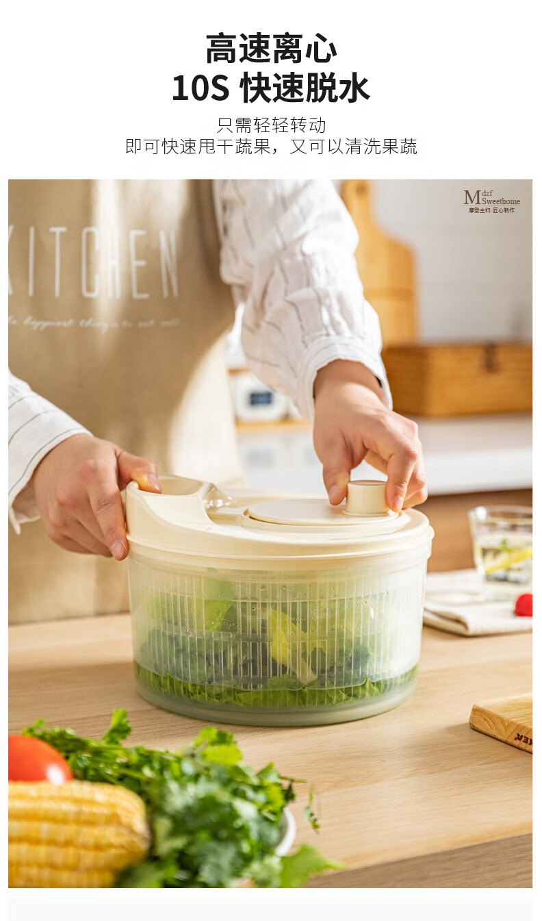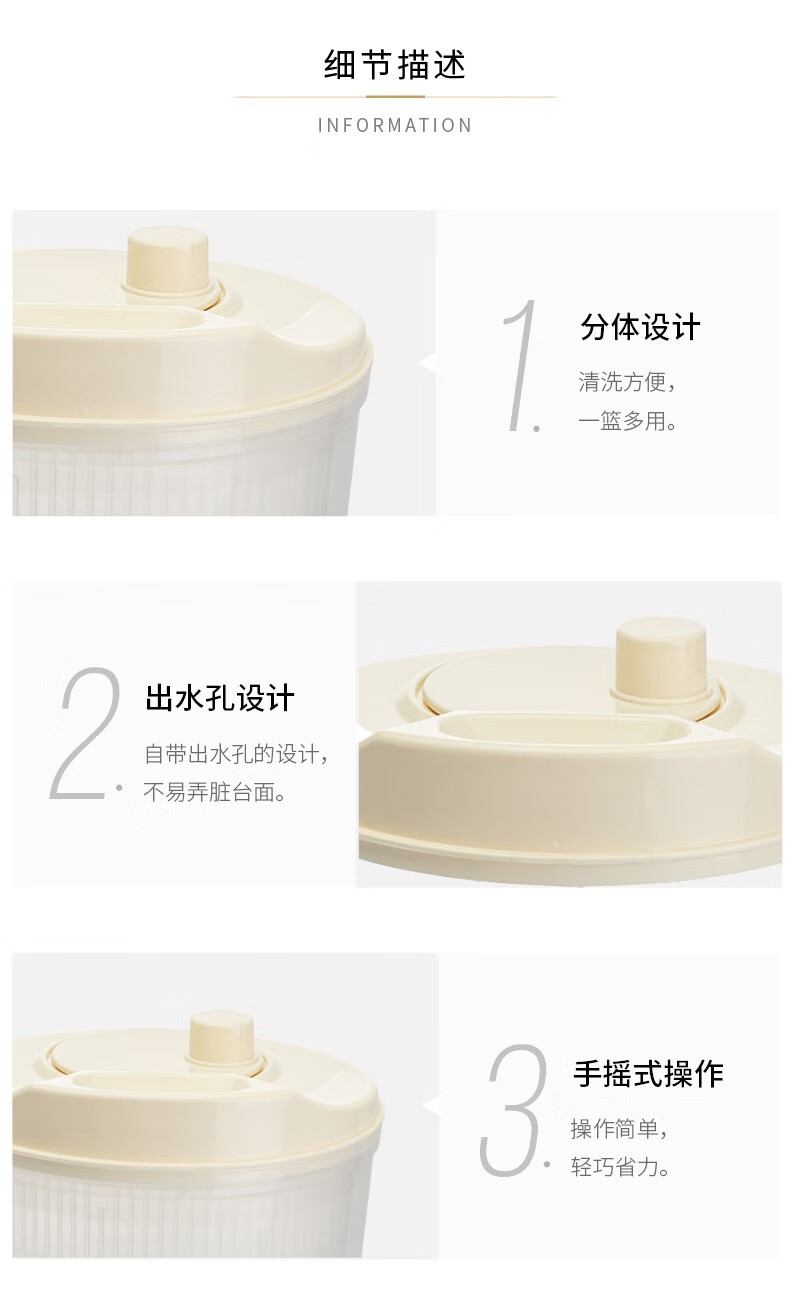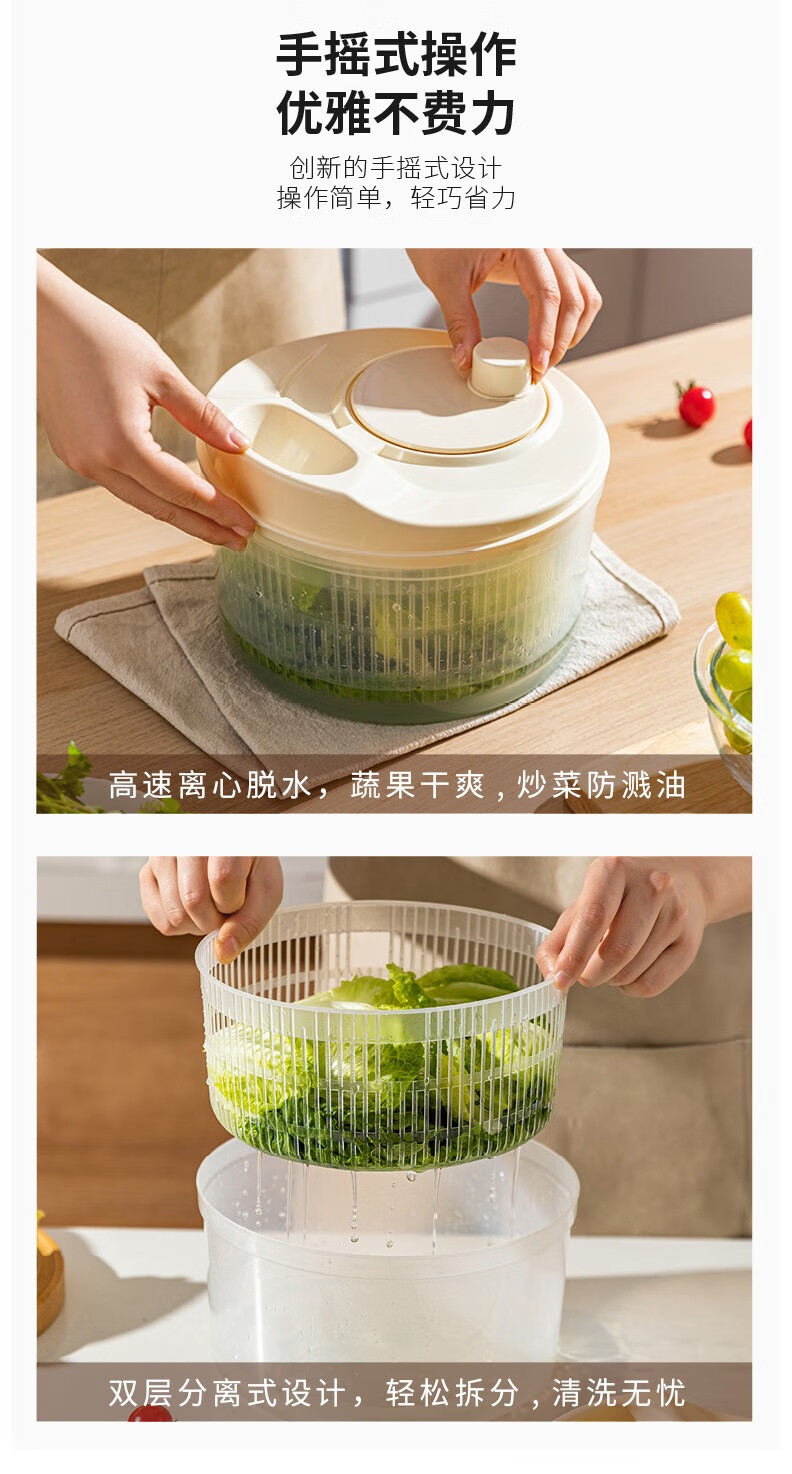 Modern housewife vegetable dehydrator household manual salad spinner vegetable basket kitchen spin dryer vegetable washing and draining artifact vegetable dehydrator - cream white