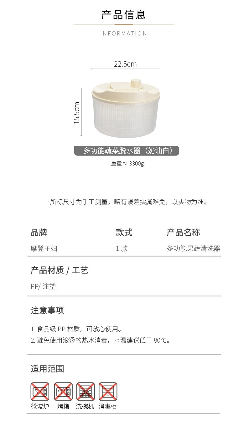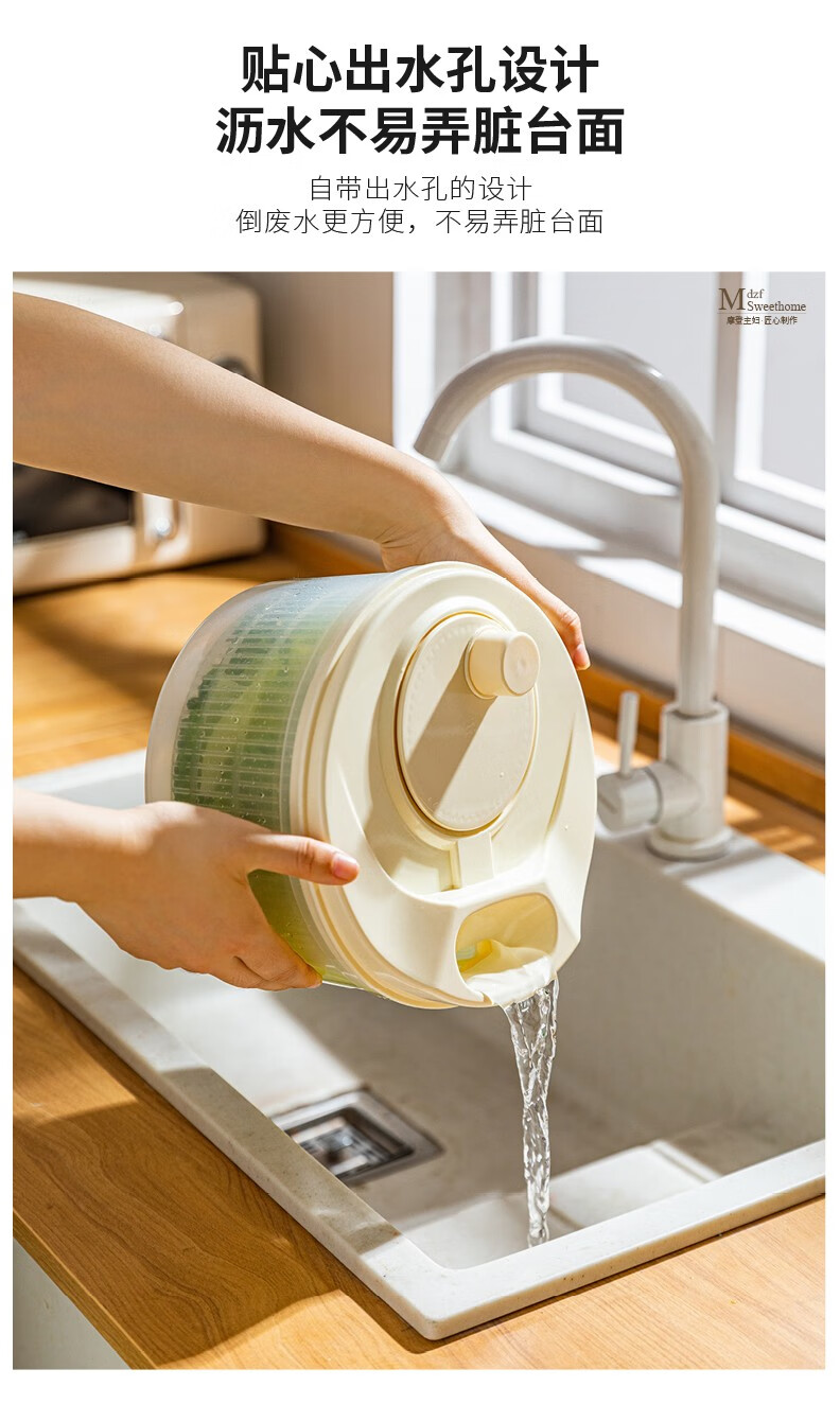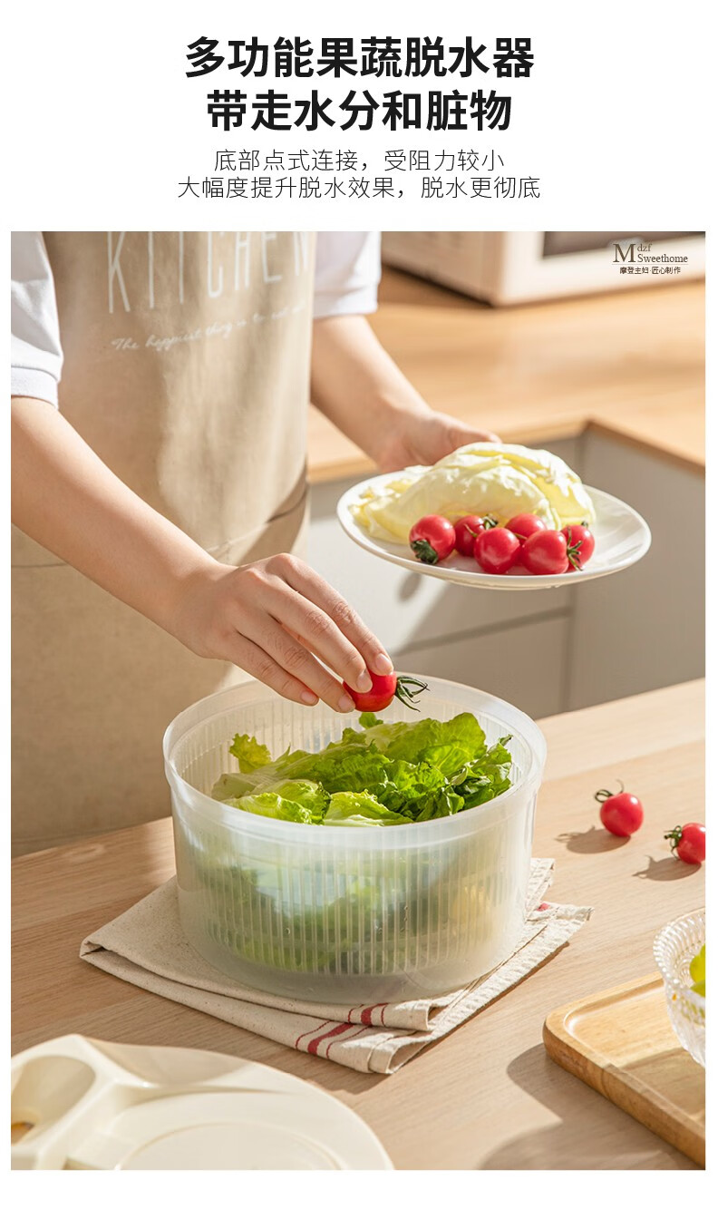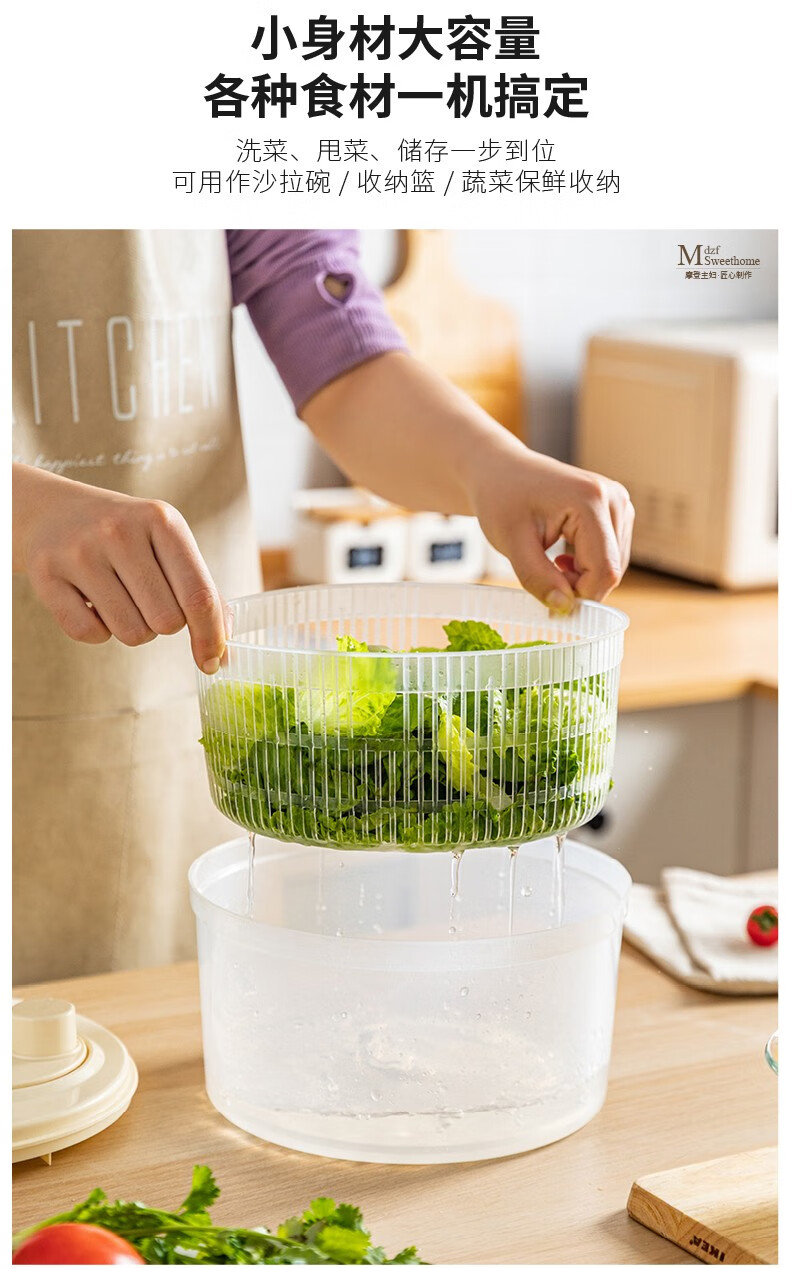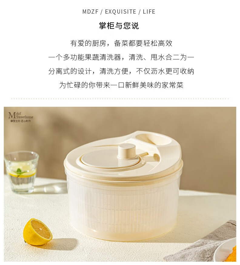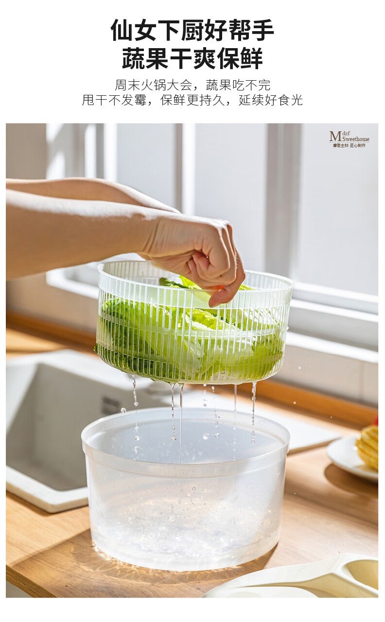 Modern housewife vegetable dehydrator household manual salad spinner vegetable basket kitchen spin dryer vegetable washing and draining artifact vegetable dehydrator - cream white