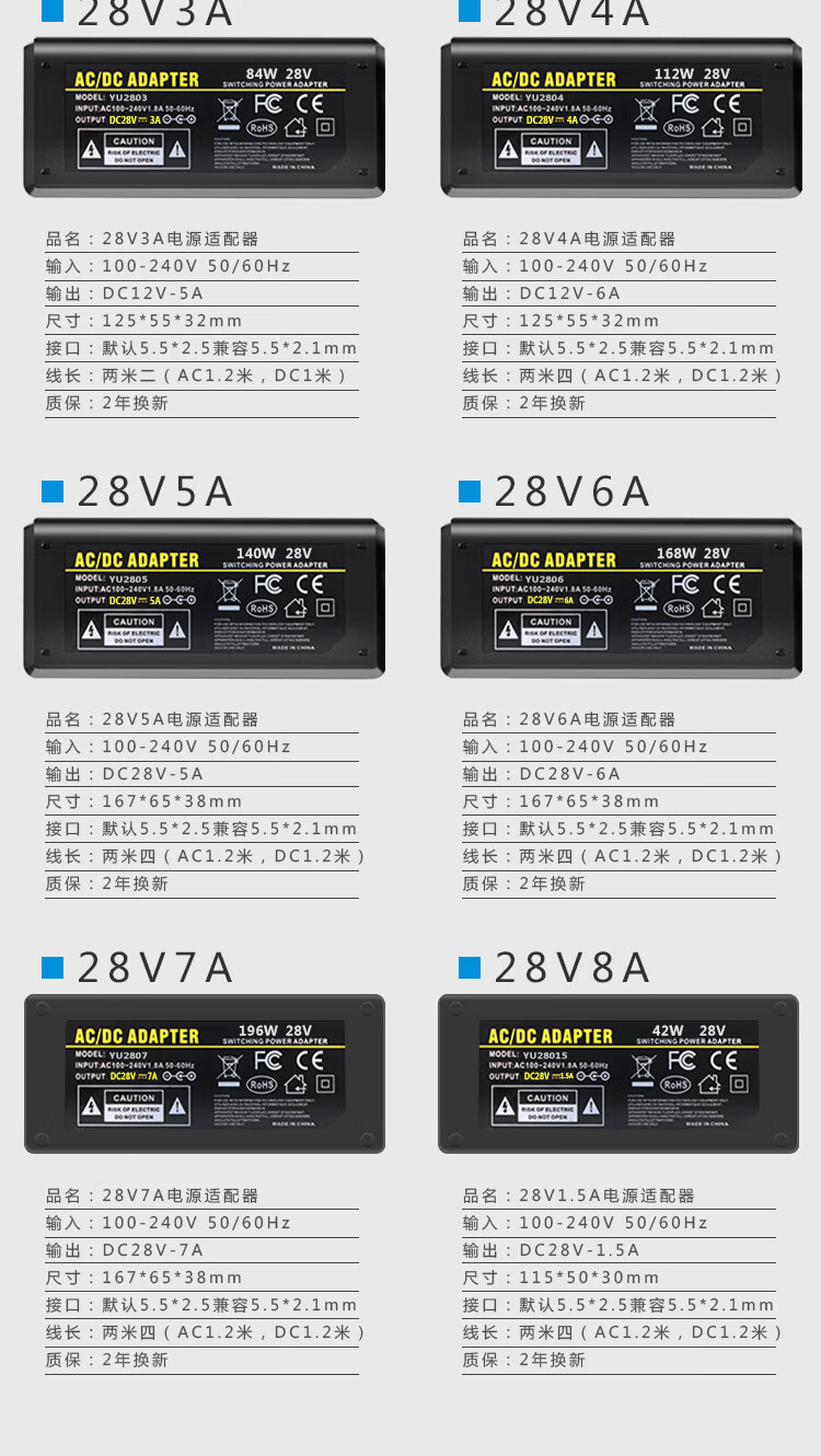 28V3A power adapter 28V5A6A7A switching power supply water pump 28V8A access control power supply 28V massage power supply 28V6A 168W