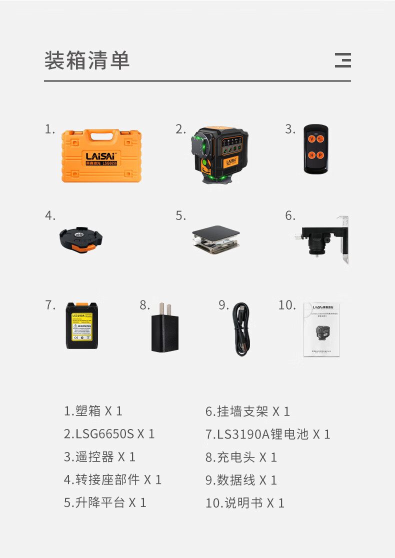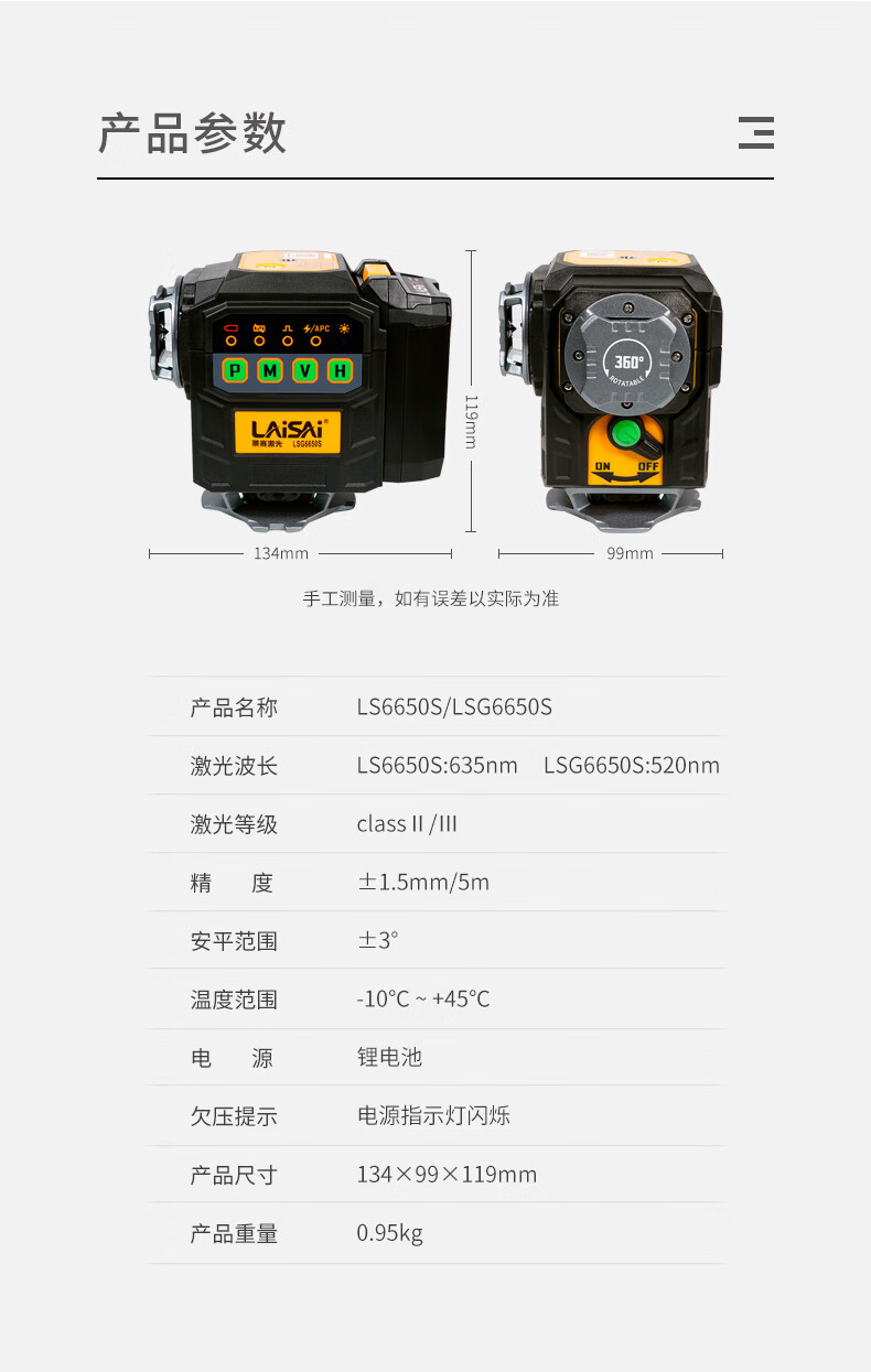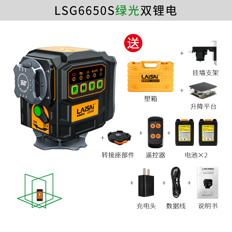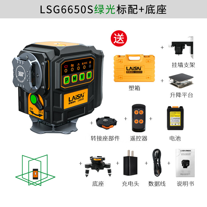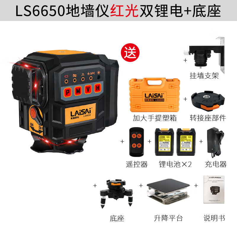 Laser laser high-brightness red and green light 12-line wall-mounted floor meter LS6650 large lithium battery long-life high-precision strong light infrared level meter LS6650 red light 12-line standard