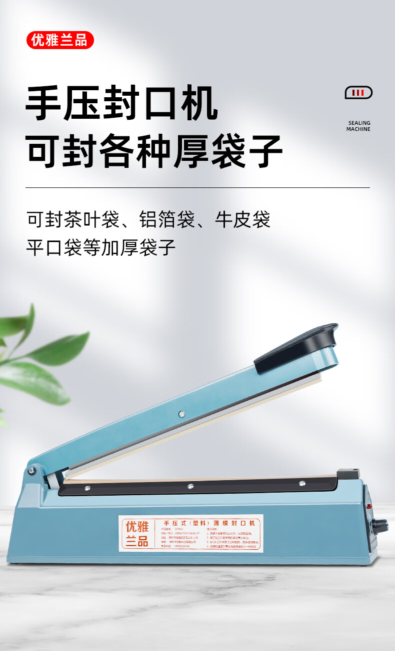 Elegant Lanpin hand pressure sealing machine small household commercial moon cake tea plastic bag sealing machine heat shrinkable film cutting film sealing plastic sealing machine hot air gun mobile phone box book sealing machine sealing machine丨Sealing length 30cm wide 3mm