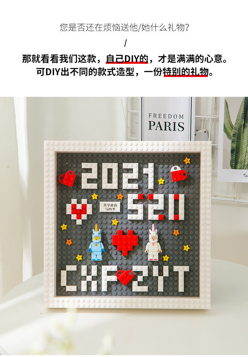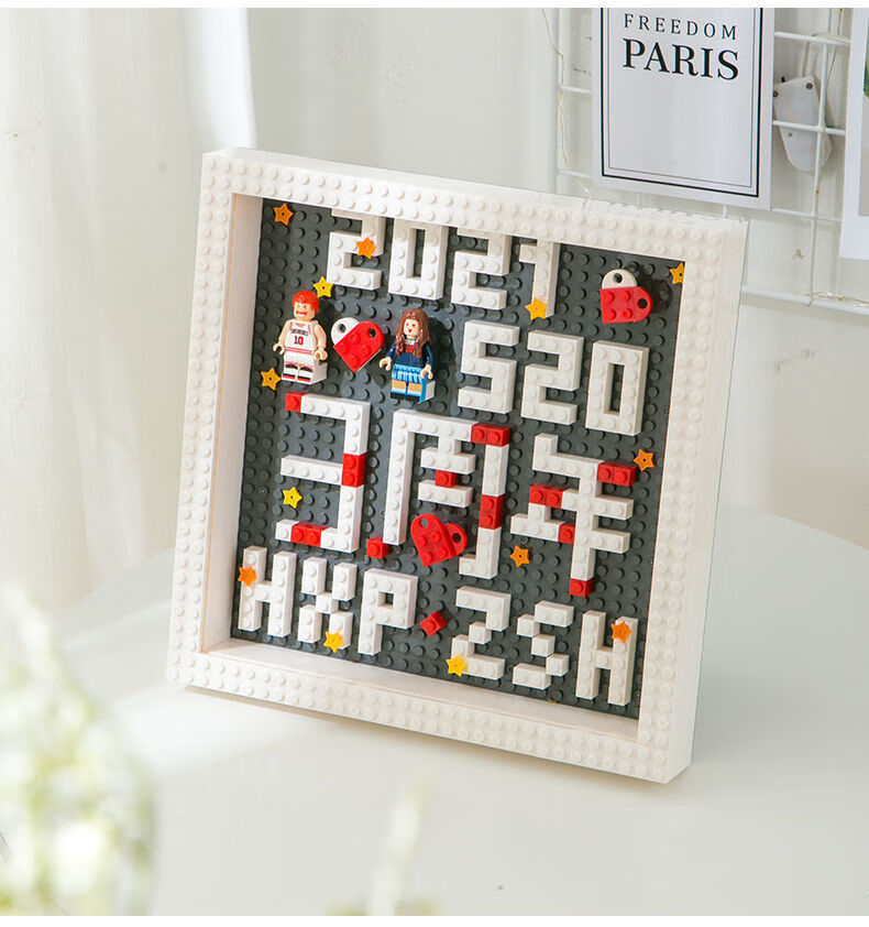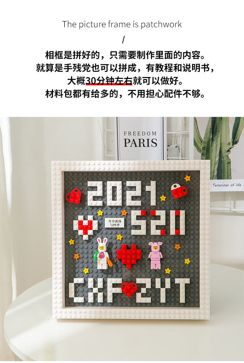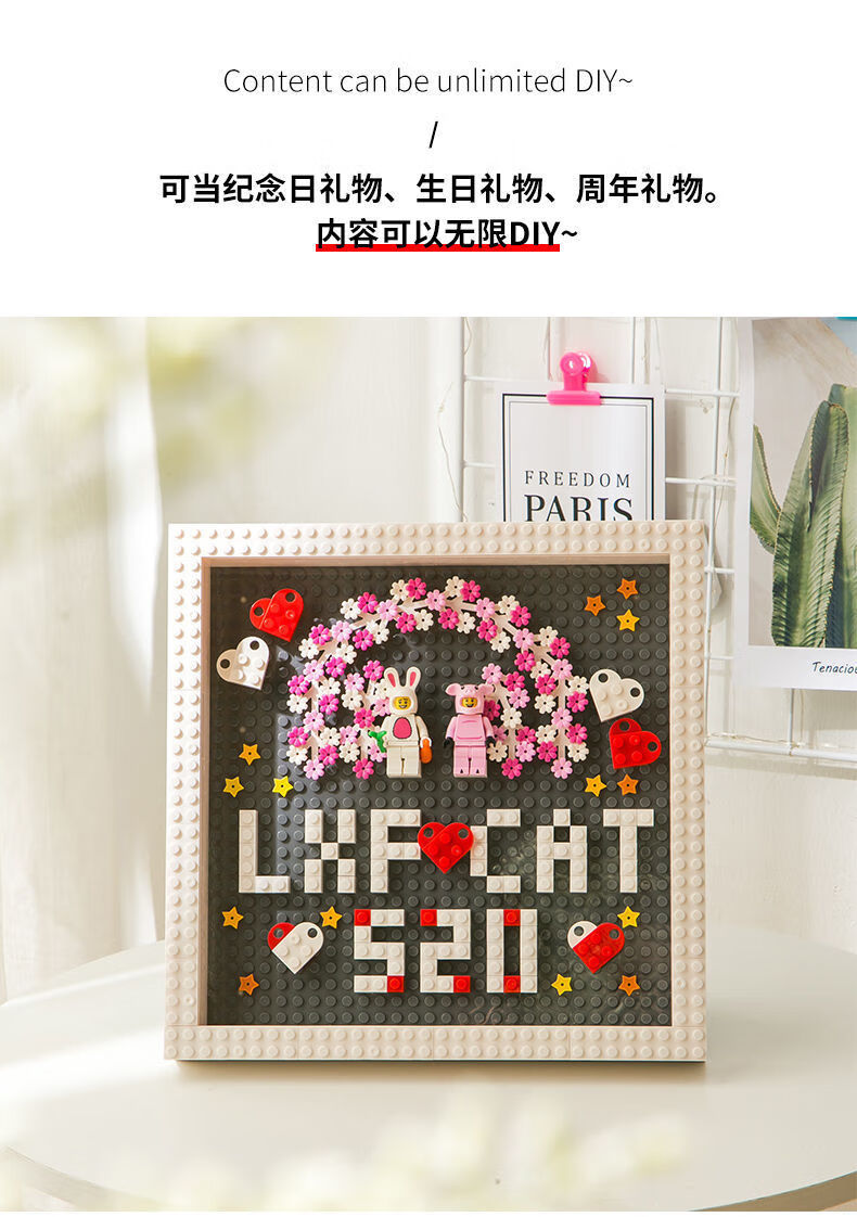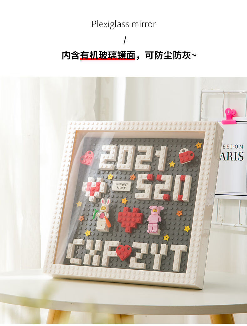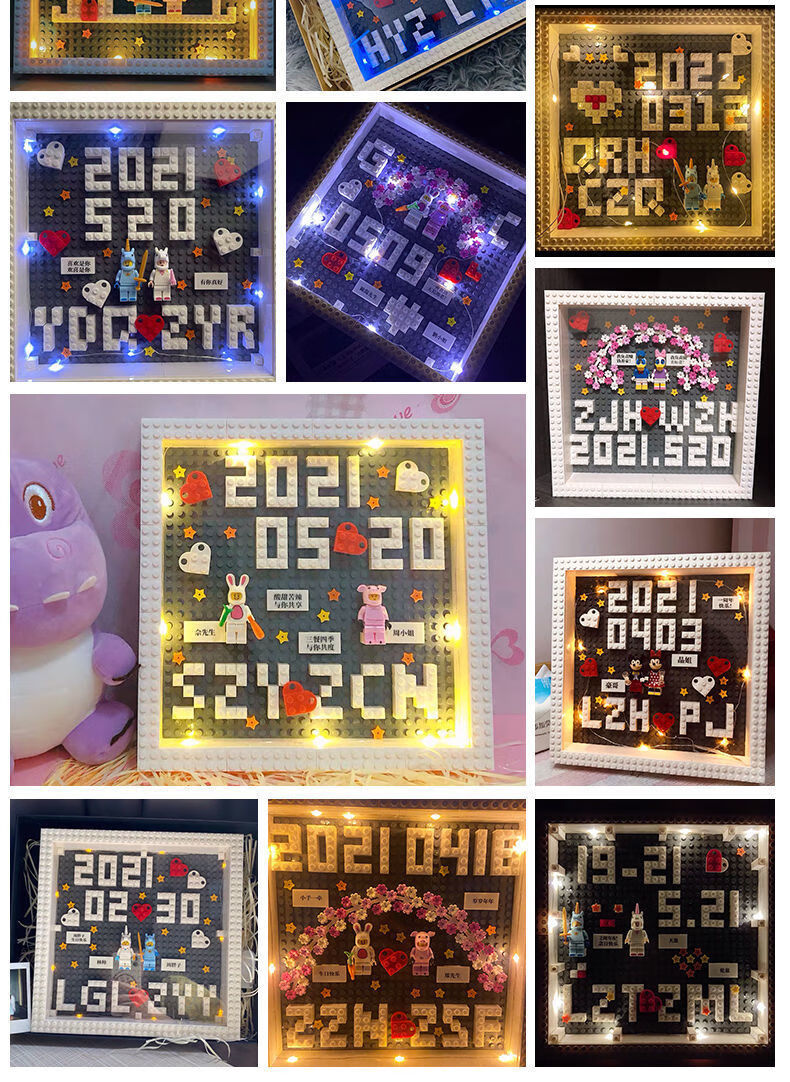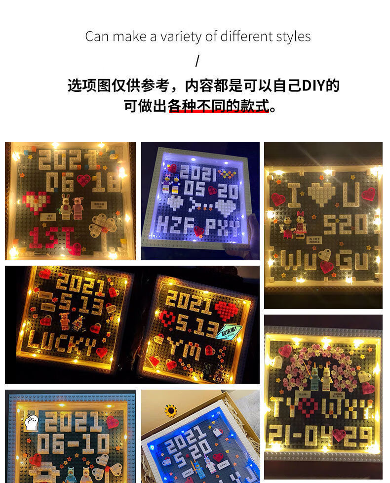 Yunya diy handmade couple gift building block photo frame wedding anniversary lover gift for girlfriend lover wife anniversary model photo frame + lamp + dustproof board