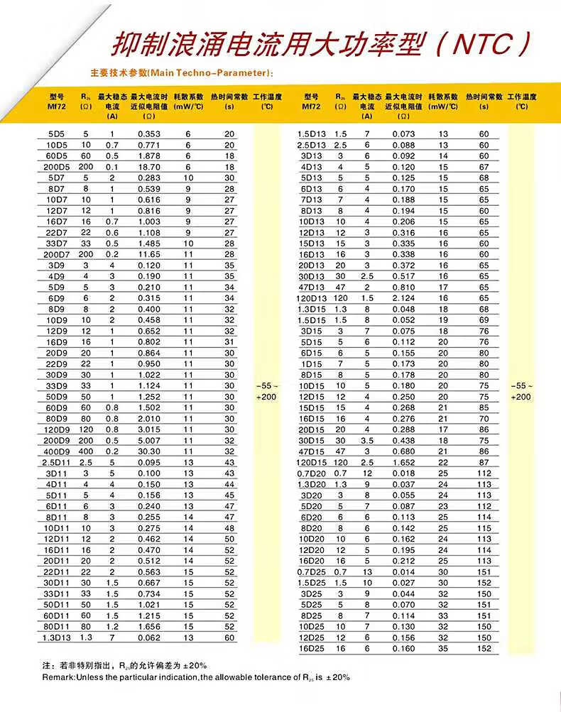 Thermistor high current power type NTC MF72 3D/5D/10D-20 surge current resistor