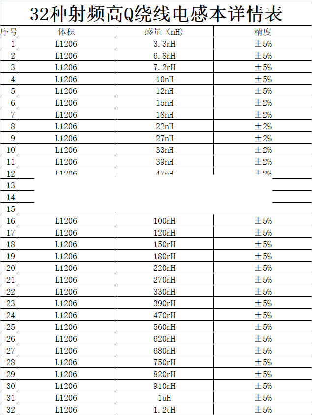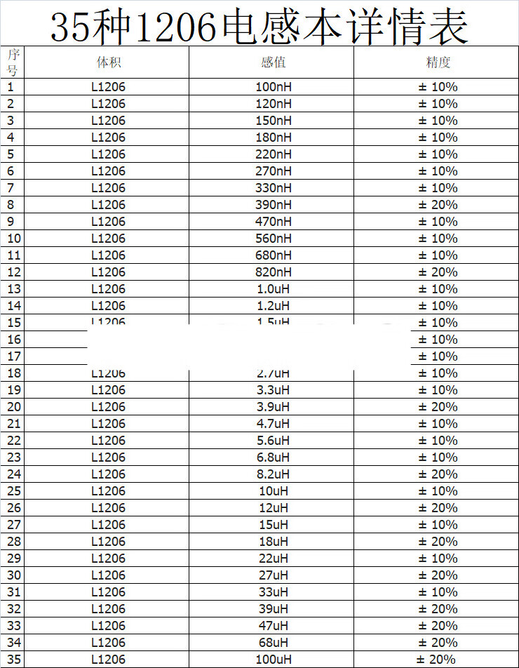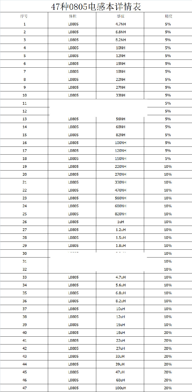 0201 0402 0603 0805 1206 1210 SMD high frequency wire wound inductor package sample component booklet 0402 SMD filter magnetic beads 21 kinds of 25 each