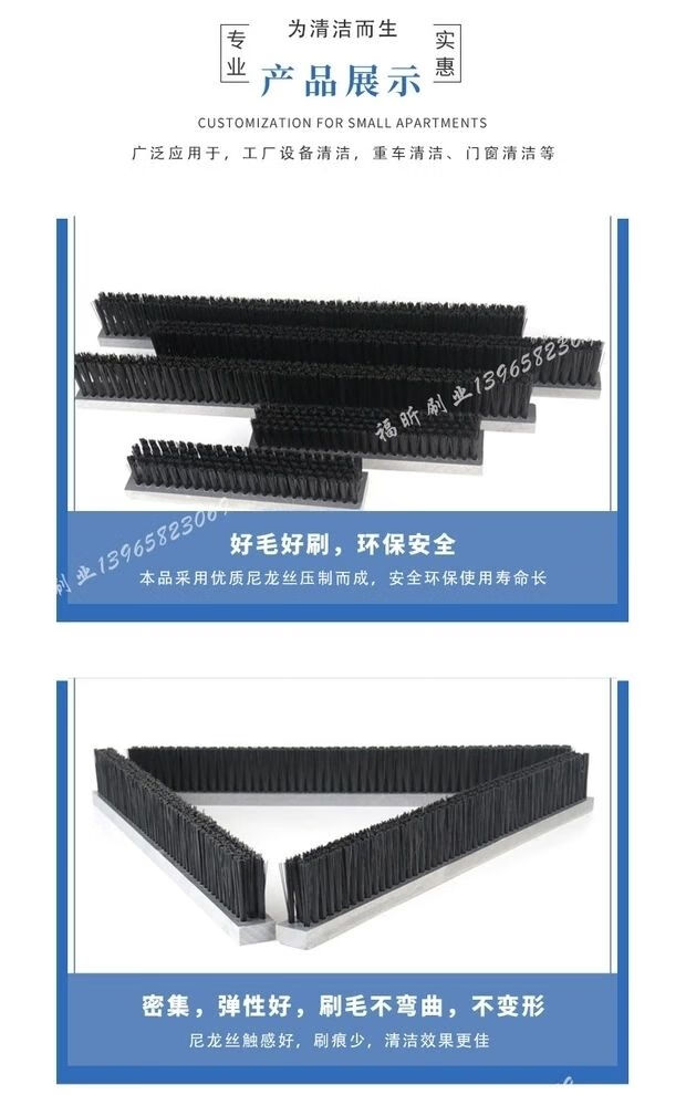 PVC industrial brush strip dust-proof nylon plastic brush industrial long and short hair soft and hard bristle strip brush row brush 100*30*15*30 three rows of hair